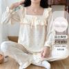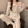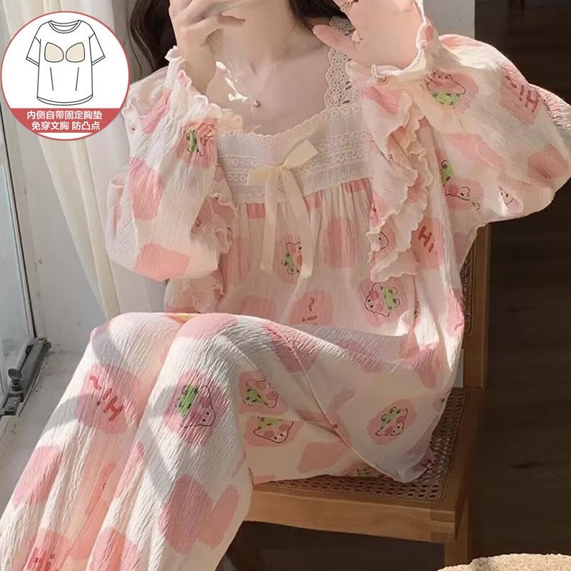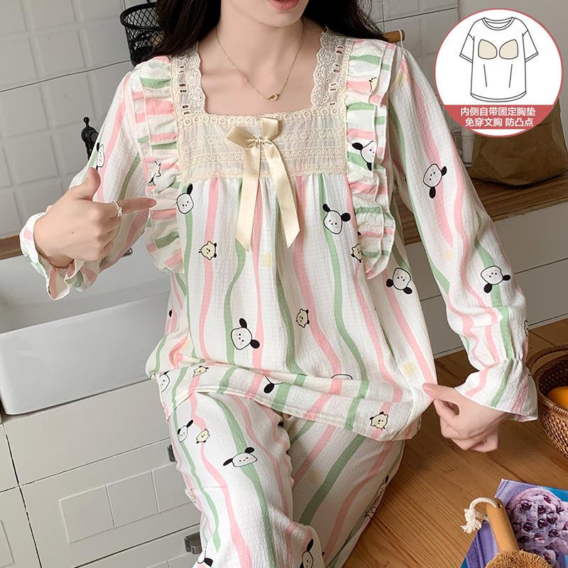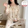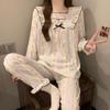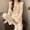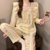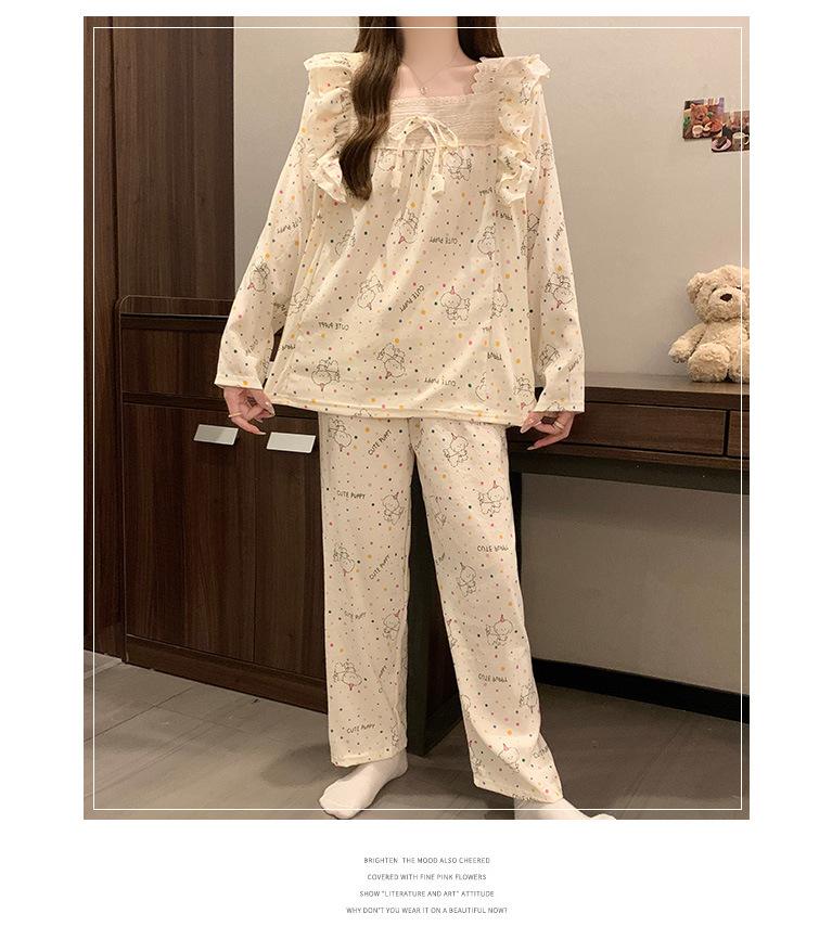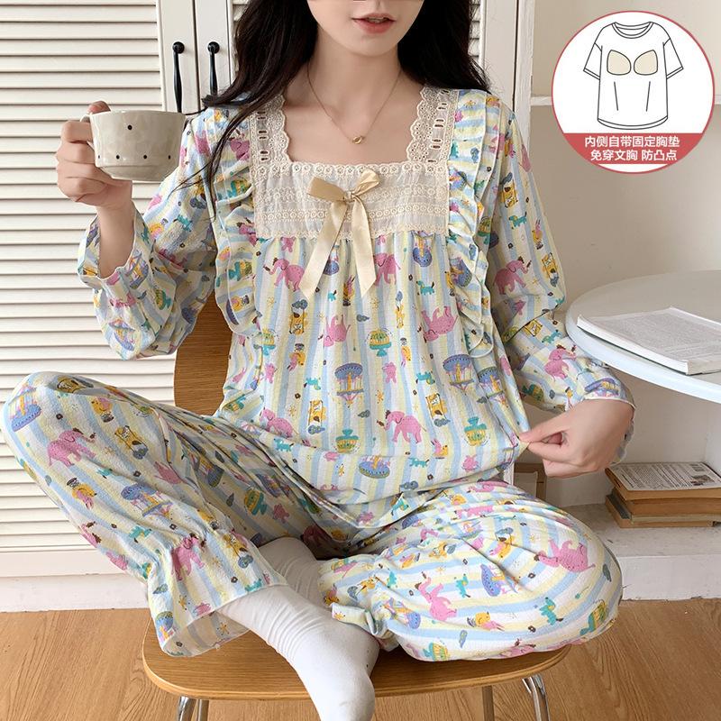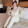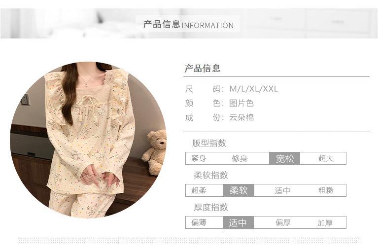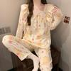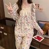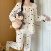 2024 Otoño Nuevo Pijama de Mujer Algodón Tejido Nube Manga Larga Estilo Princesa Dulce Traje Ropa de Casa Pijama Cuello Cuadrado