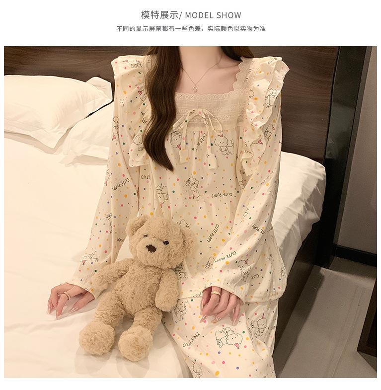 8132-1# Pijama nuevo de otoño para mujer algodón tejido nube manga larga estilo princesa dulce traje de ropa para el hogar