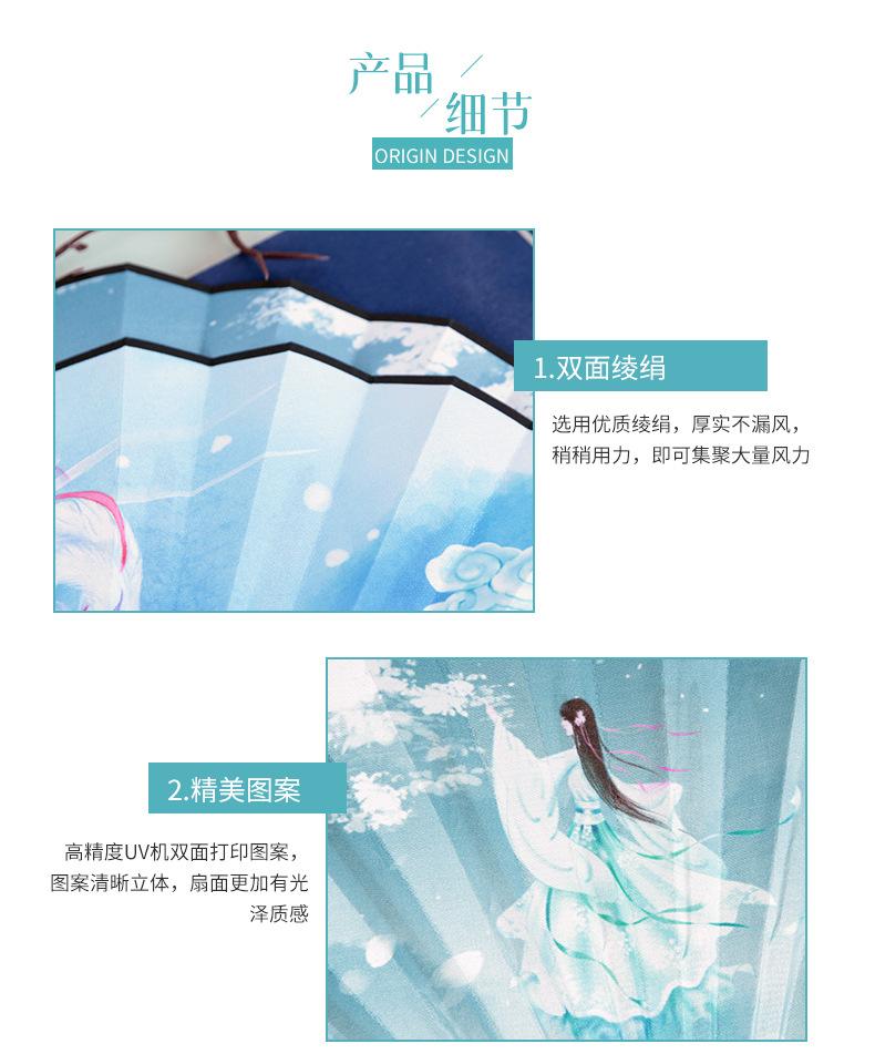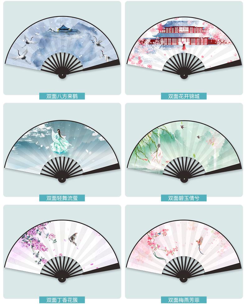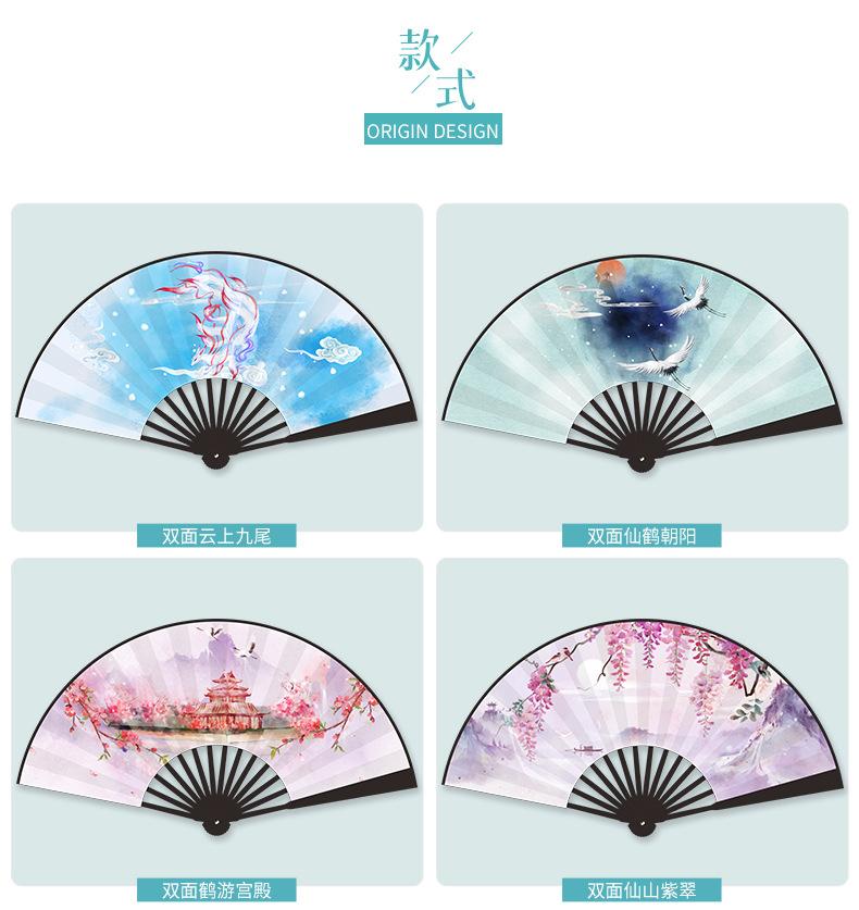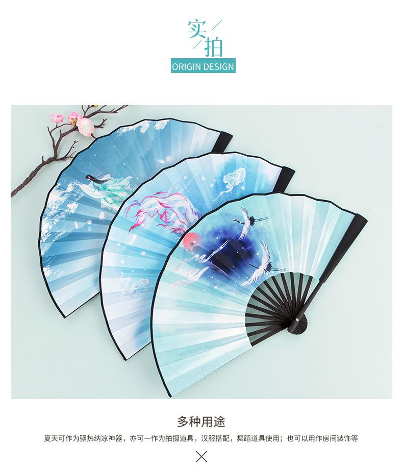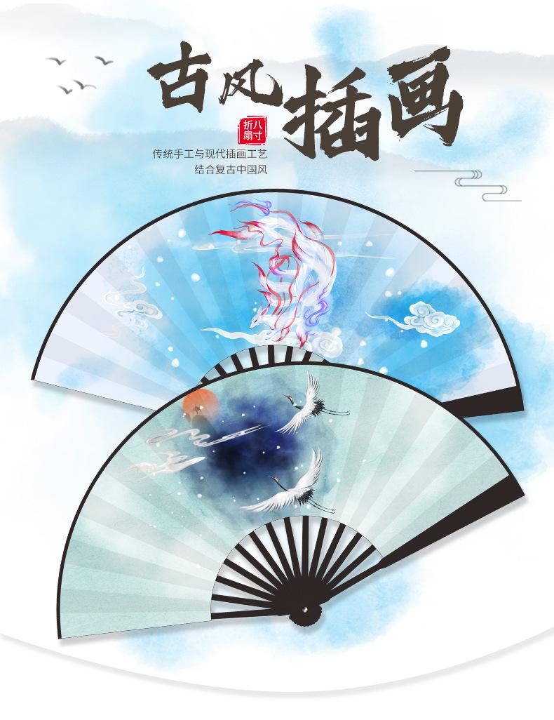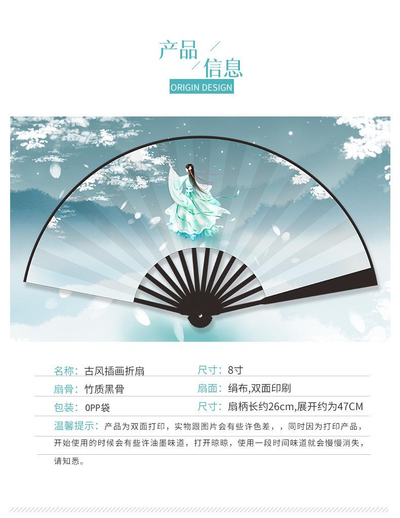 Abanico Plegable de Tela de Seda Ilustración Estilo Antiguo para Hombres y Mujeres Estudiantes Estilo Hada Estilo Chino Celebridad de Internet Dominante Accesorios de Baile Hanfu Abanico de Utilería