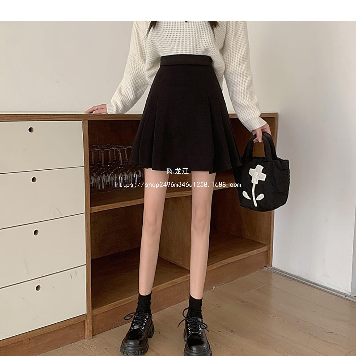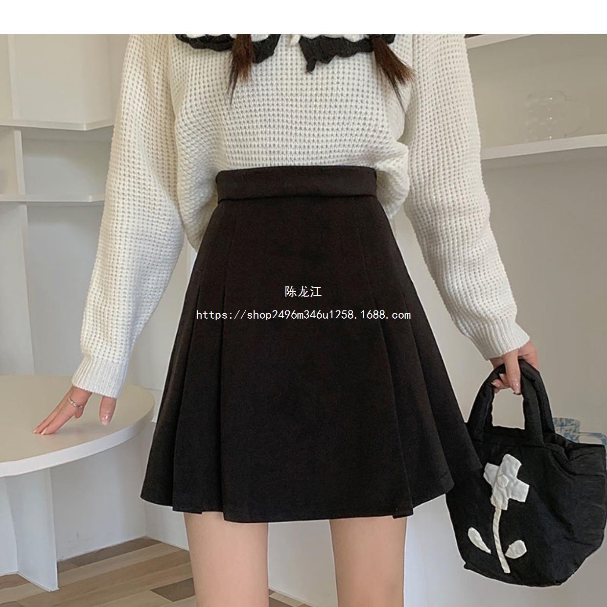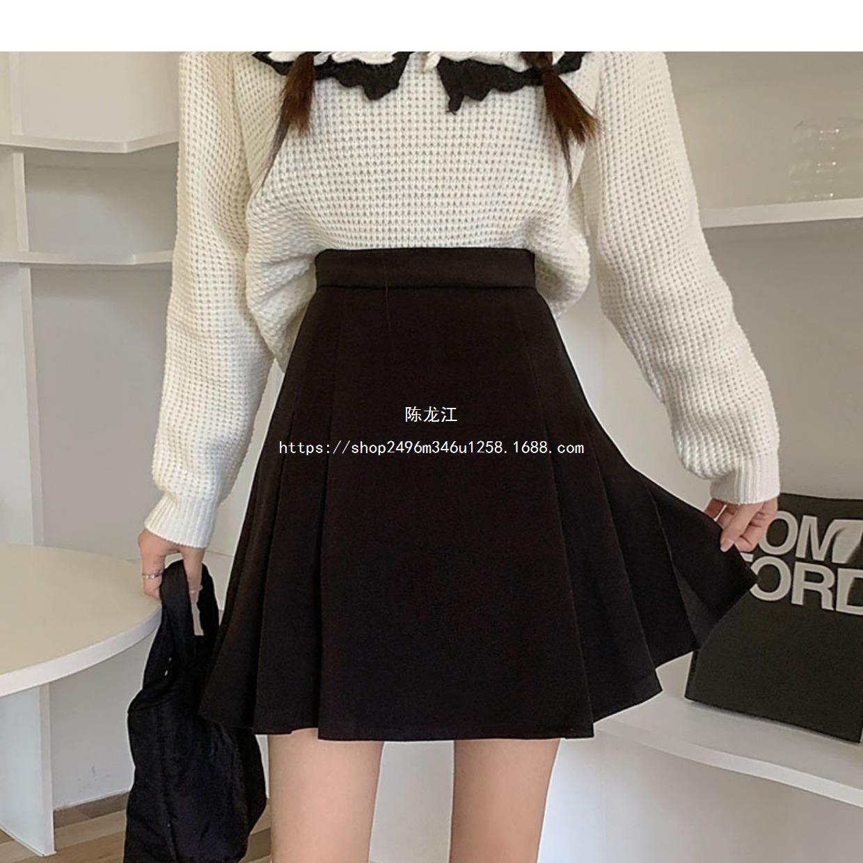 Suéter Adelgazante Falda Plisada Falda Otoño Negro Pequeño A con Talla Grande para Mujer Falda de Cintura Alta Falda Corta