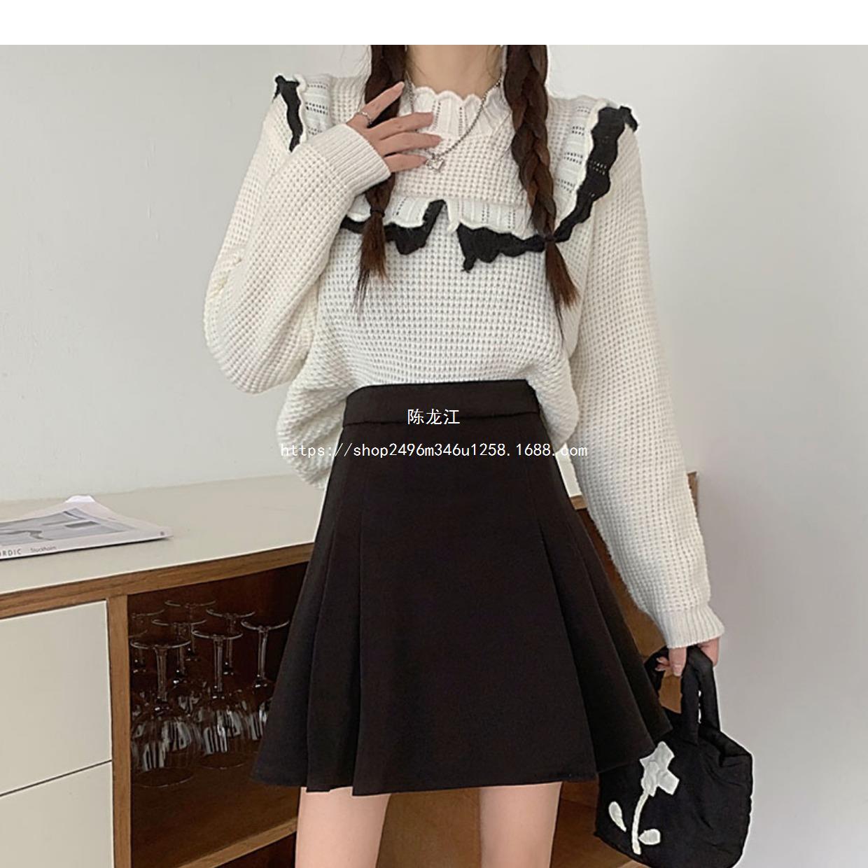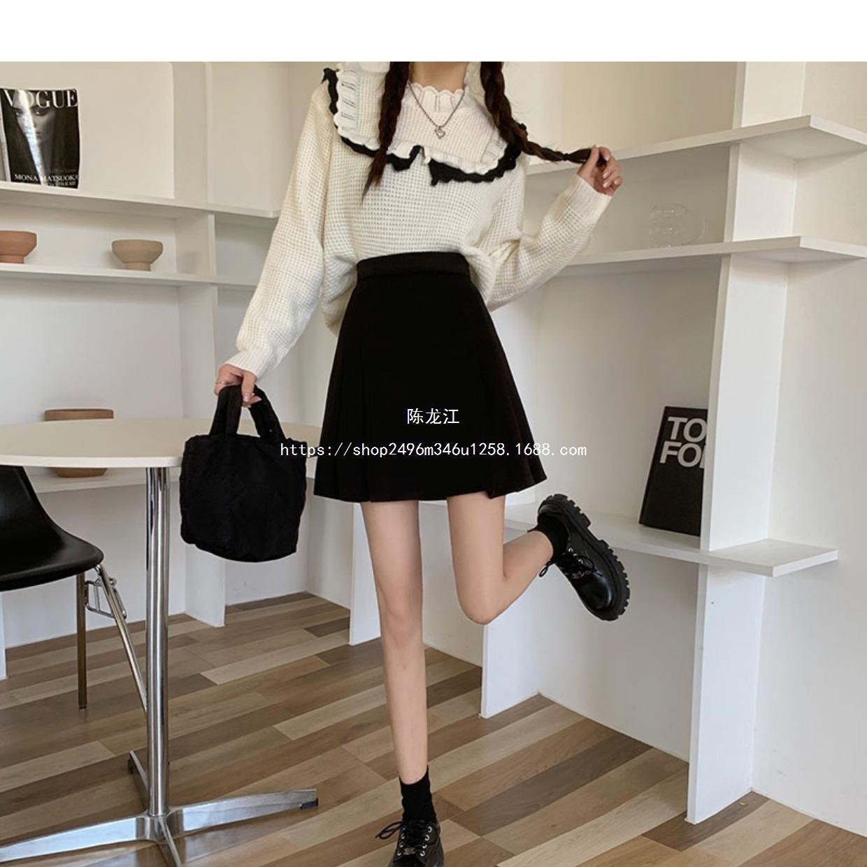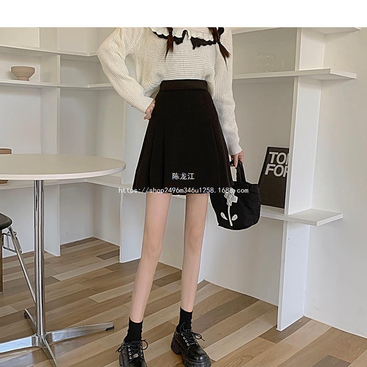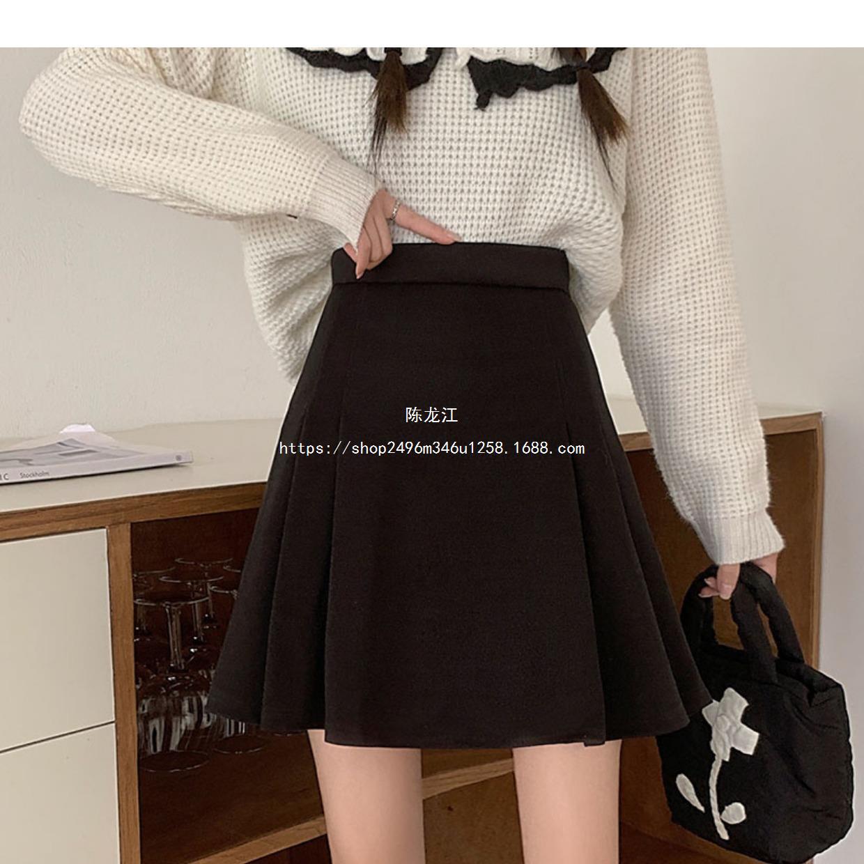 Suéter Adelgazante Falda Plisada Falda Otoño Negro Pequeño A con Talla Grande para Mujer Falda de Cintura Alta Falda Corta