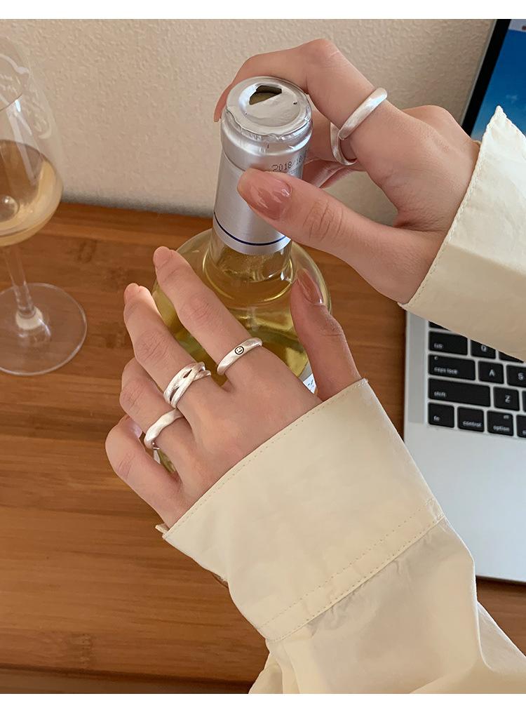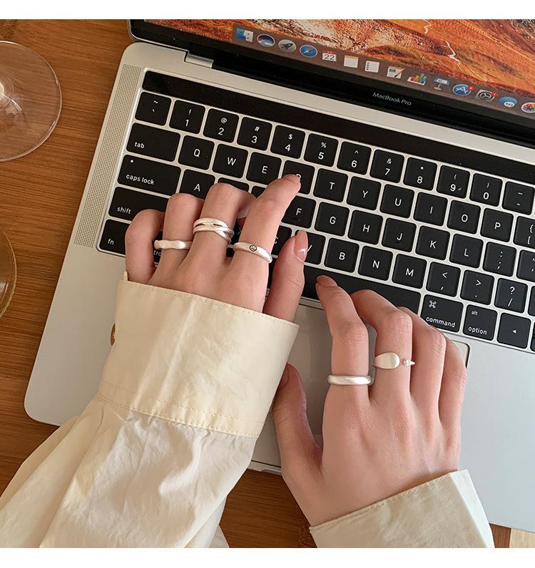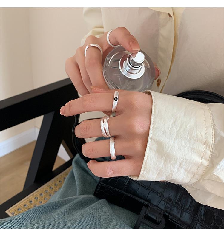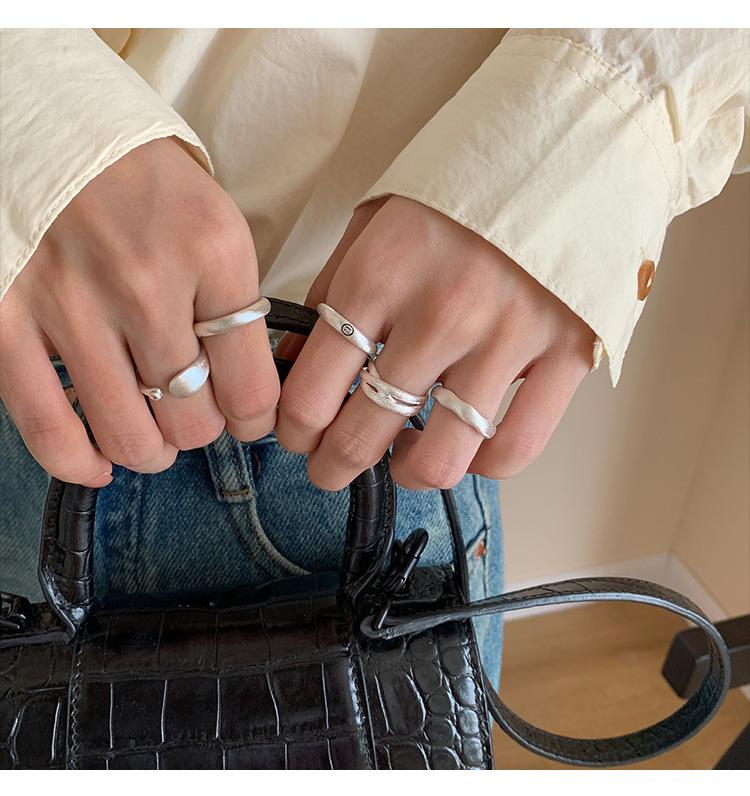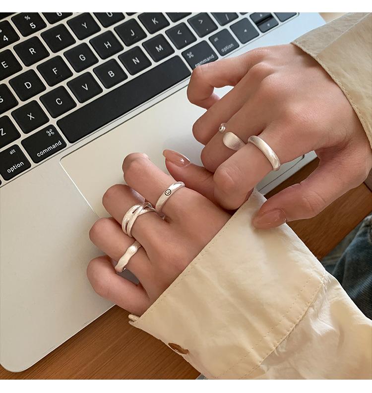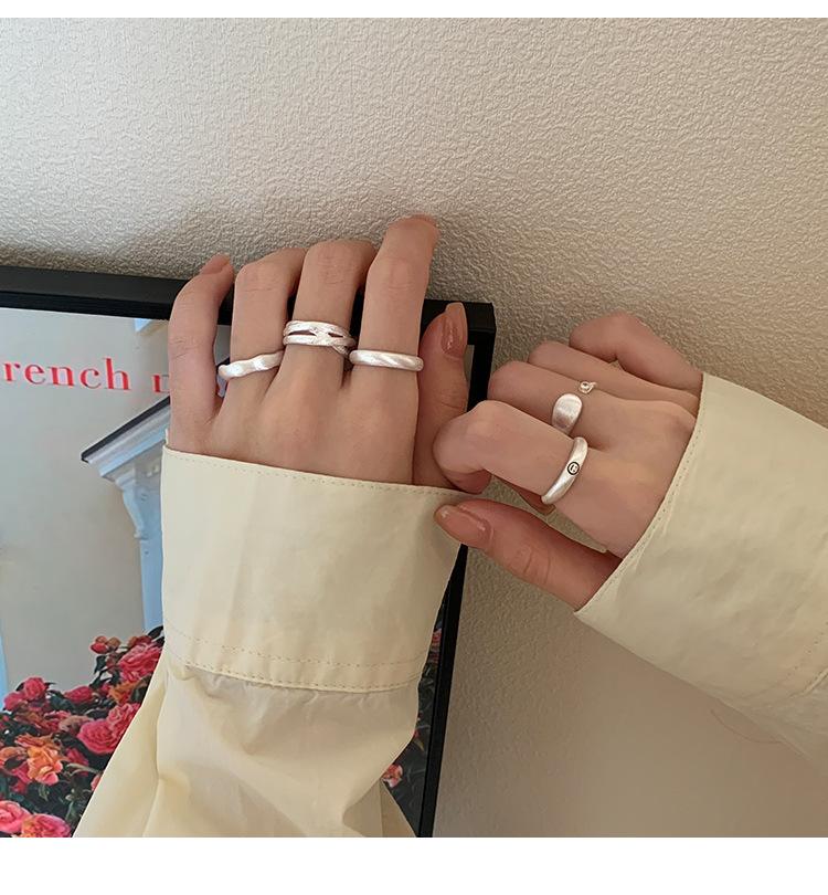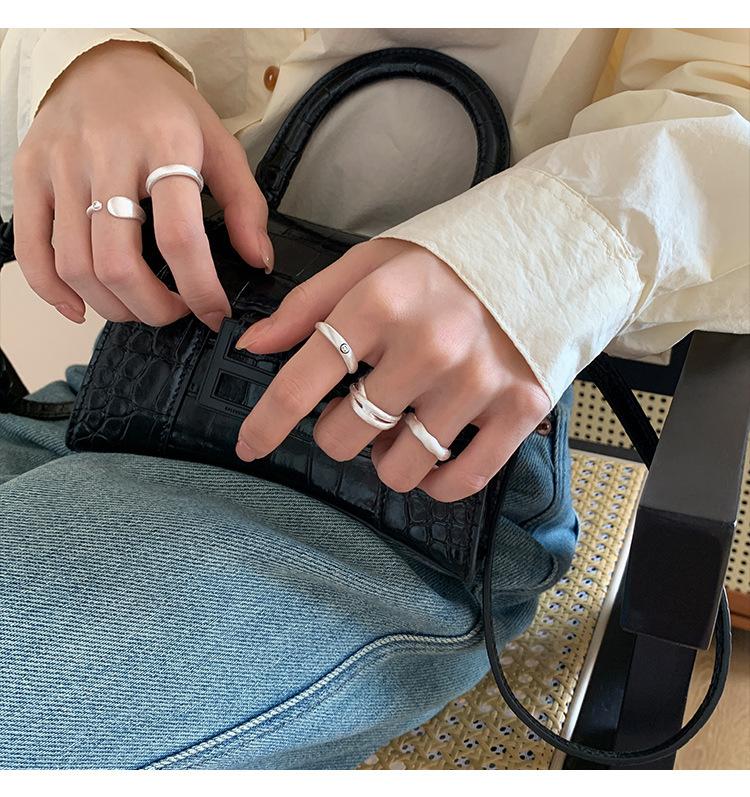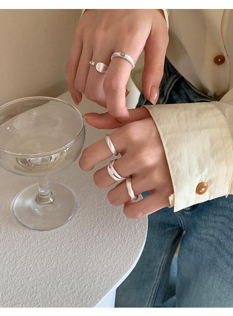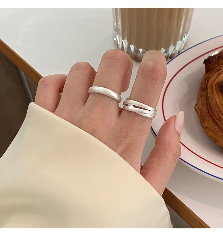 Anillo mate de alta calidad para mujer, moda simple, temperamento versátil, personalidad, anillo abierto de plata S925, anillo de dedo ins para comida