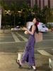 Vestido floral francés con tirantes morados para niña, verano 2024, nuevo, de alta gama, con cintura ajustada.