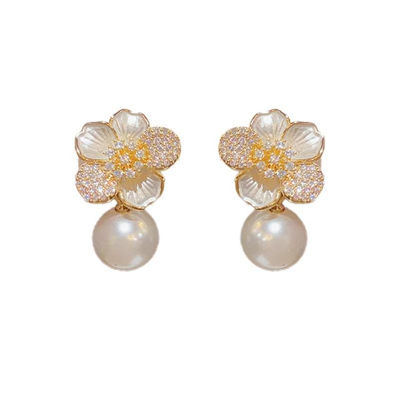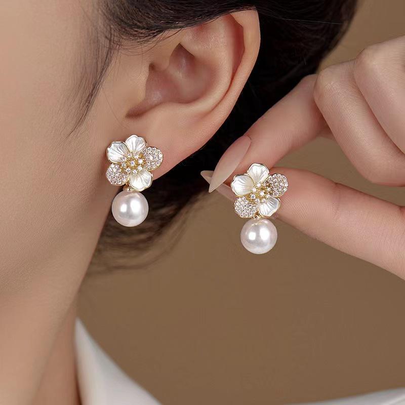 Pendientes de perlas de microflor con diseño de nicho alto, elegantes y exquisitos, de lujo, de estilo francés ligero y único.