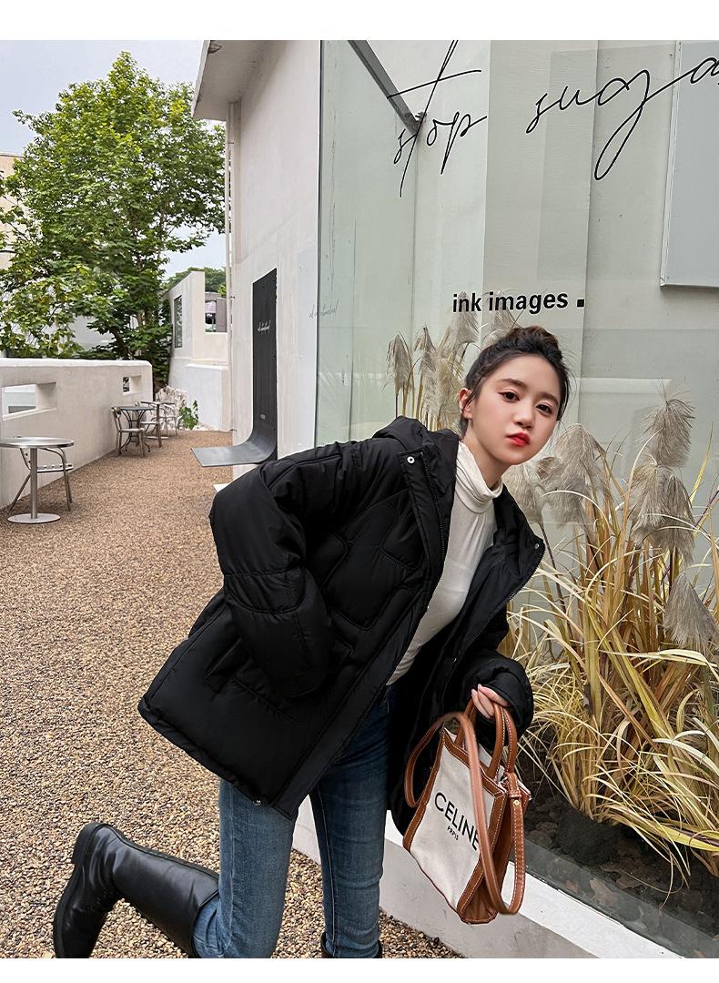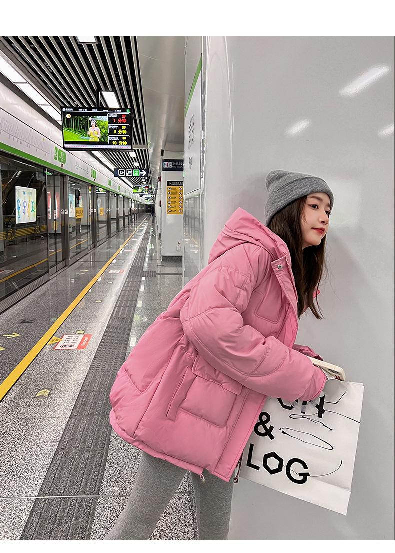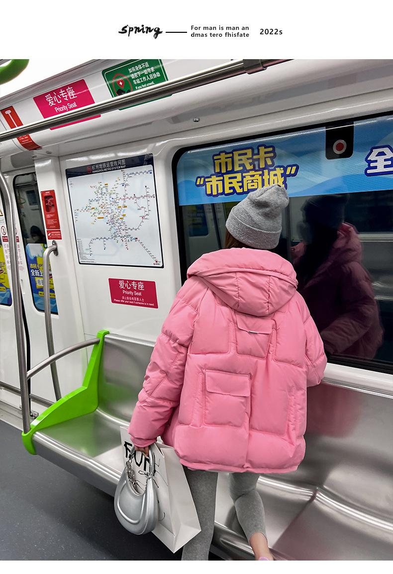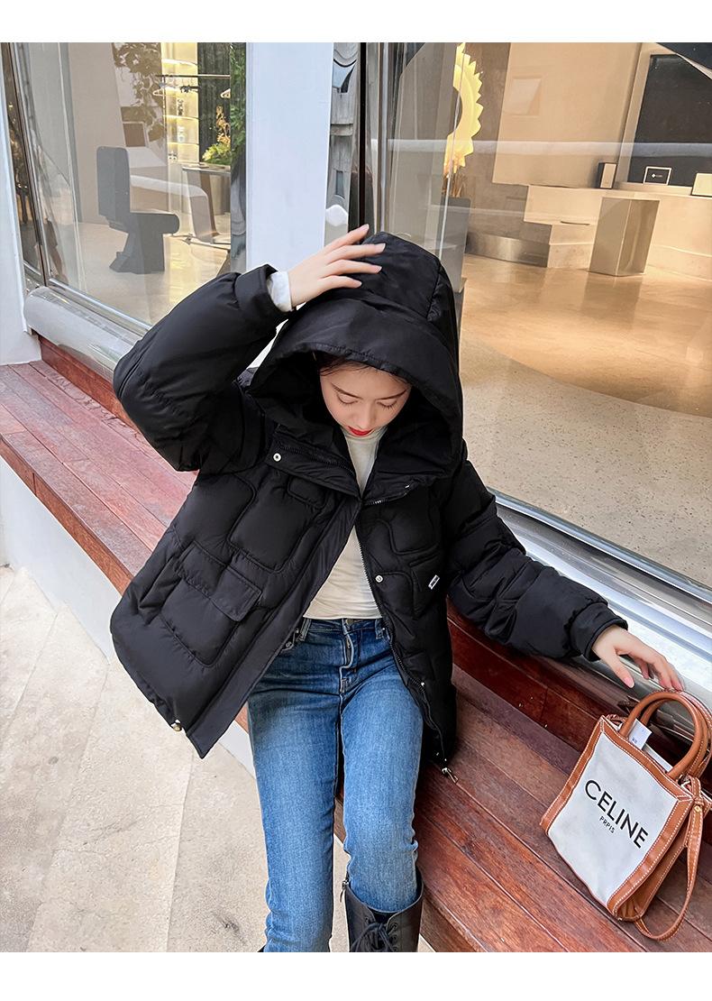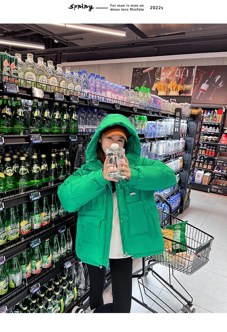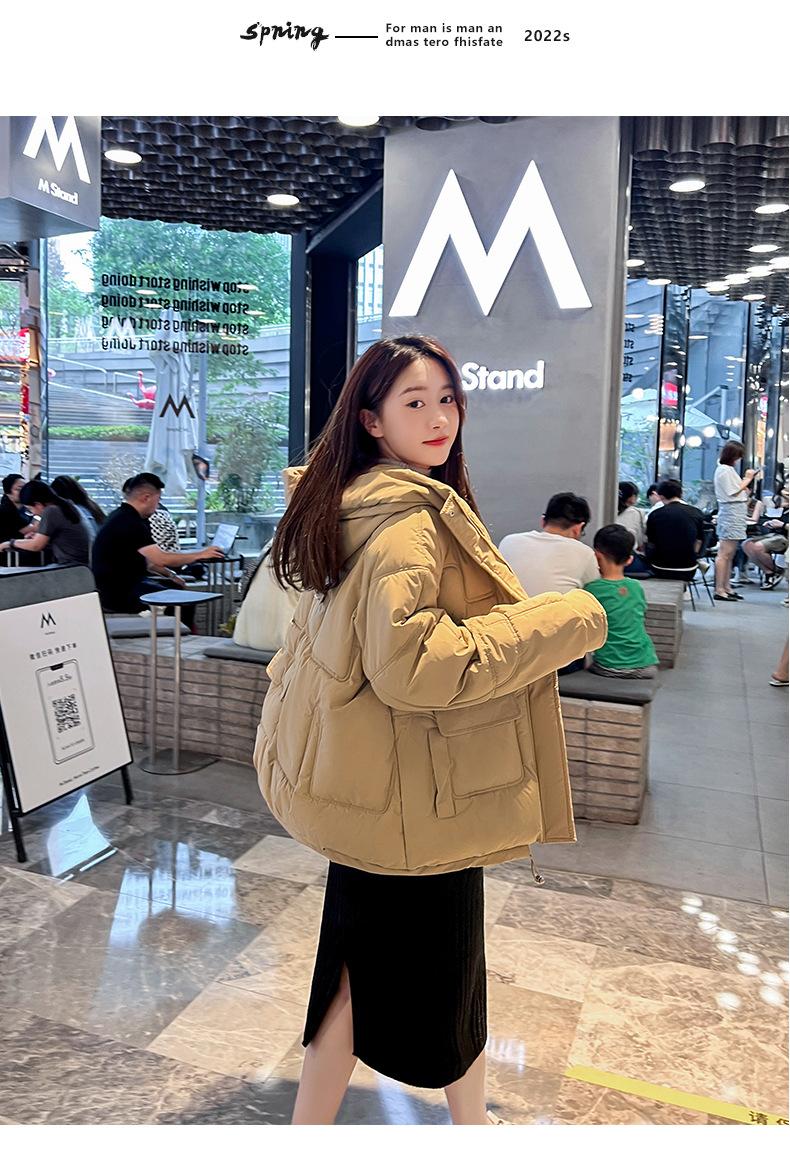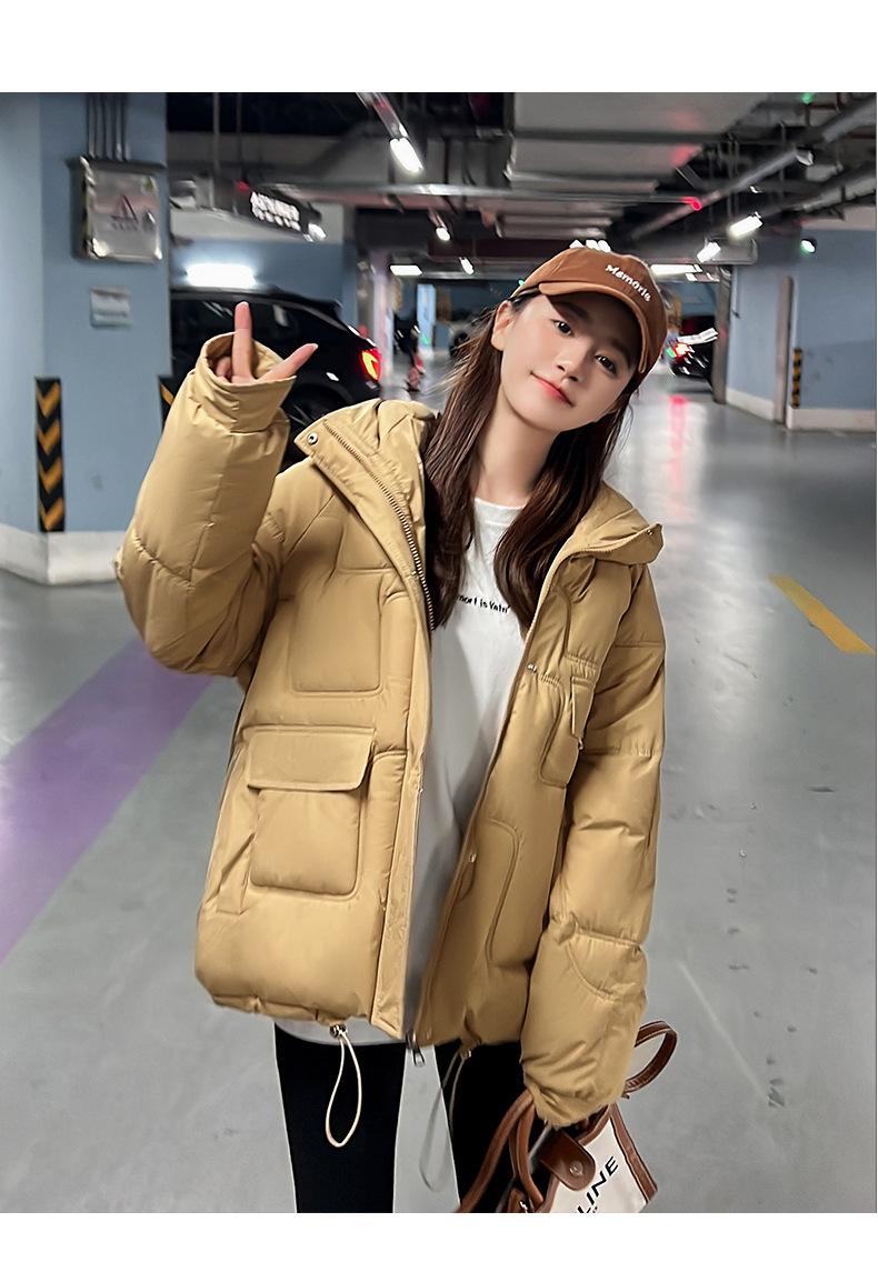 2024 Invierno Nuevo Chaqueta de Algodón Multibolsillos Transfronteriza para Mujer, Abrigo de Algodón Holgado con Capucha, Chaqueta Corta de Invierno