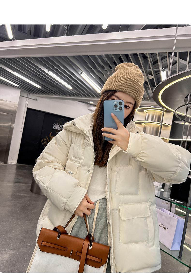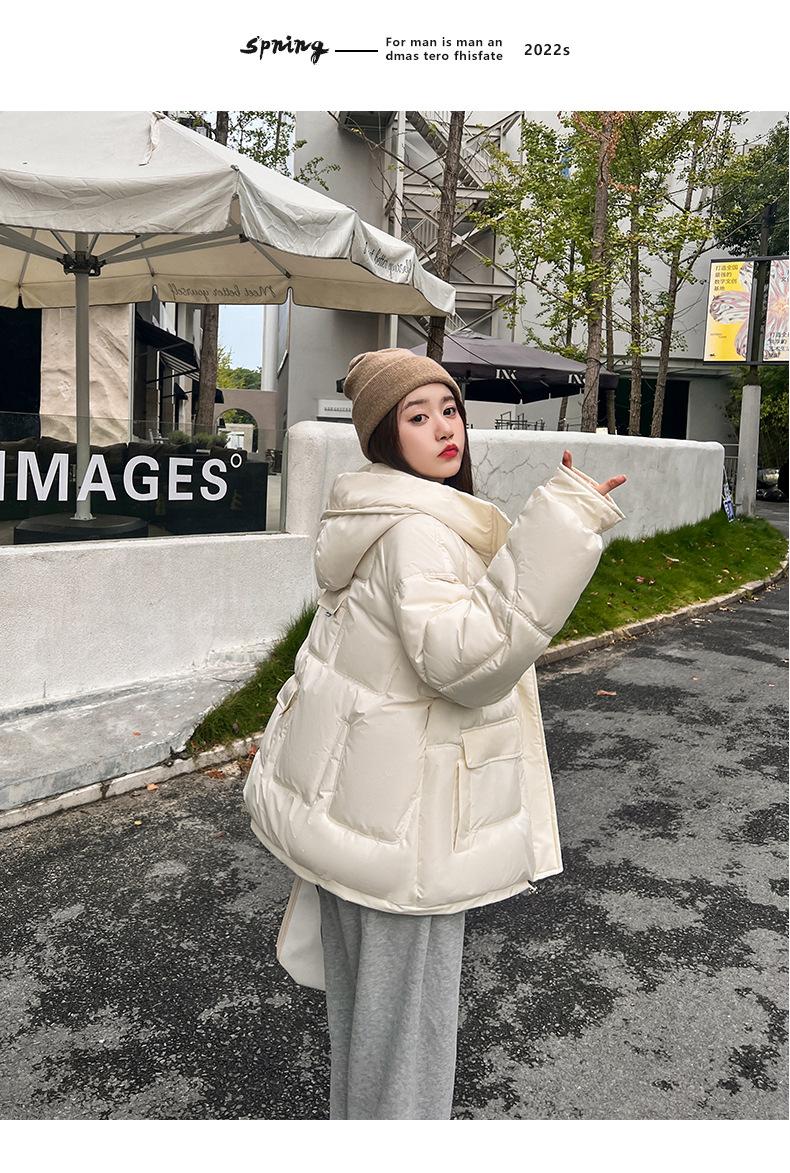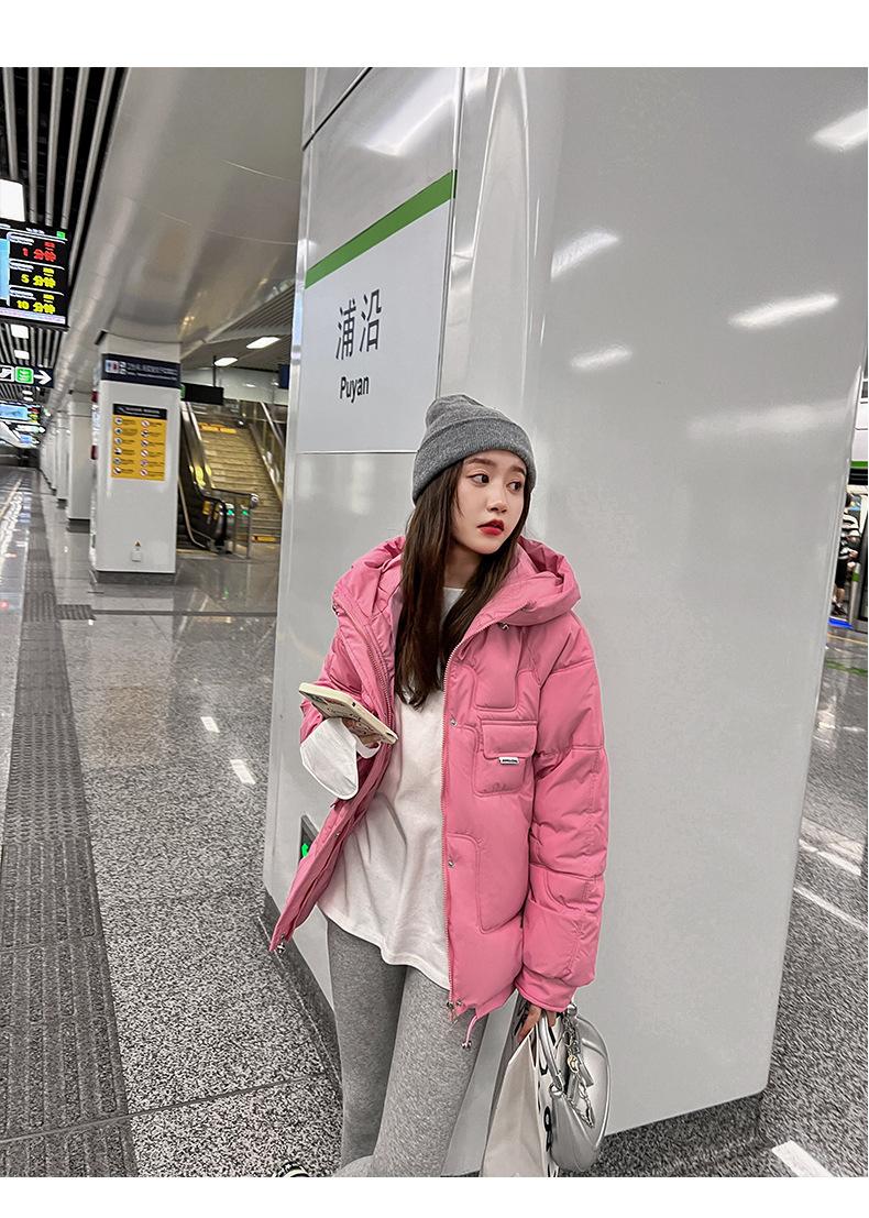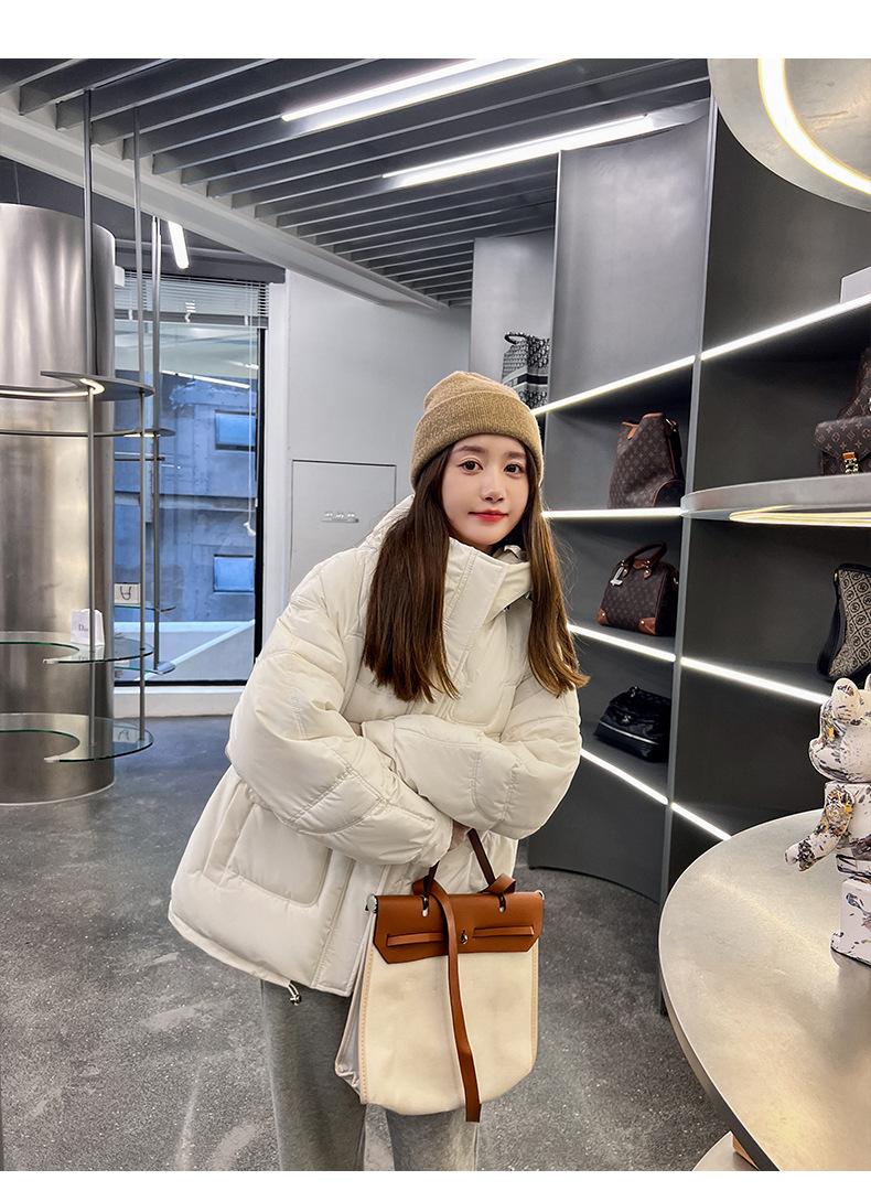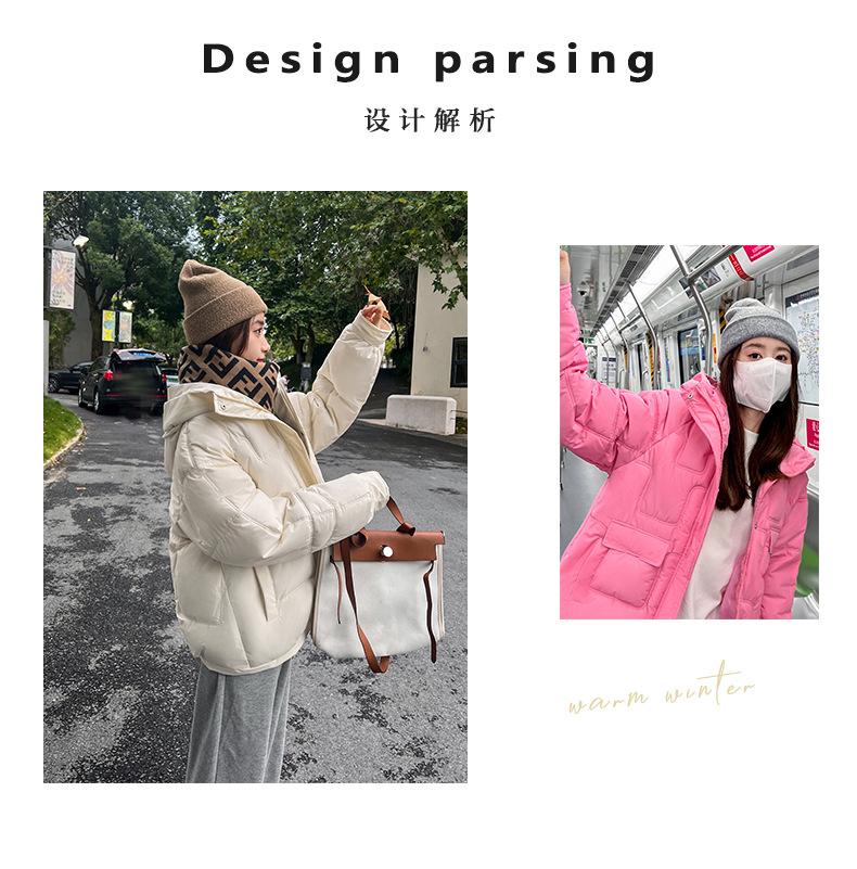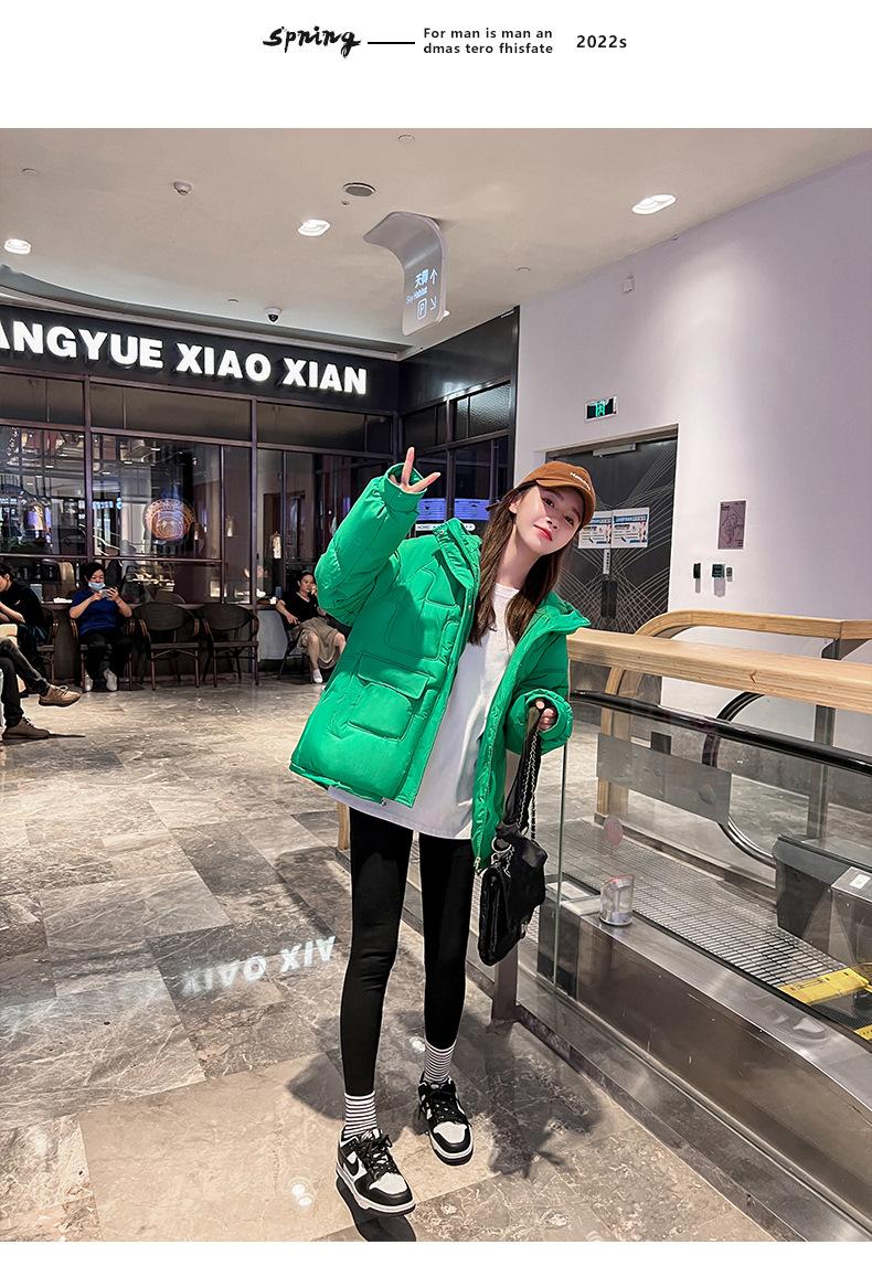 2024 Invierno Nuevo Chaqueta de Algodón Multibolsillos Transfronteriza para Mujer, Abrigo de Algodón Holgado con Capucha, Chaqueta Corta de Invierno