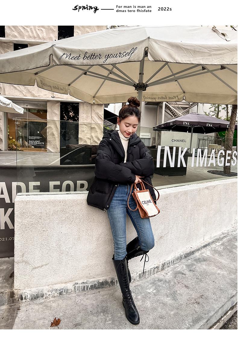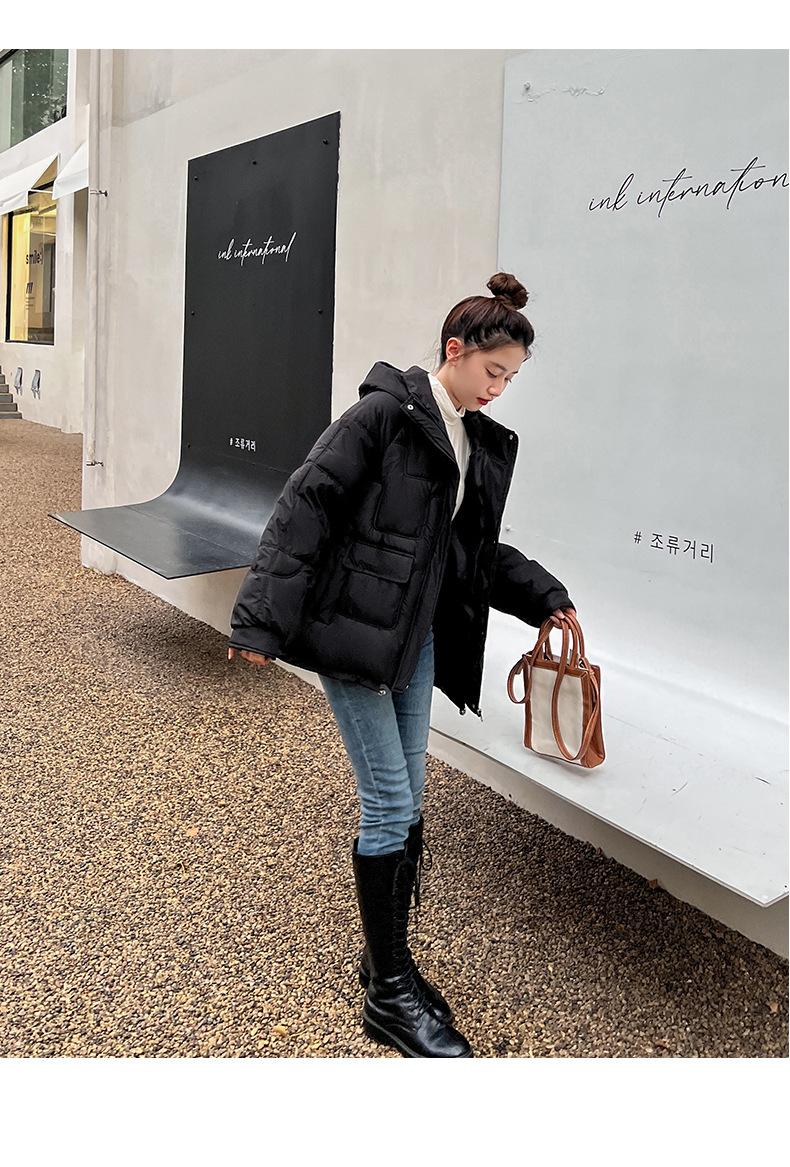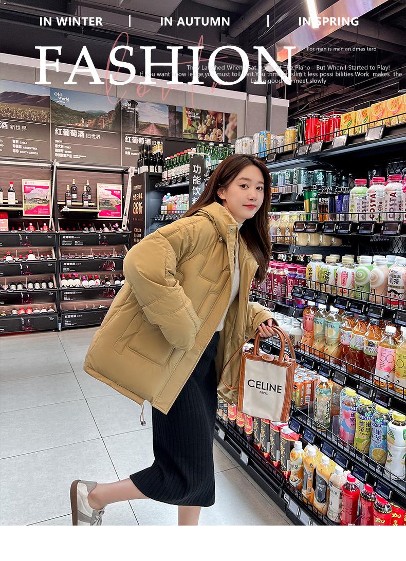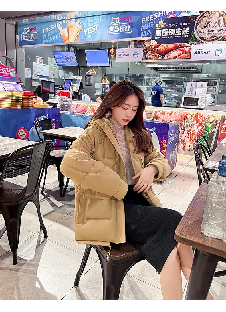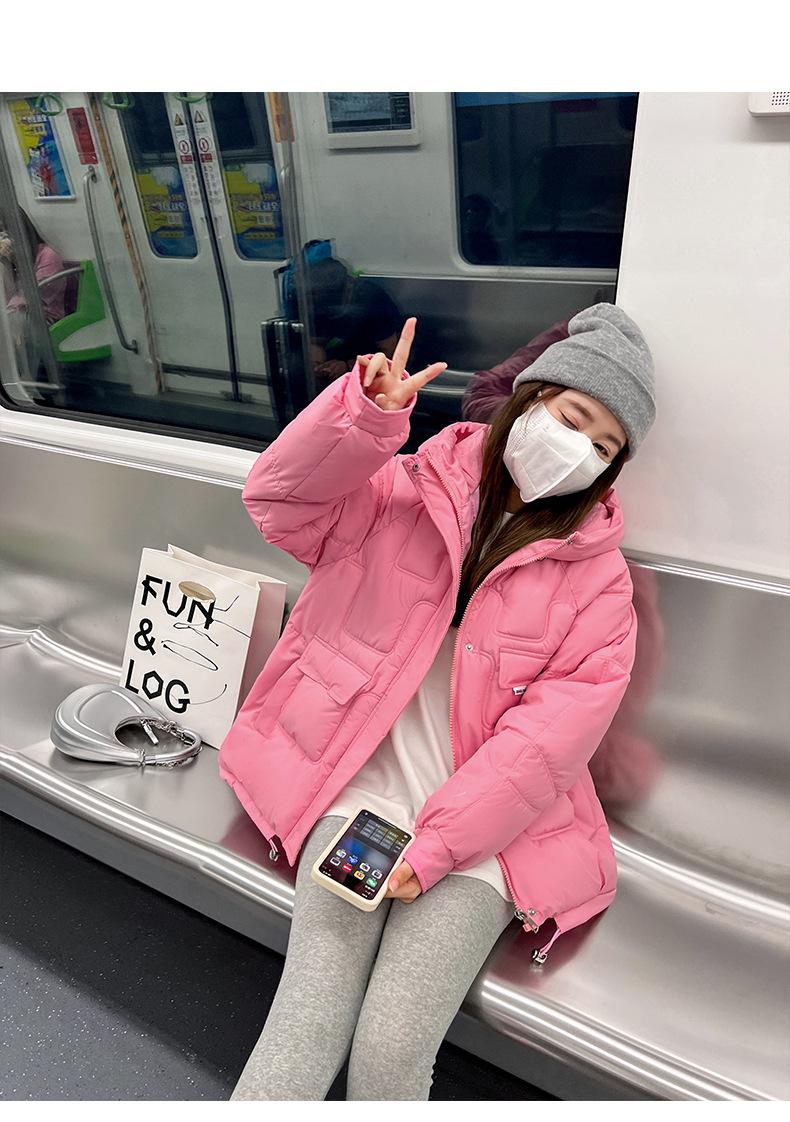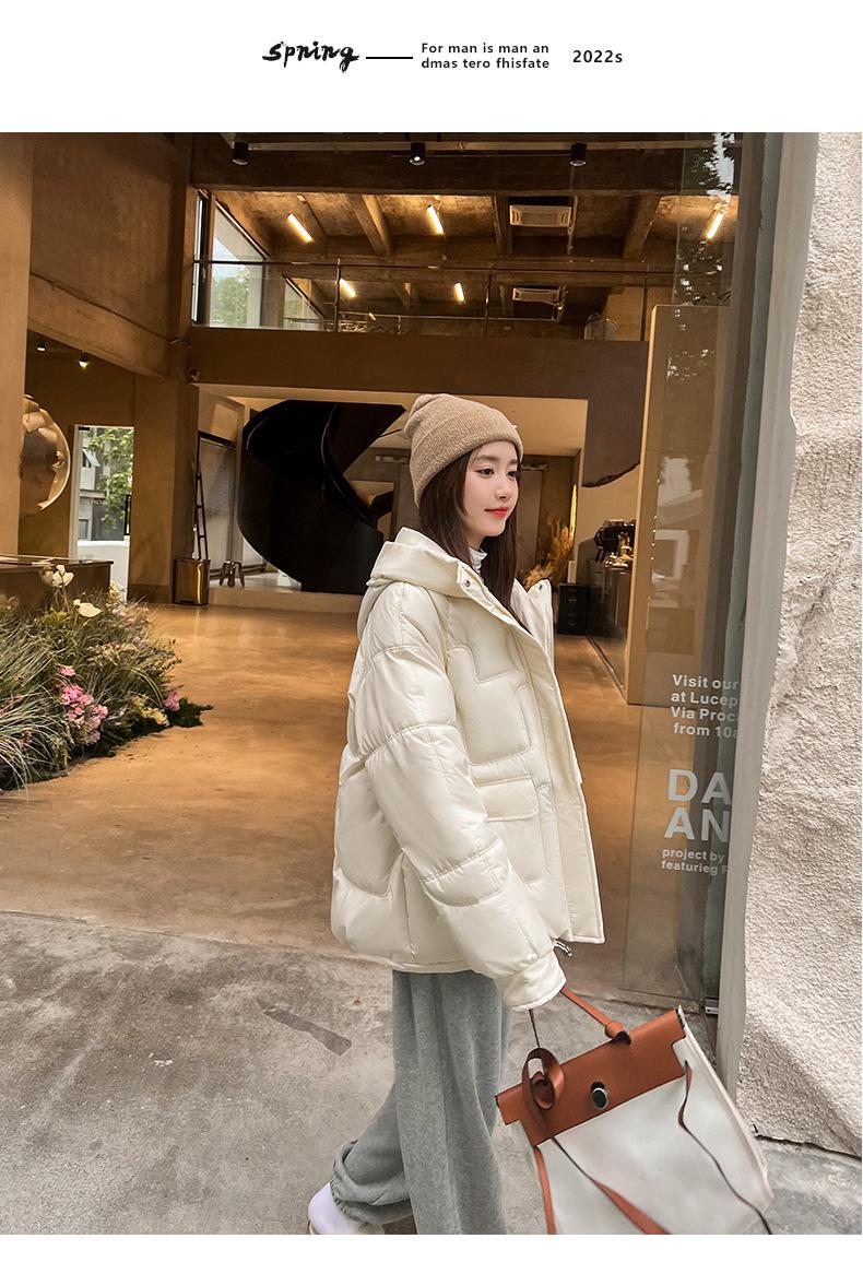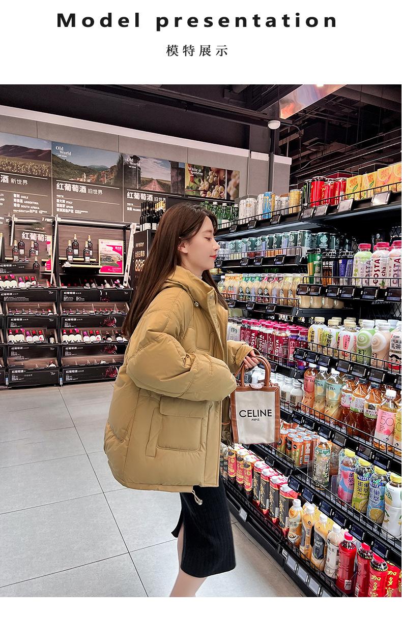 2024 Invierno Nuevo Chaqueta de Algodón Multibolsillos Transfronteriza para Mujer, Abrigo de Algodón Holgado con Capucha, Chaqueta Corta de Invierno