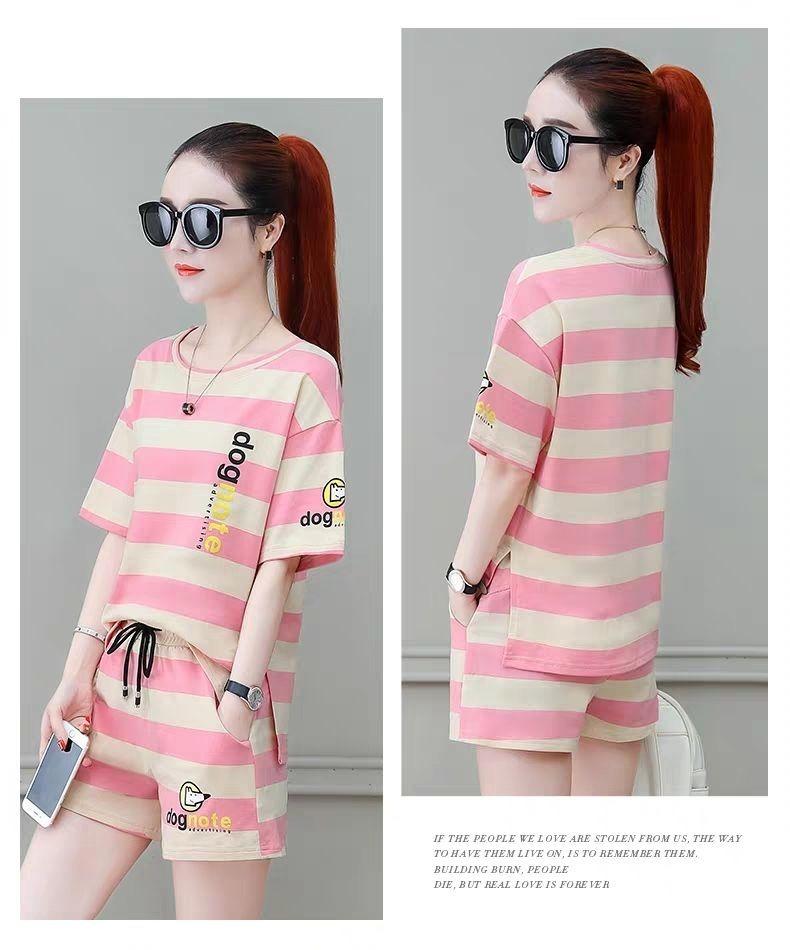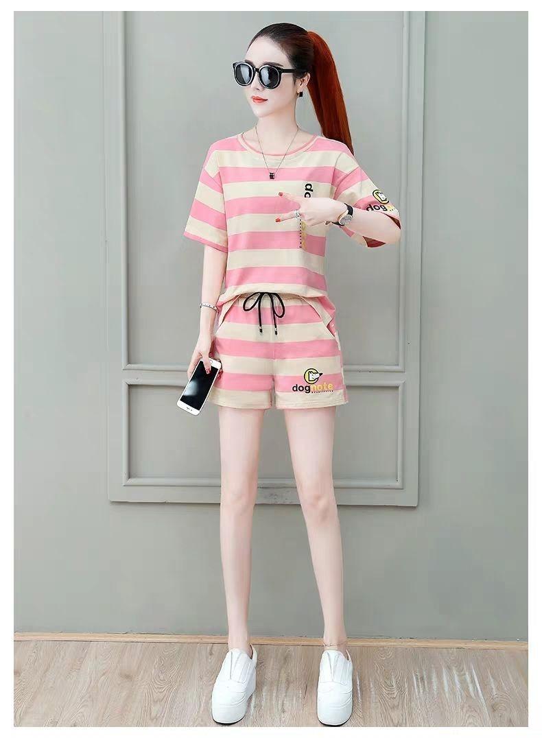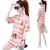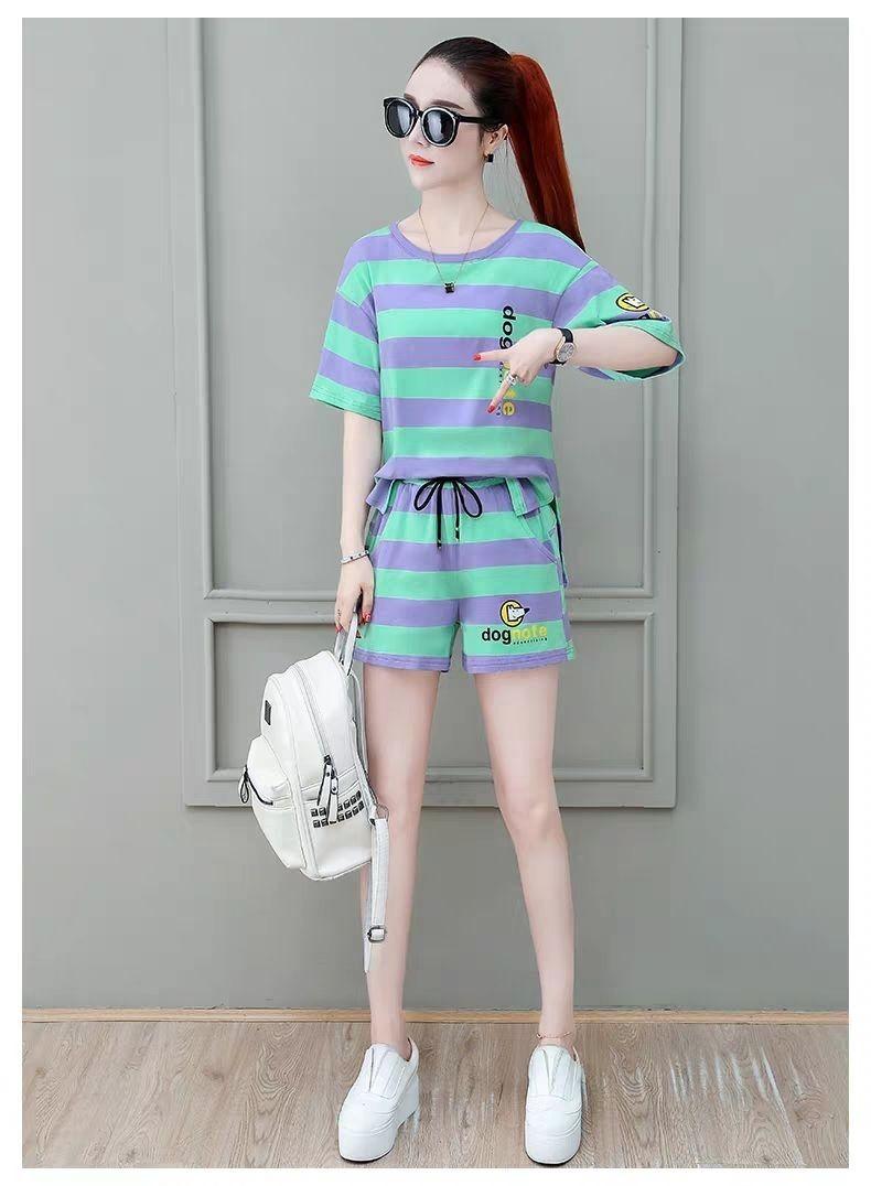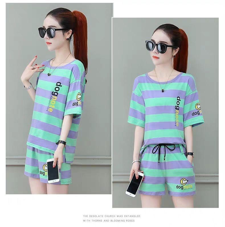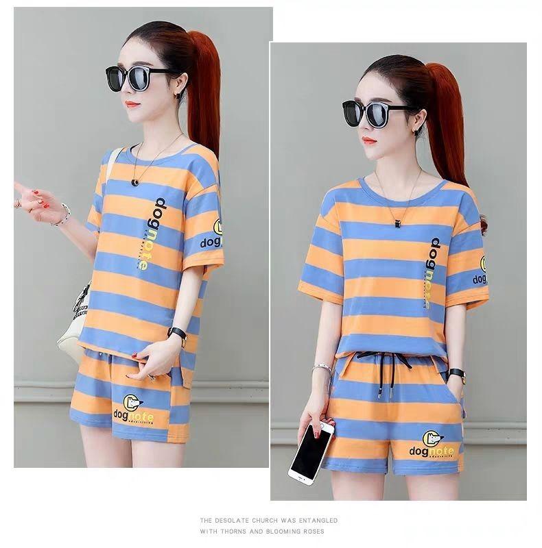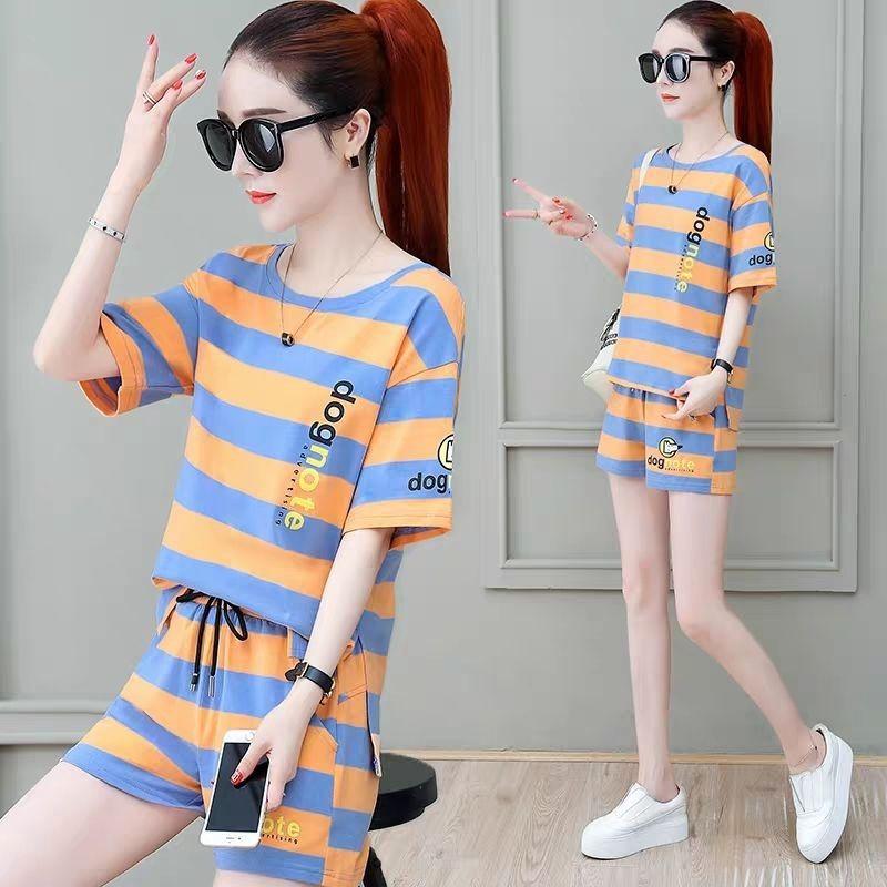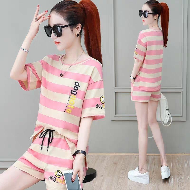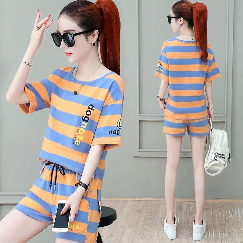 Conjunto deportivo de rayas para mujer, novedad de verano 2024, holgado, a la moda, alto, adelgazante, informal, de manga corta, conjunto de dos piezas