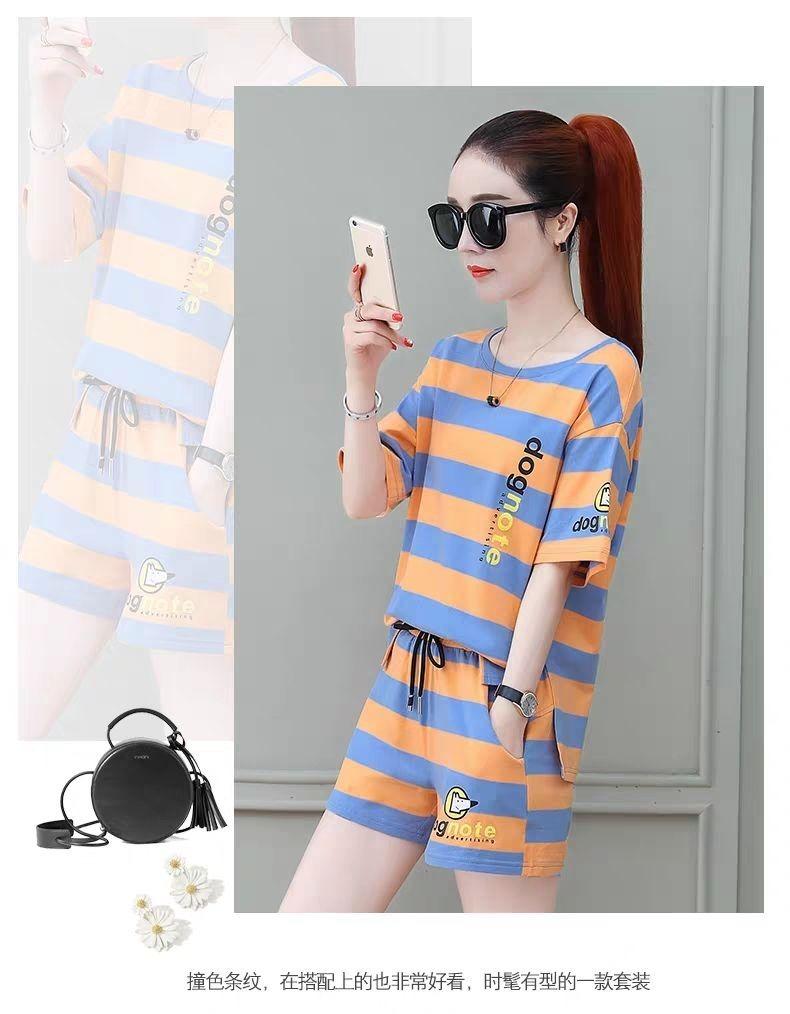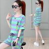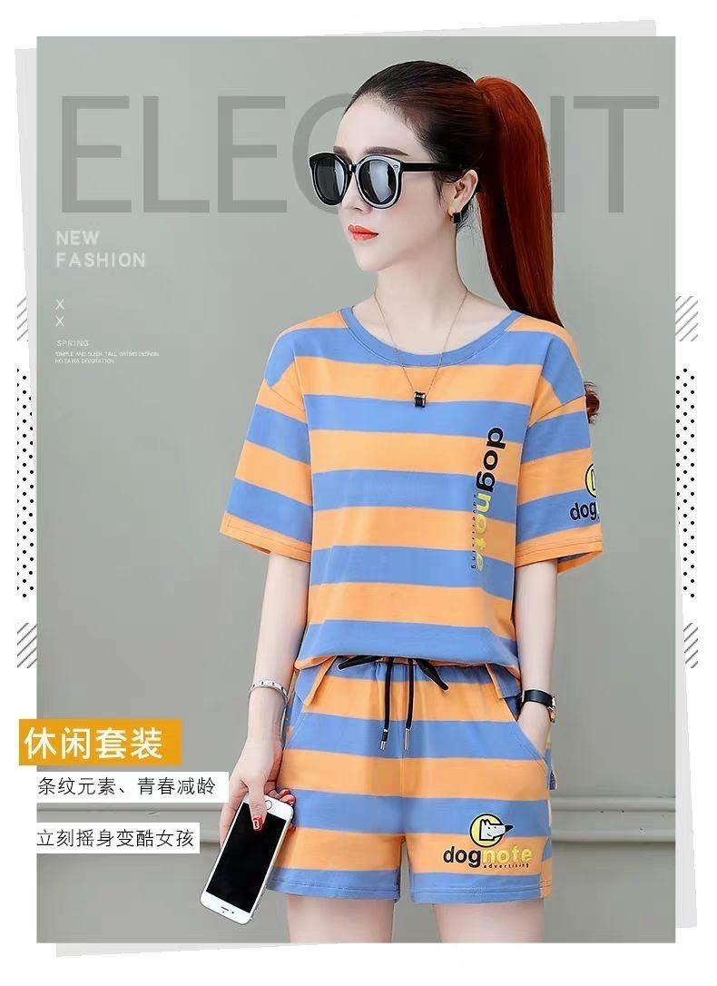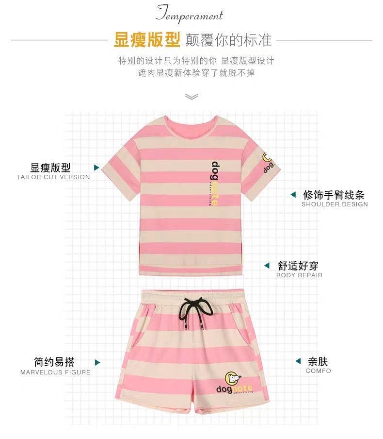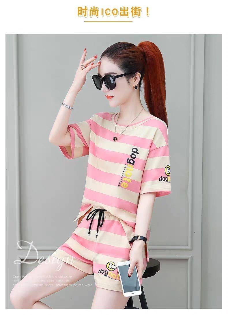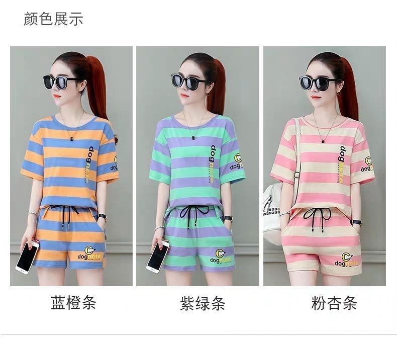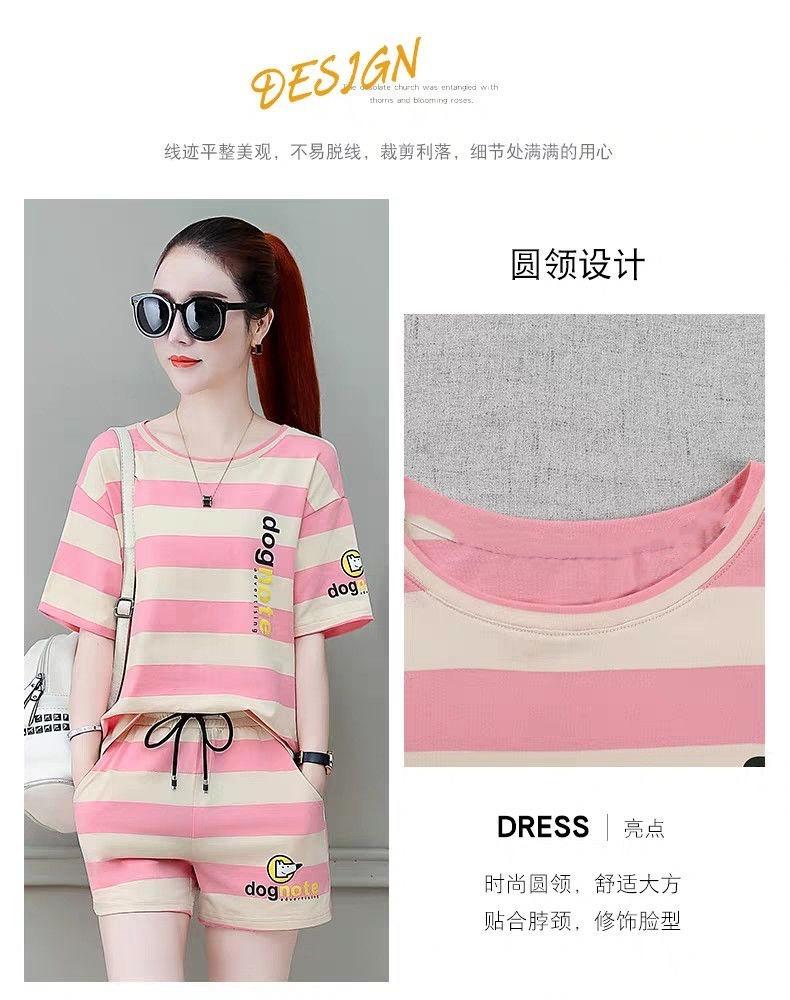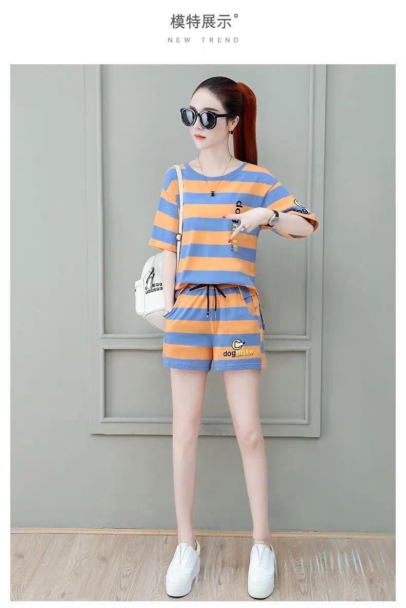 Conjunto deportivo de rayas para mujer, novedad de verano 2024, holgado, a la moda, alto, adelgazante, informal, de manga corta, conjunto de dos piezas