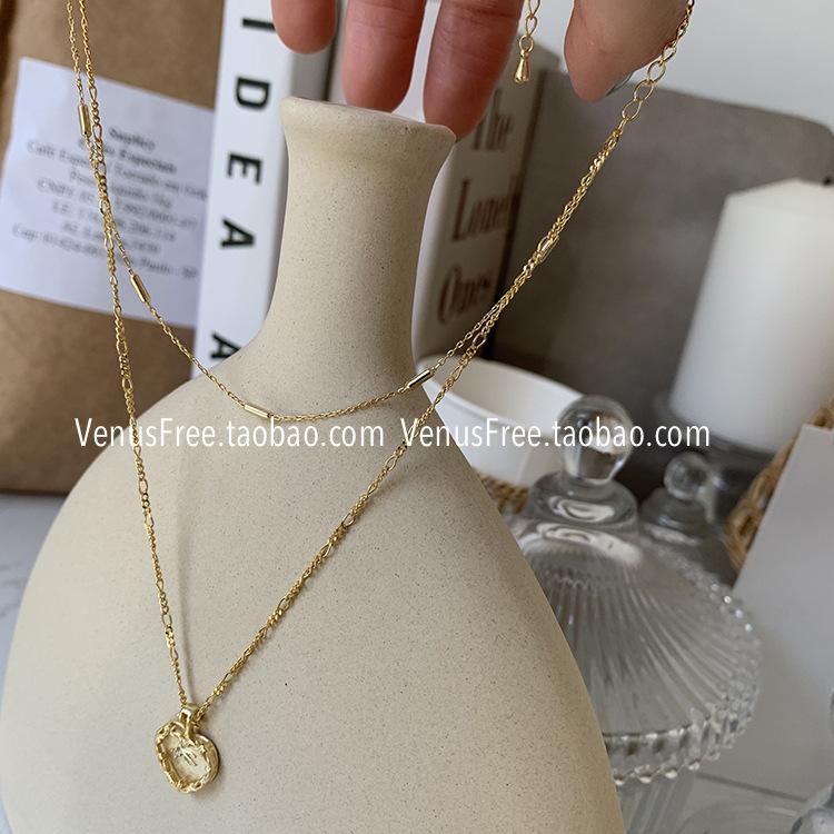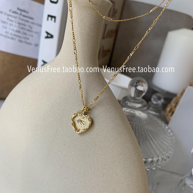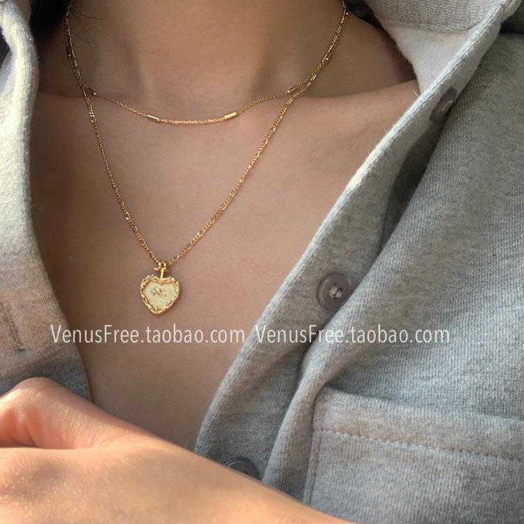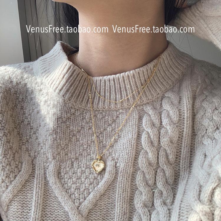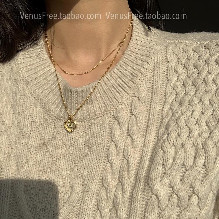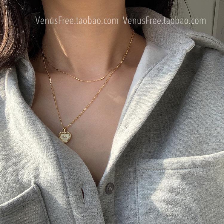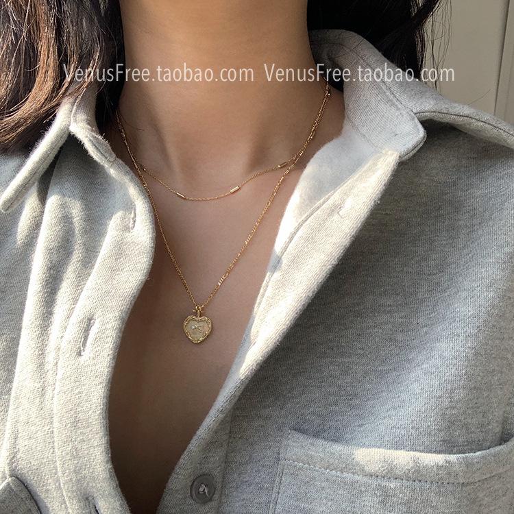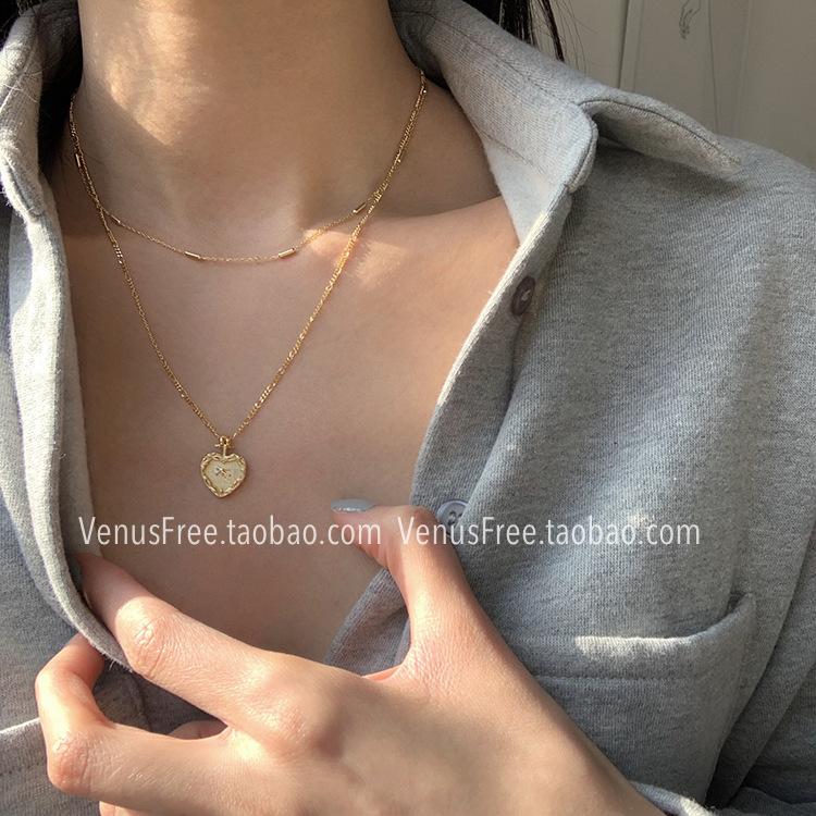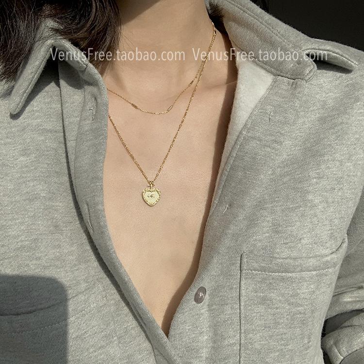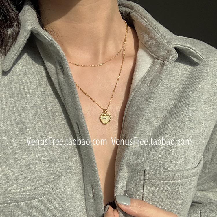 Collar personalizado de plata de ley s925 con doble capa, ligero y lujoso, con forma de corazón, diseño de nicho para mujer, cadena de clavícula con sentido del viento frío, joyería