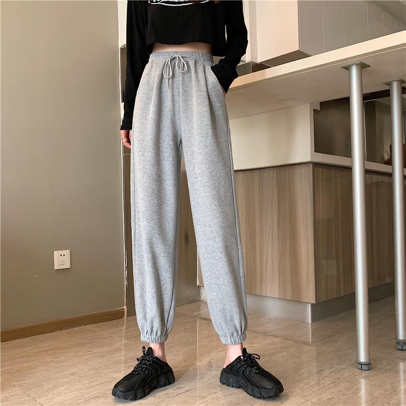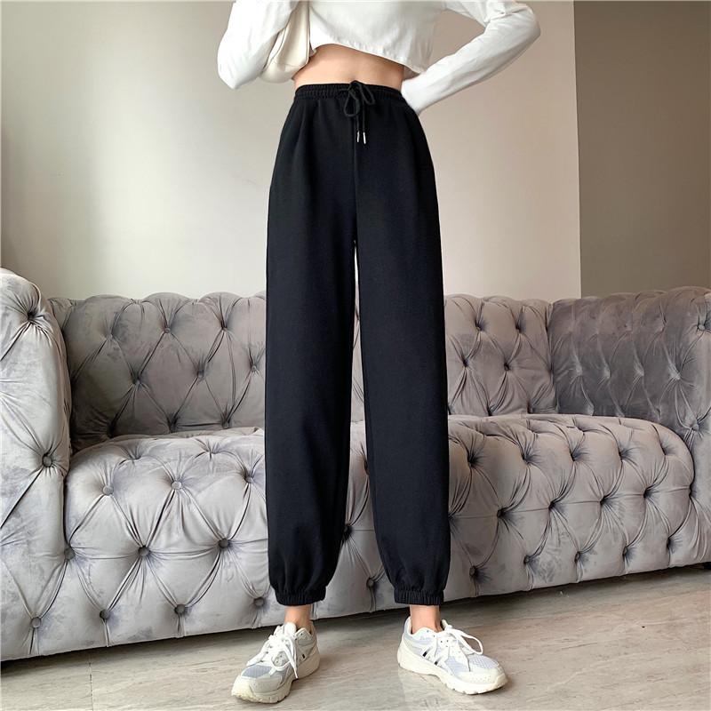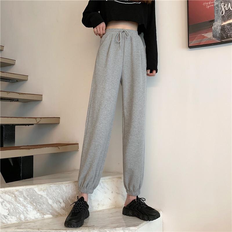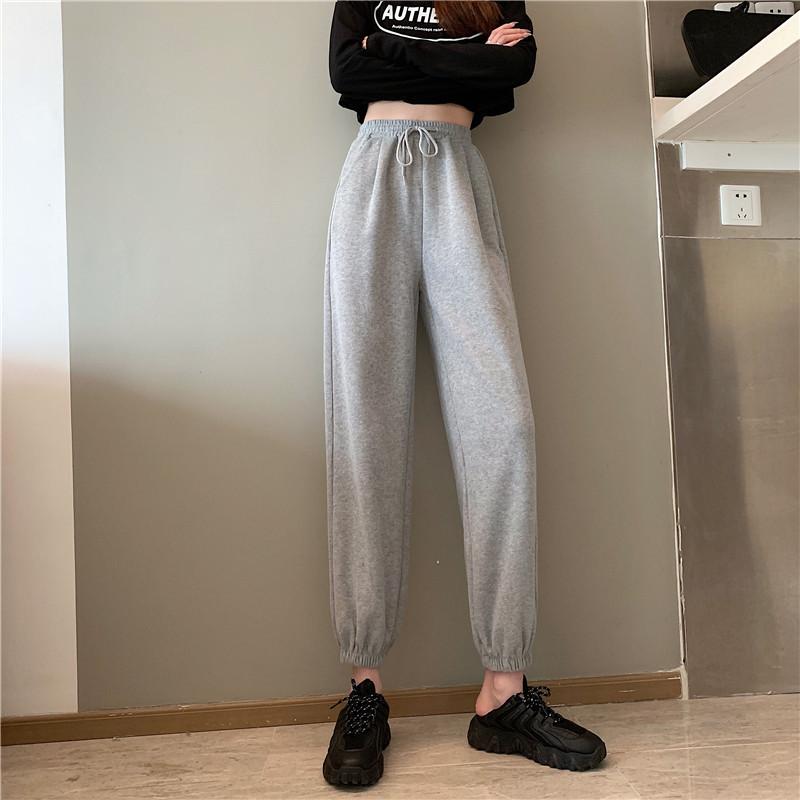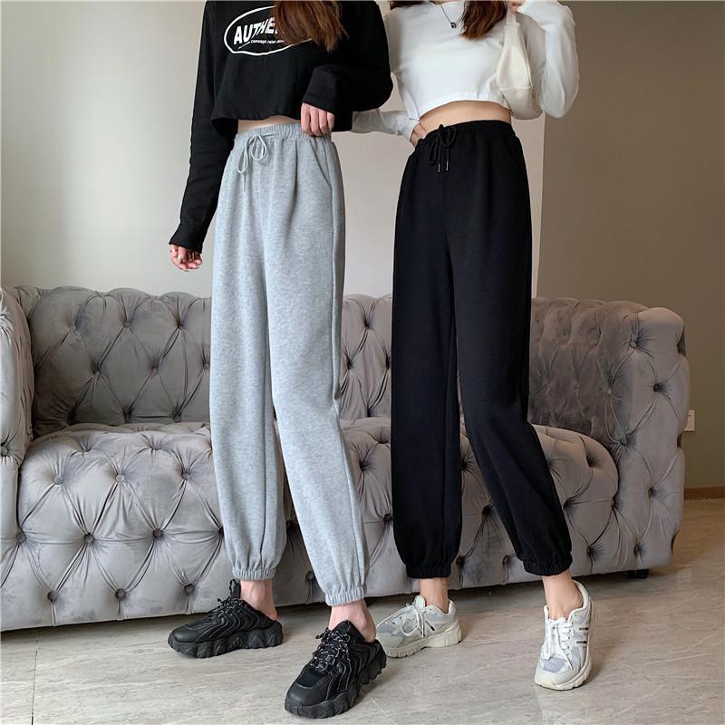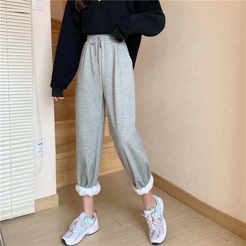 Pantalones deportivos casuales con forro polar para niñas, estilo coreano, elegantes, holgados, tipo harén, de cintura media, combinables para estudiantes.
