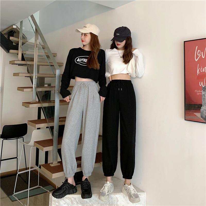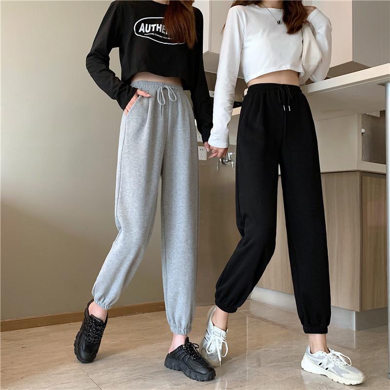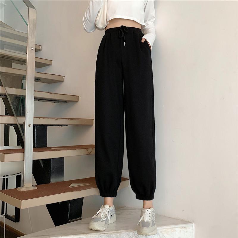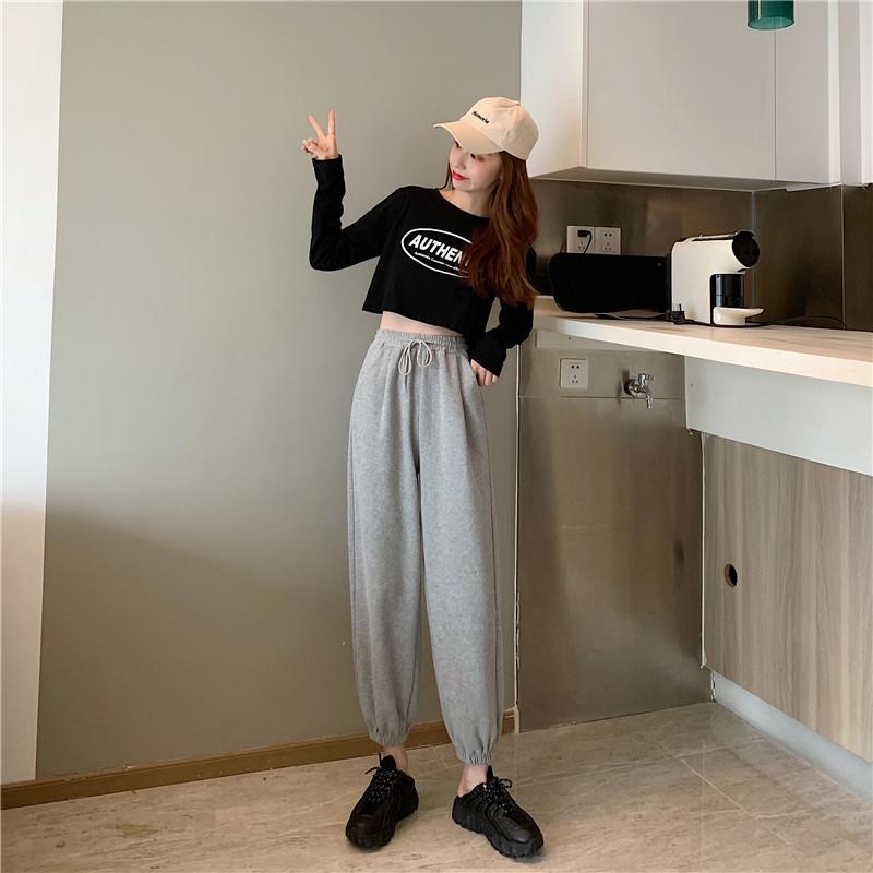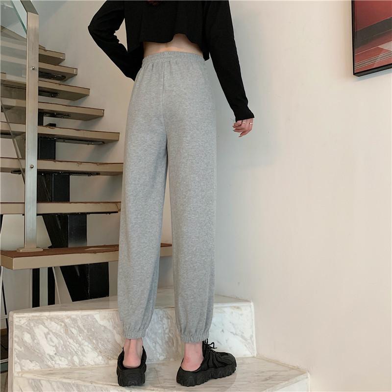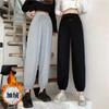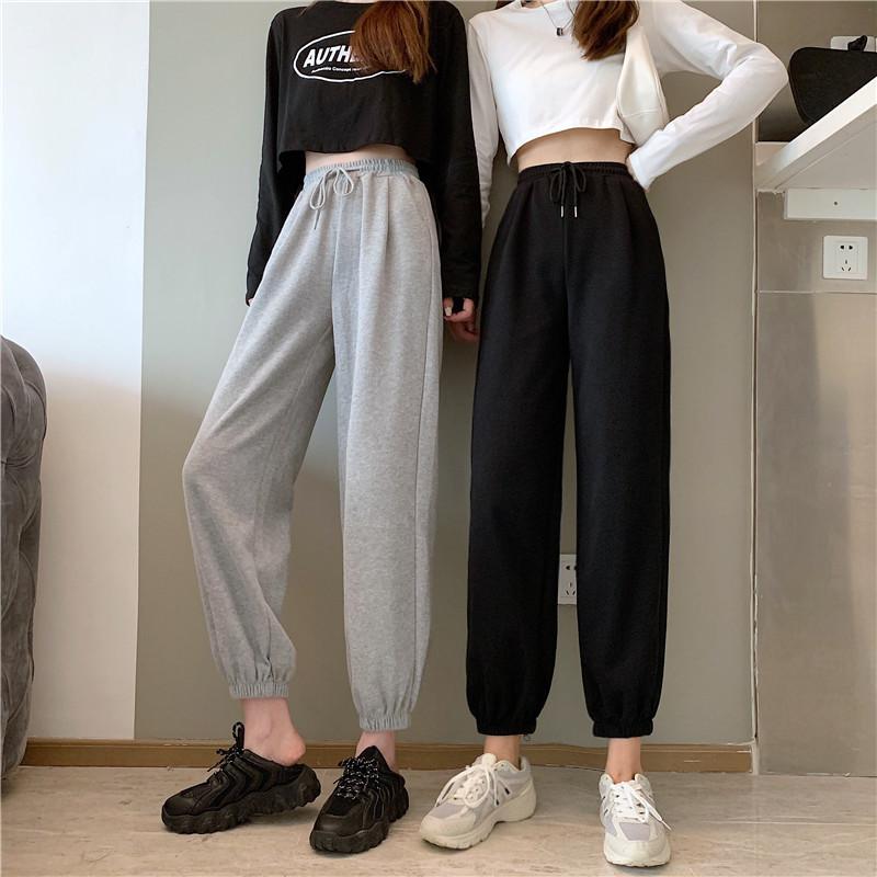 Pantalones deportivos casuales con forro polar para niñas, estilo coreano, elegantes, holgados, tipo harén, de cintura media, combinables para estudiantes.