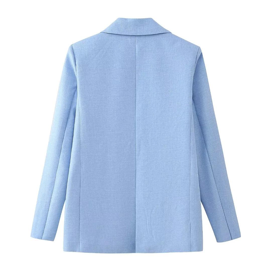 Conjunto de chaqueta y pantalón cruzado con hombreras para mujer, verano 2024, Amazon, Europa y América, disponible transfronterizamente.