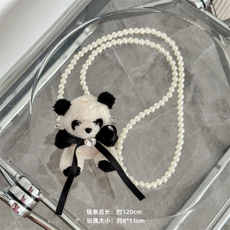 Muñeca Panda pequeña clip trasero para teléfono móvil ins decoración de carcasa para teléfono móvil correa cruzada halter cadena colgante para teléfono móvil antipérdida