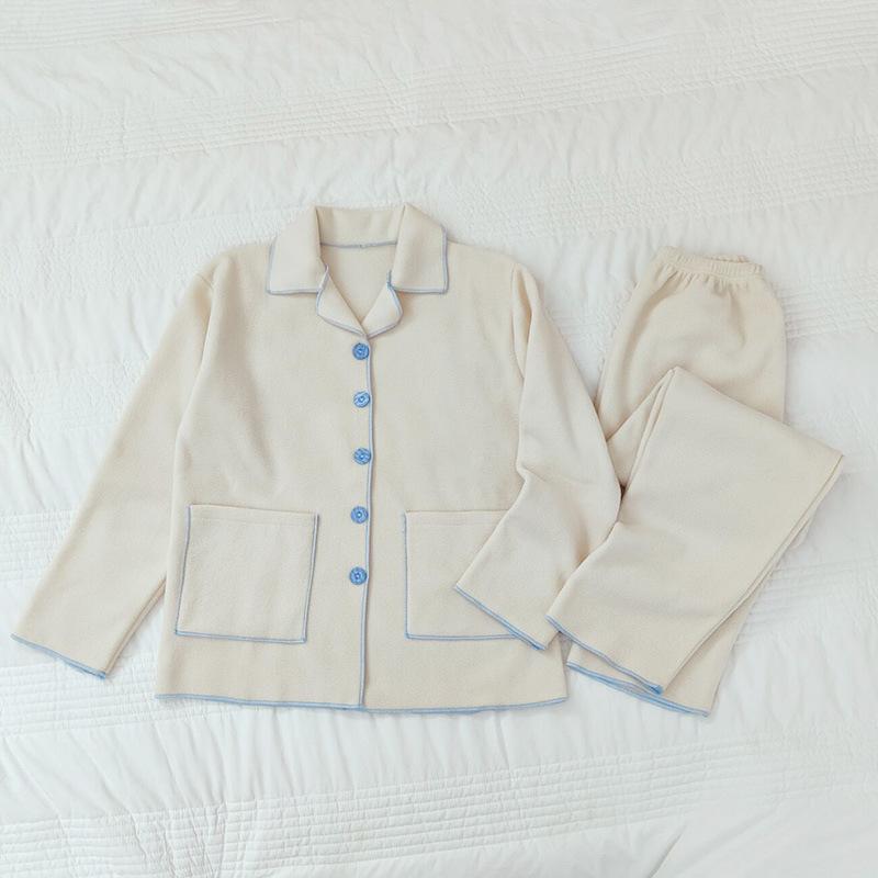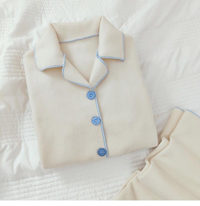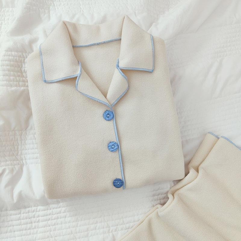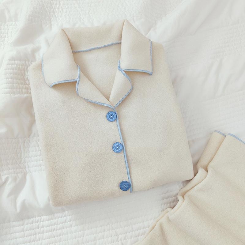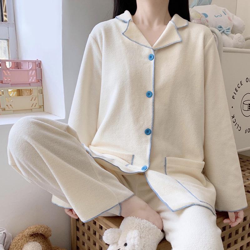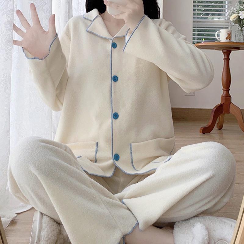 Pijama Polar de Otoño e Invierno para Mujer, Grueso y Cálido, Estilo Japonés, Simple y Dulce, Ropa de Abrigo, Traje de Dos Piezas