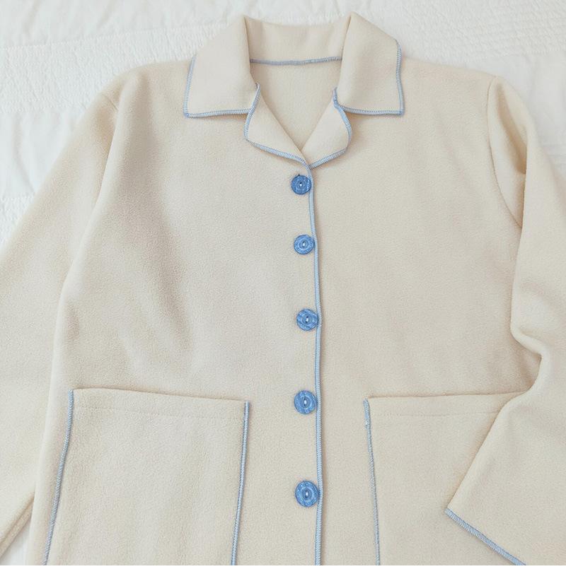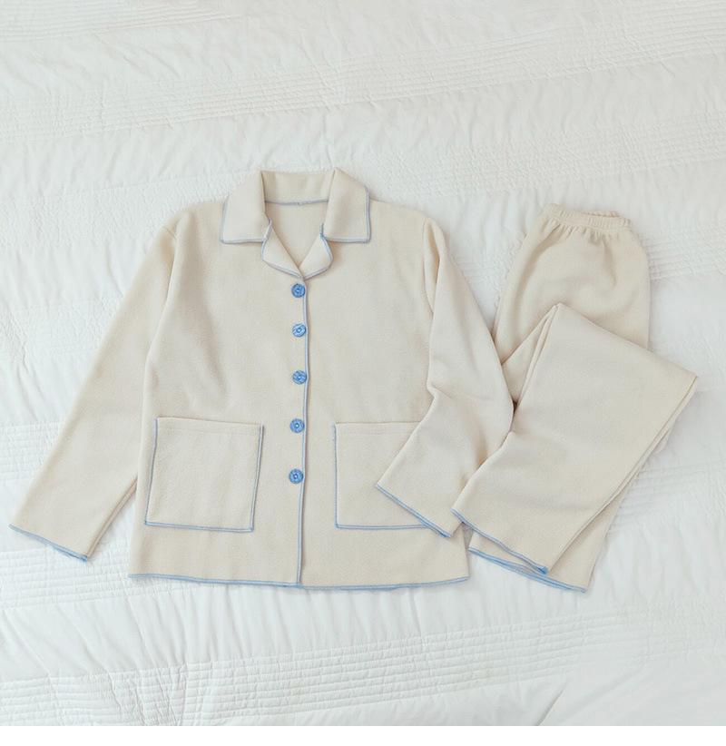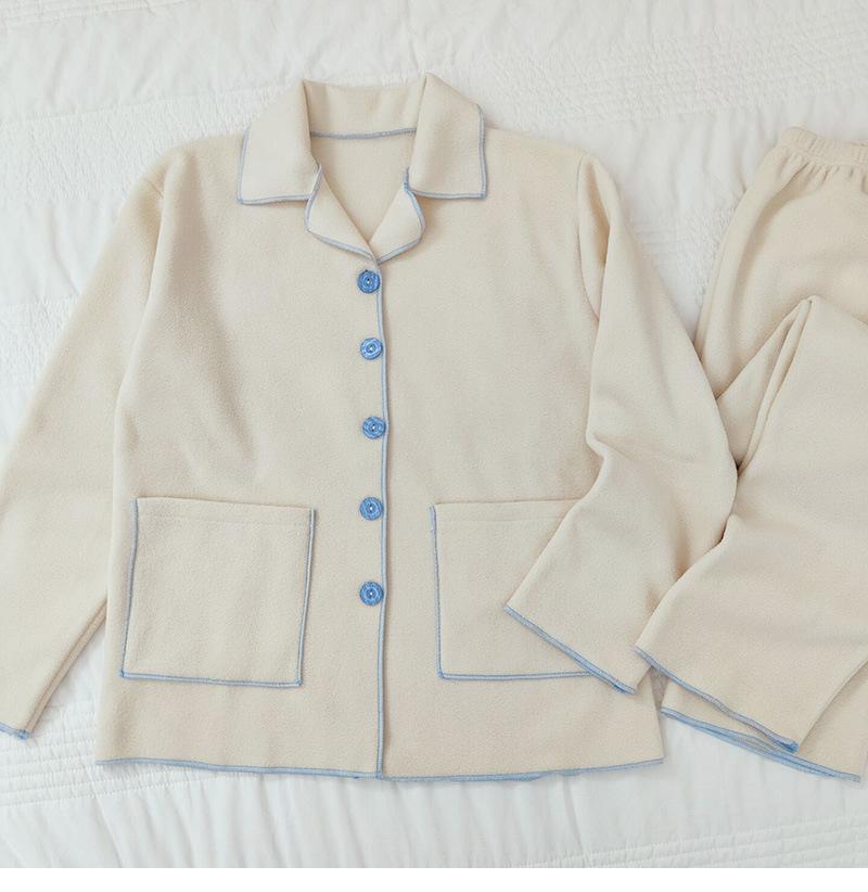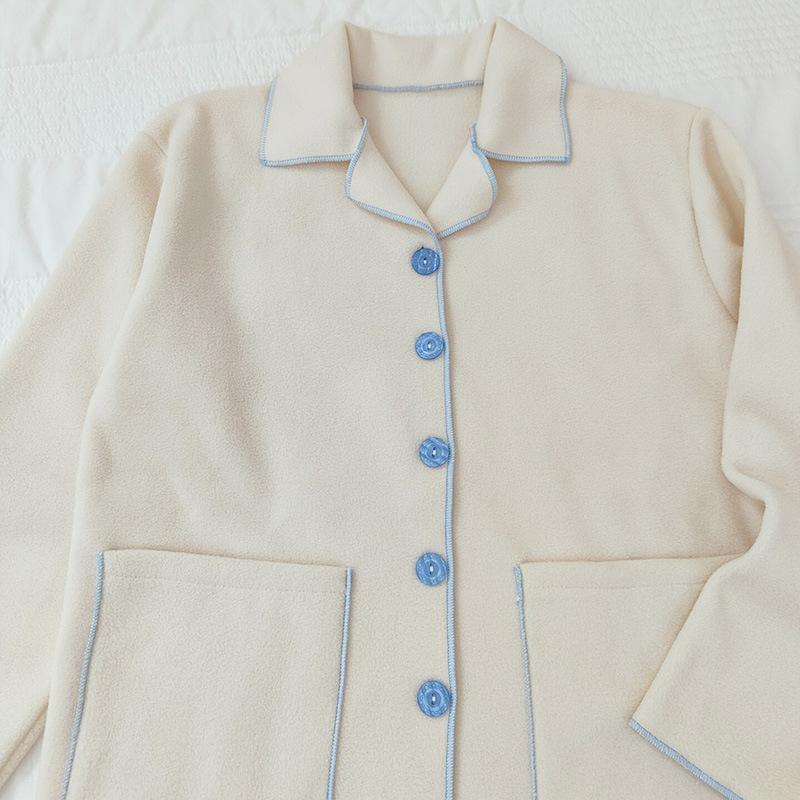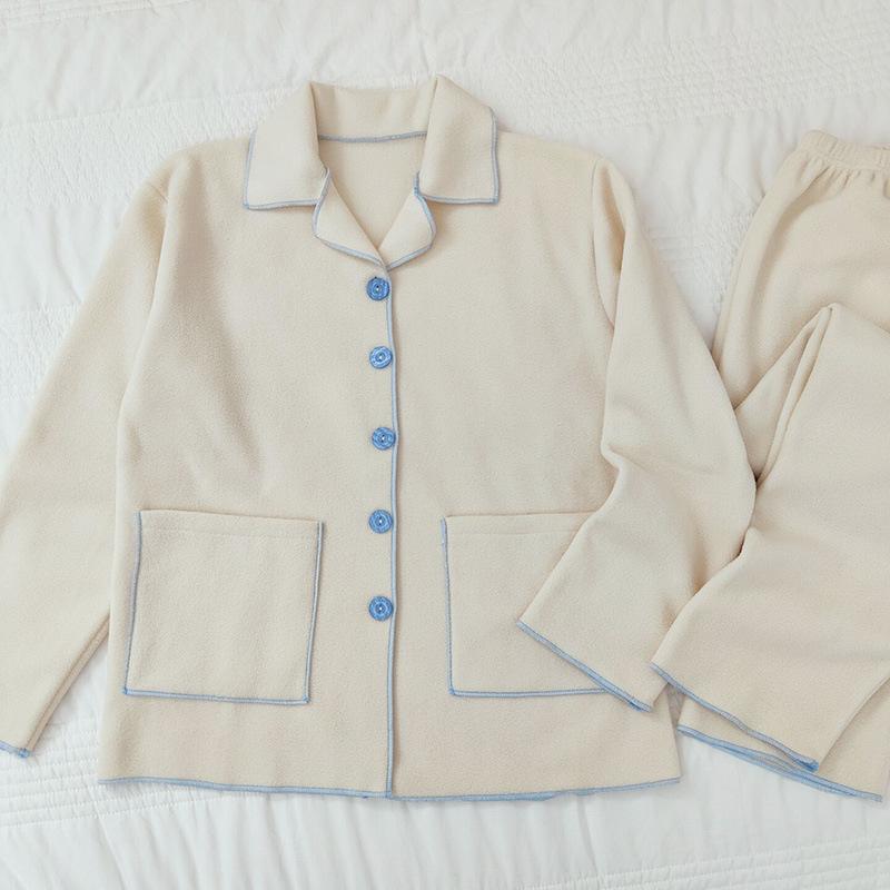 Pijama Polar de Otoño e Invierno para Mujer, Grueso y Cálido, Estilo Japonés, Simple y Dulce, Ropa de Abrigo, Traje de Dos Piezas