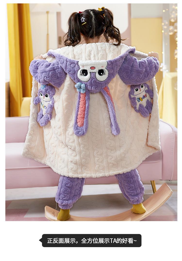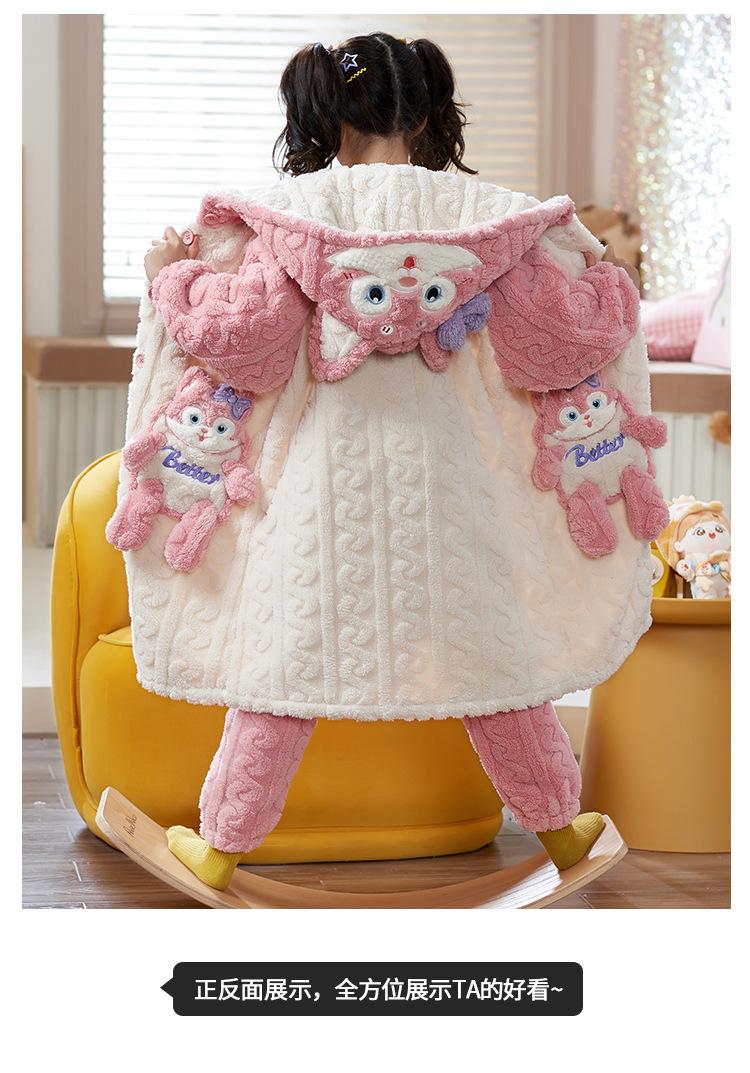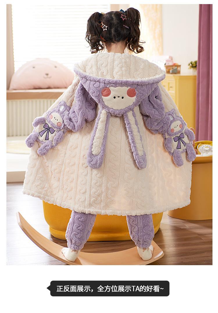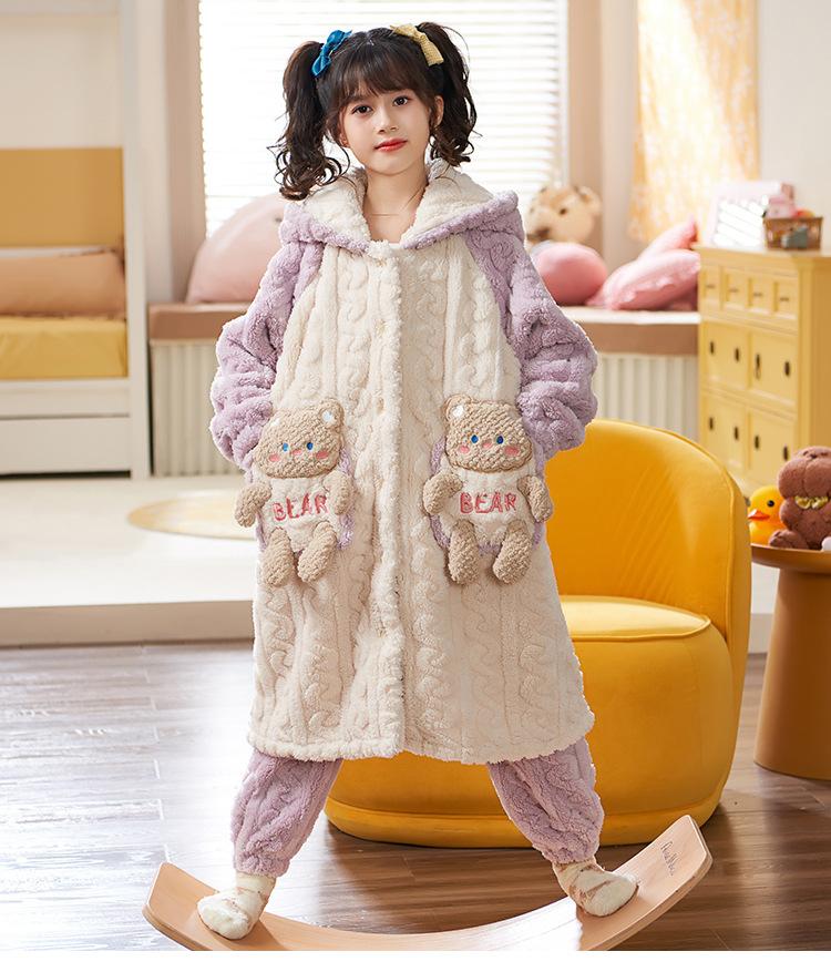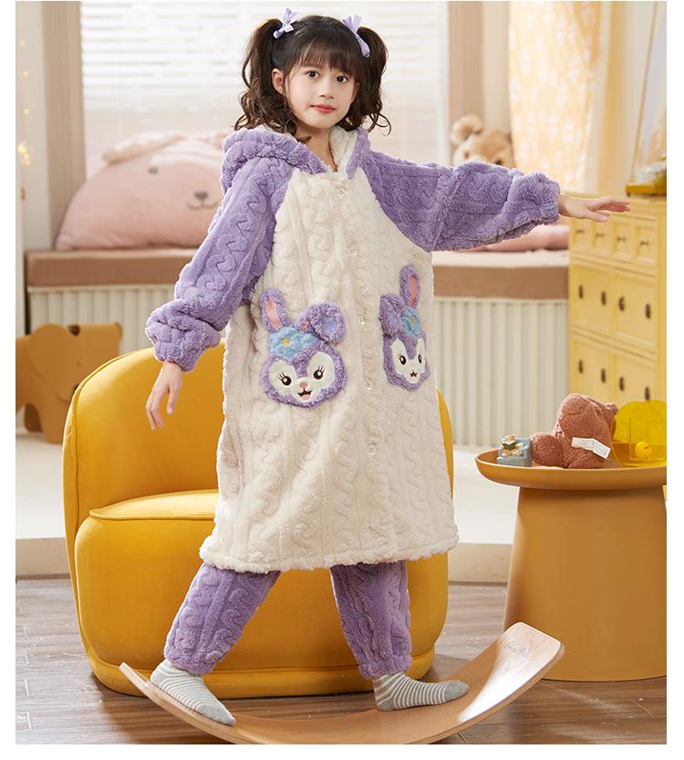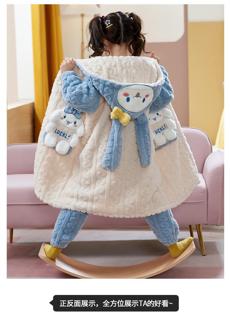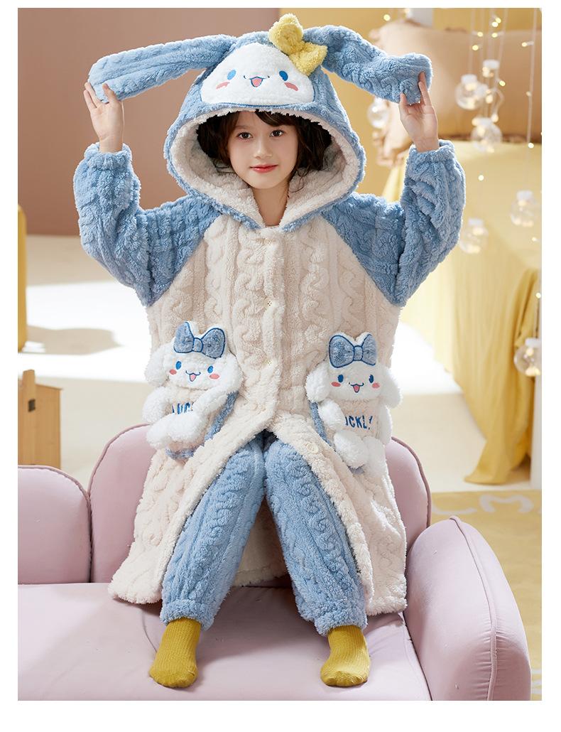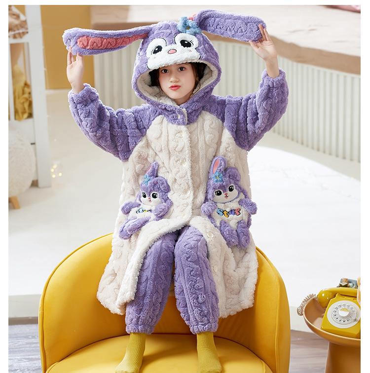 Pijamas de invierno para niñas, bata de perro Yugui de franela acolchada de tres capas gruesa para niñas, traje de ropa de casa