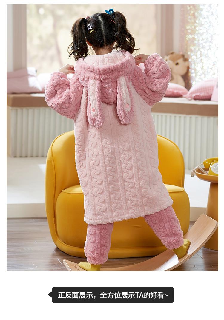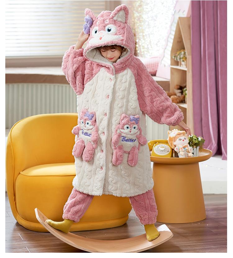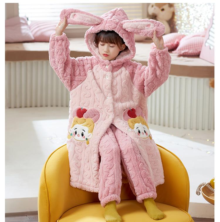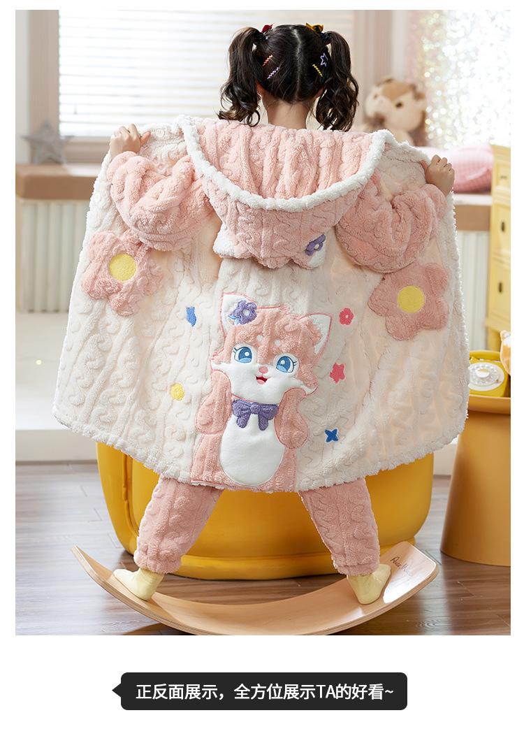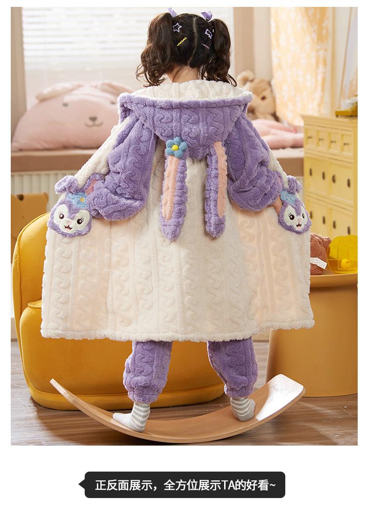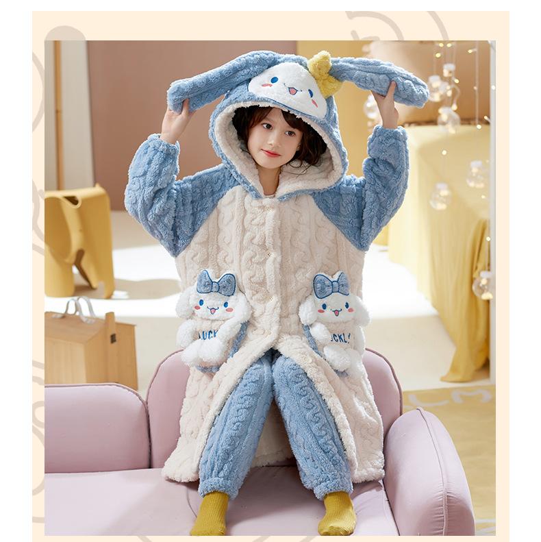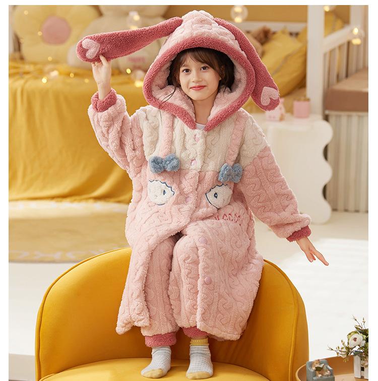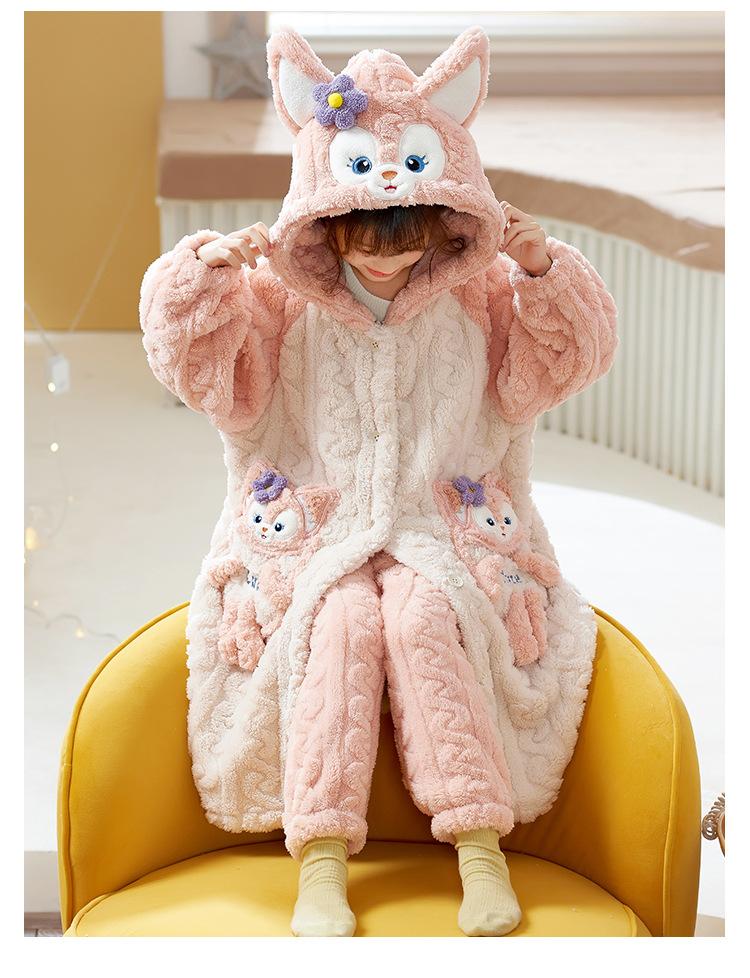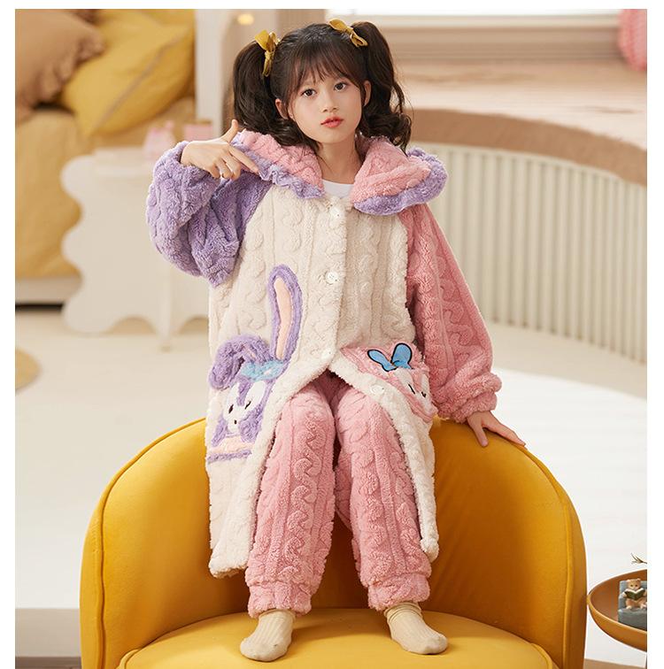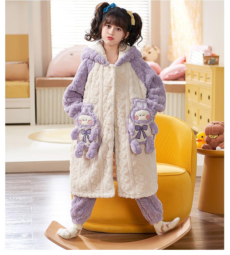Pijamas de invierno para niñas, bata de perro Yugui de franela acolchada de tres capas gruesa para niñas, traje de ropa de casa
