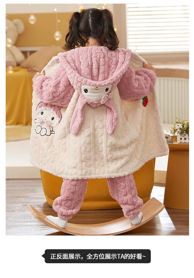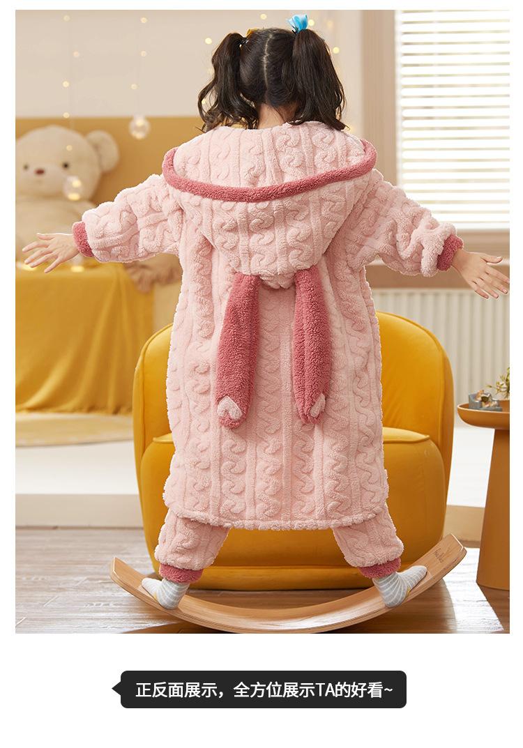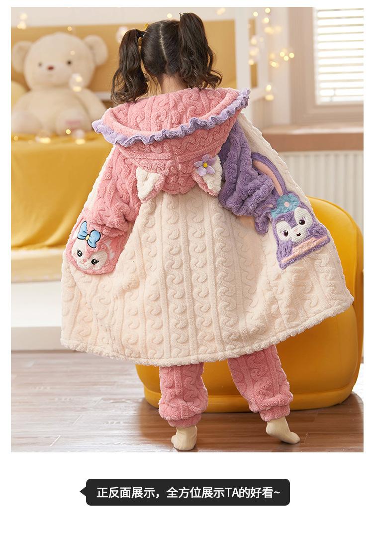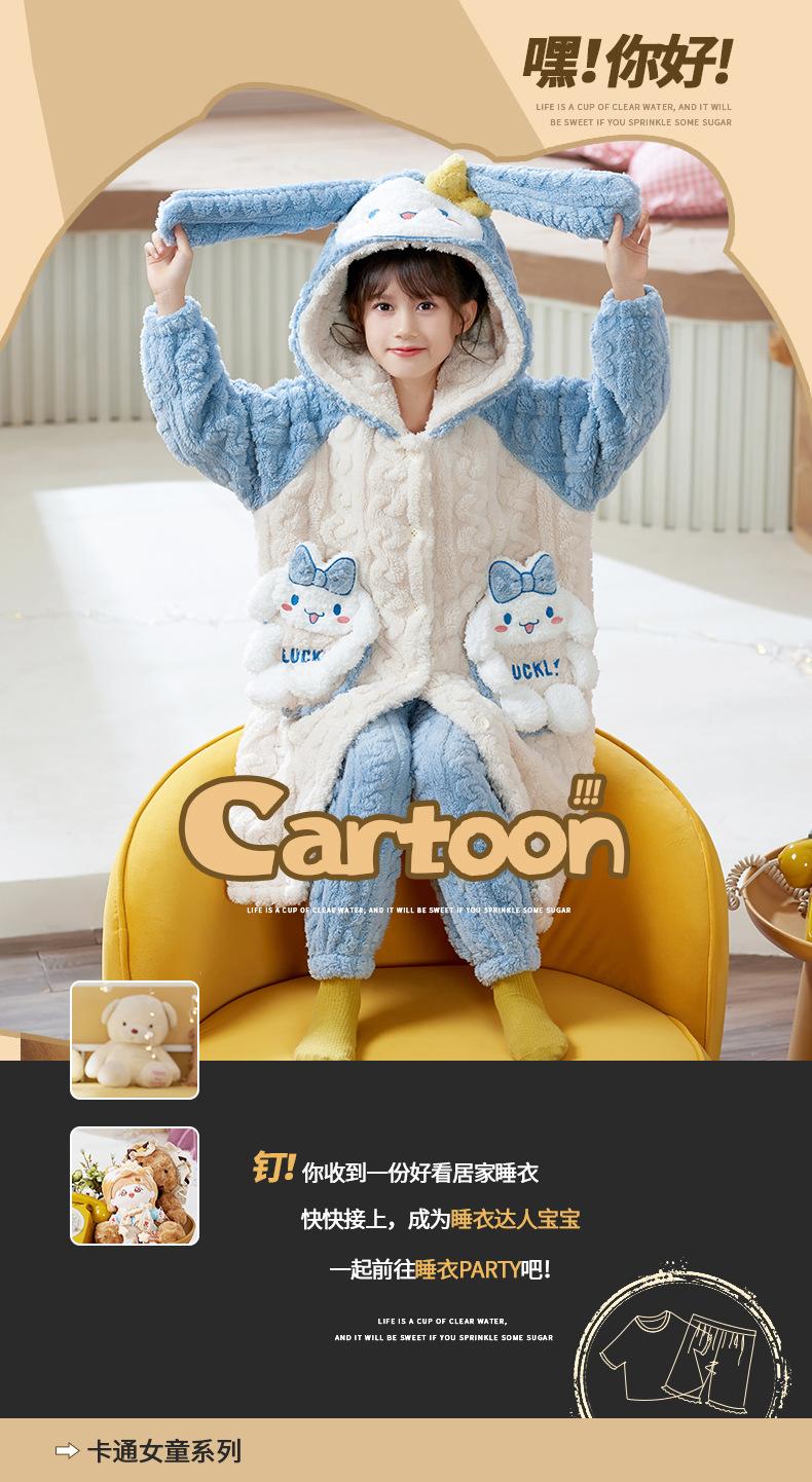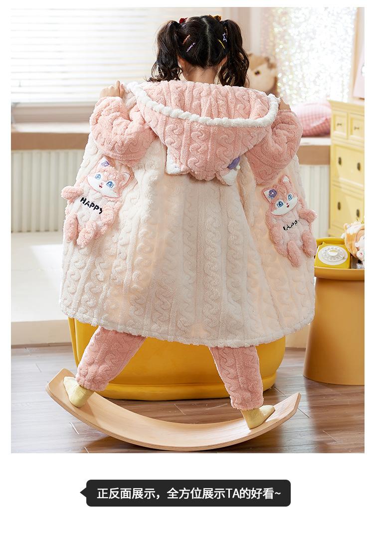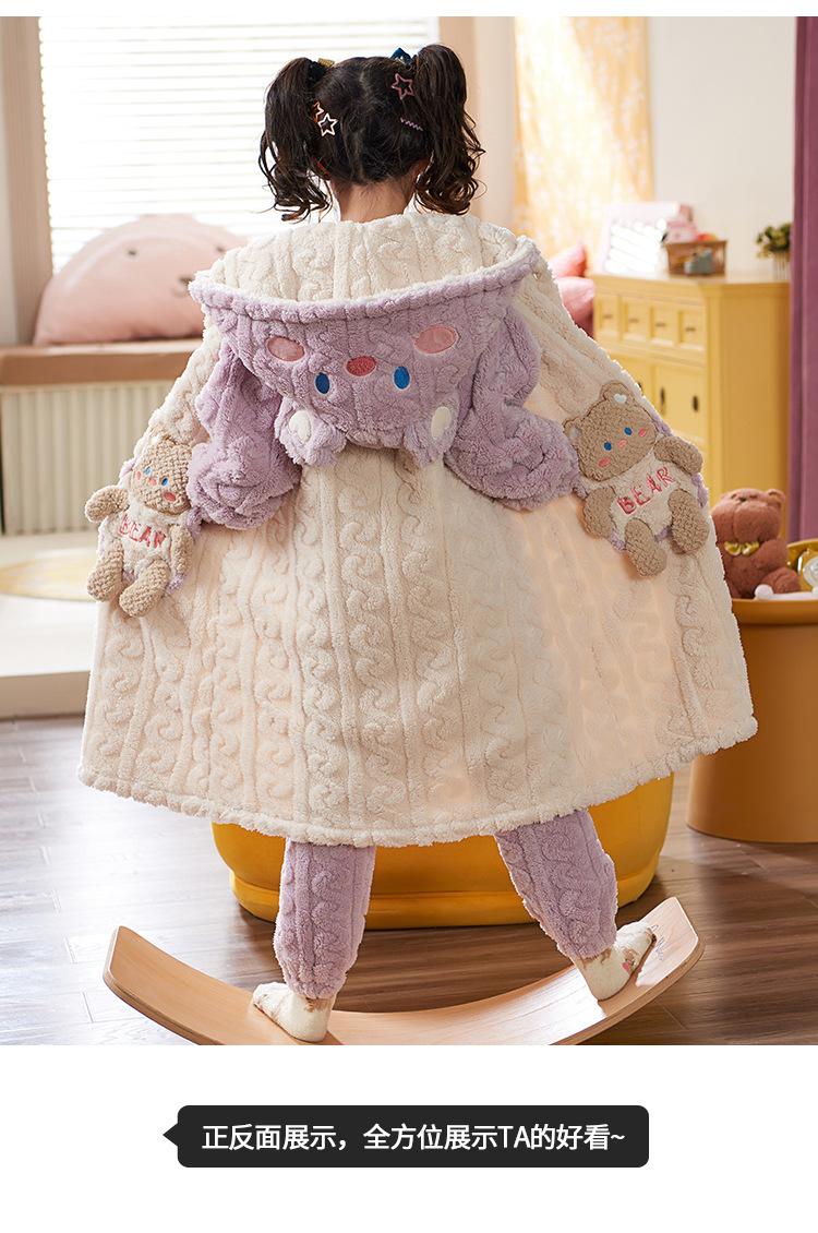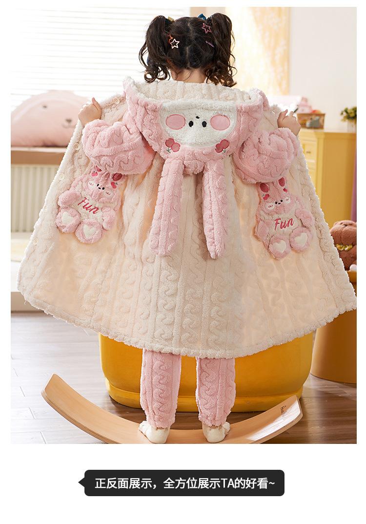 Pijamas de invierno para niñas, bata de perro Yugui de franela acolchada de tres capas gruesa para niñas, traje de ropa de casa