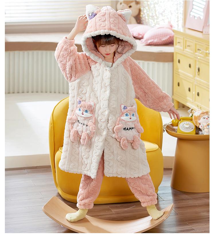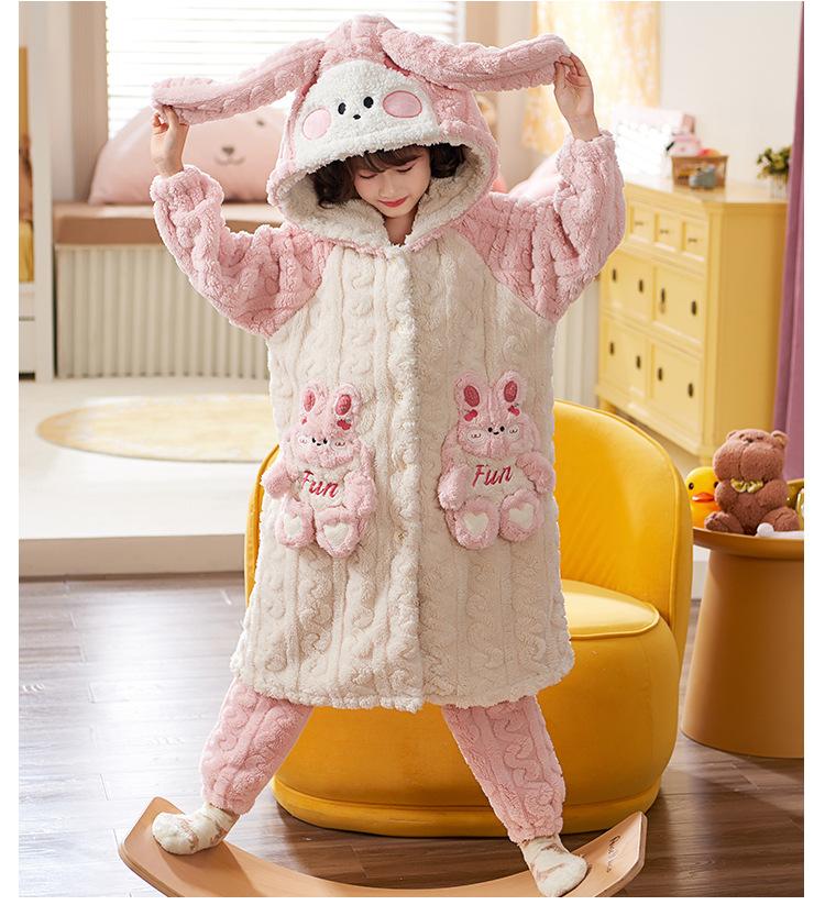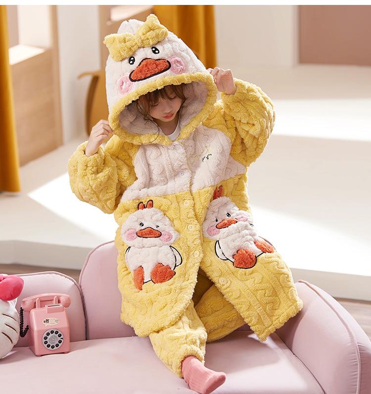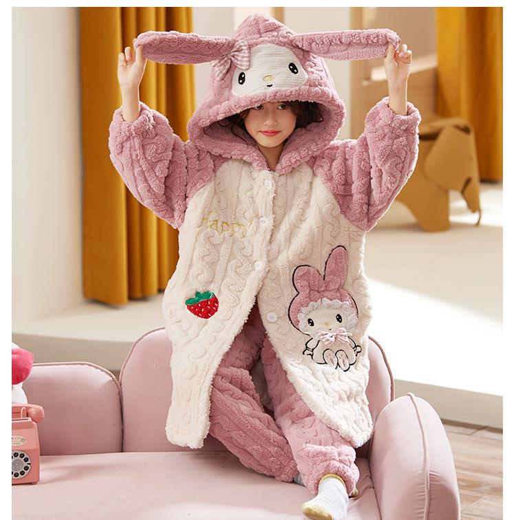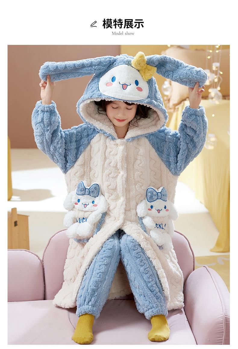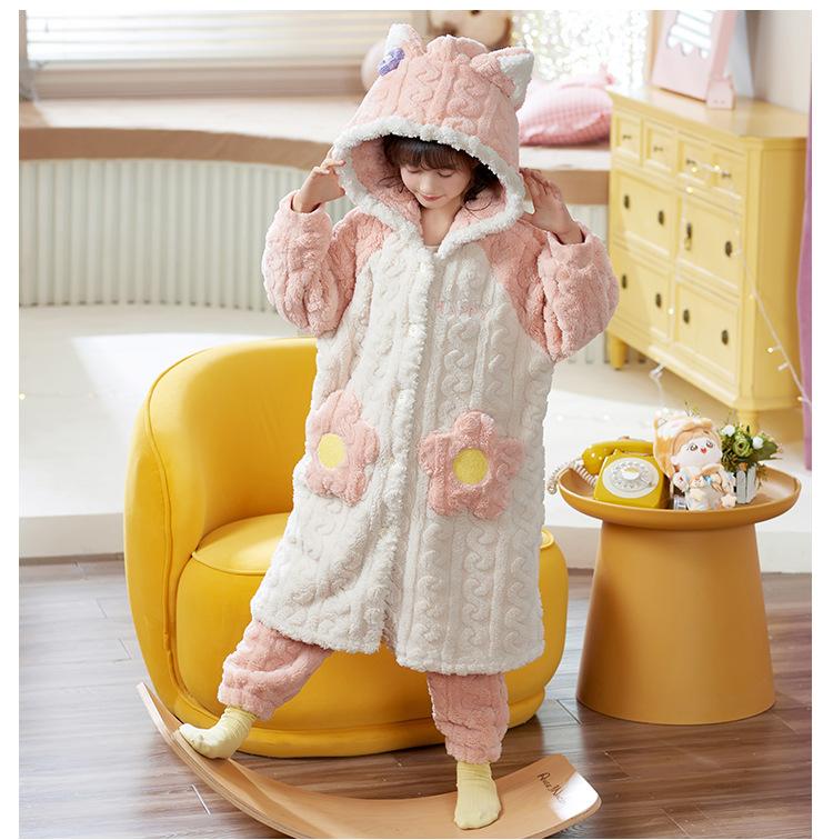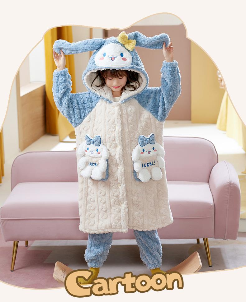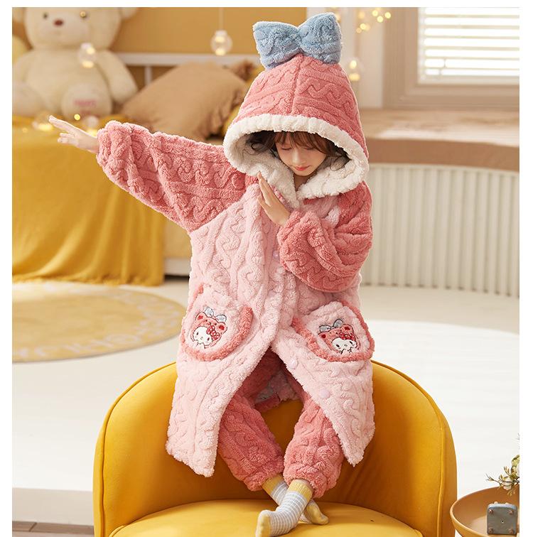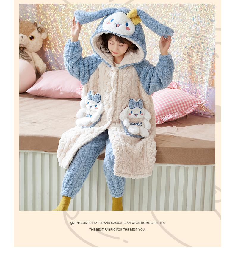 Pijamas de invierno para niñas, bata de perro Yugui de franela acolchada de tres capas gruesa para niñas, traje de ropa de casa
