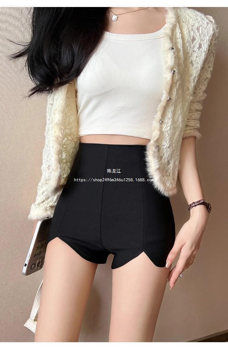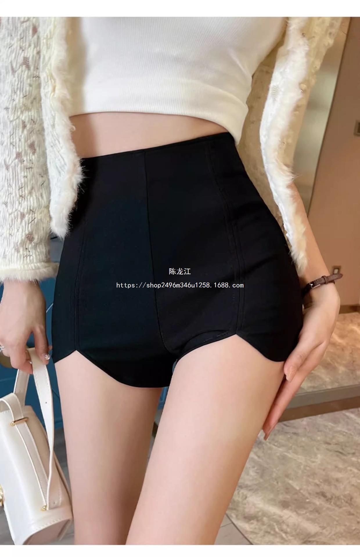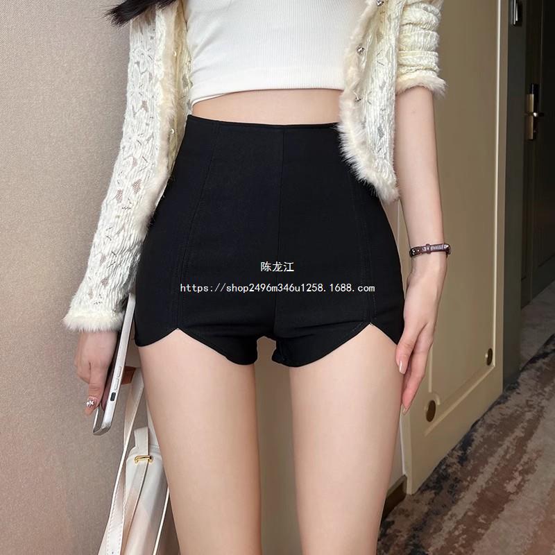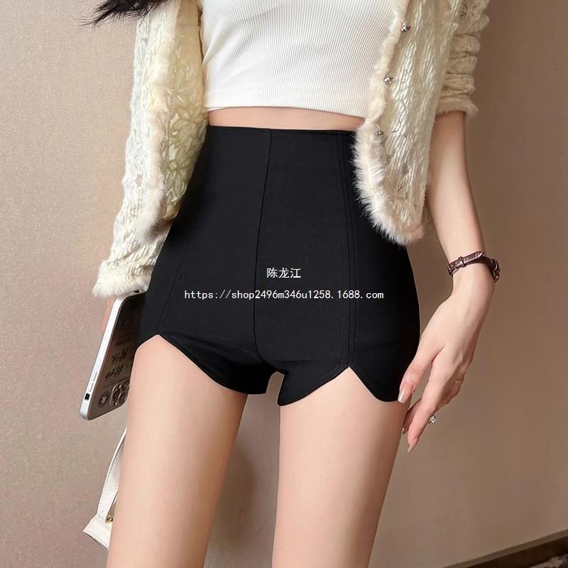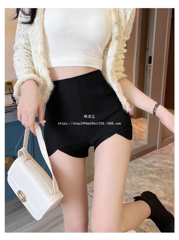 Pantalones cortos ajustados negros de otoño para mujer, de cintura alta, ajustados, irregulares, elásticos, talla 20, talla 23