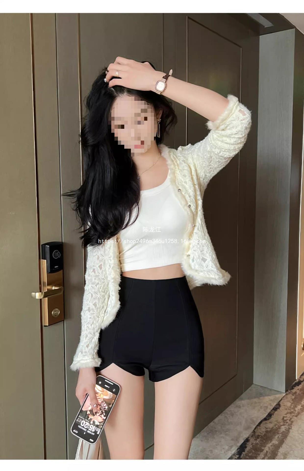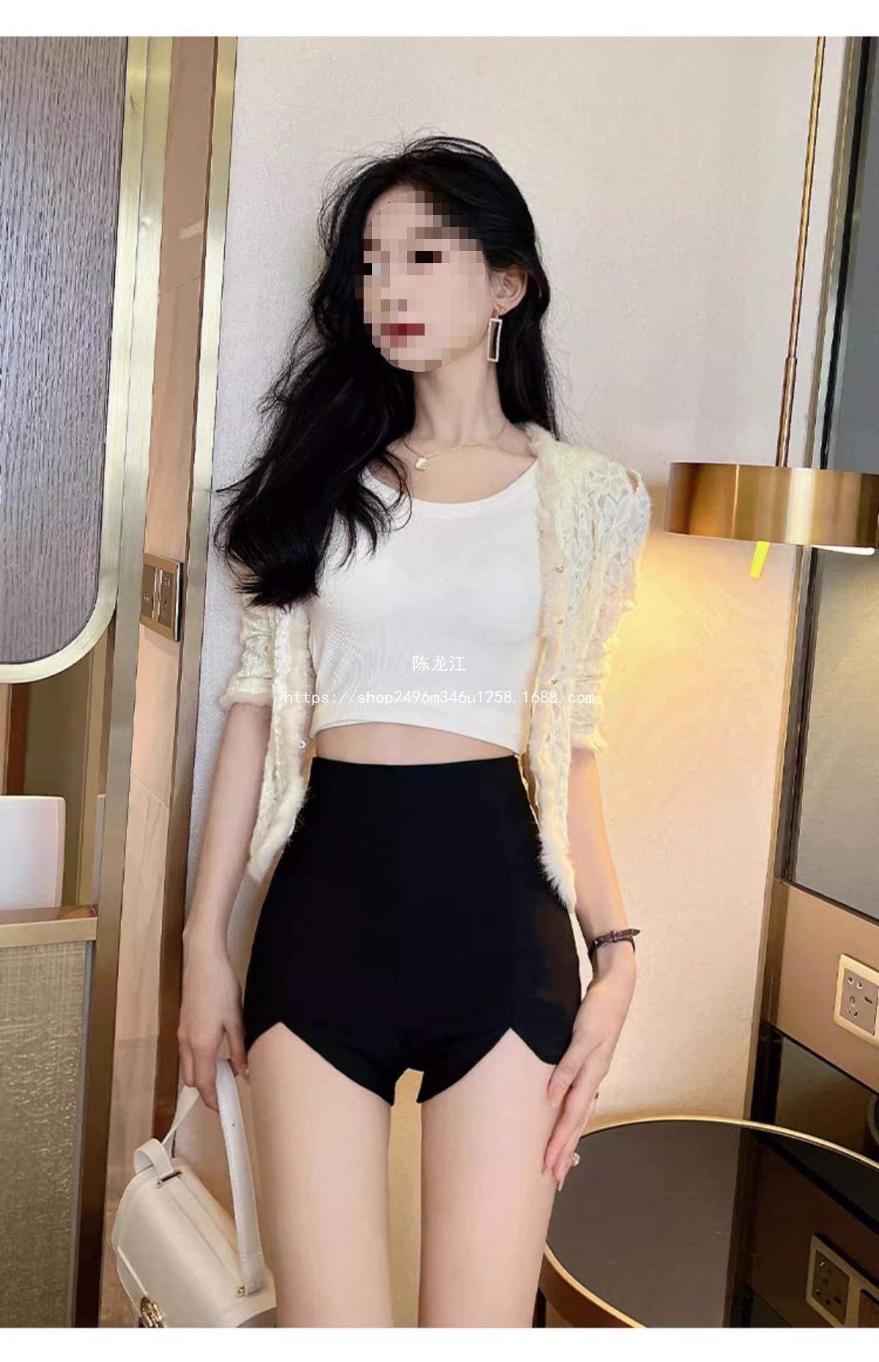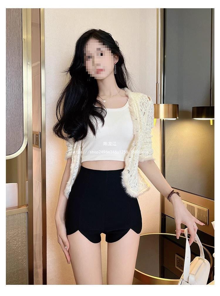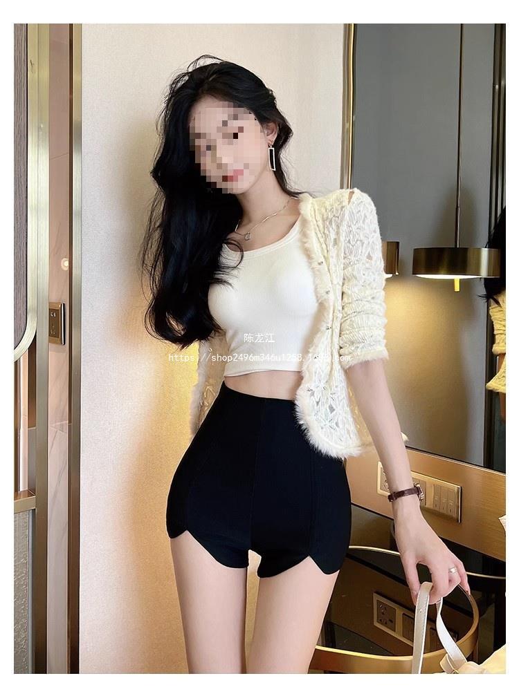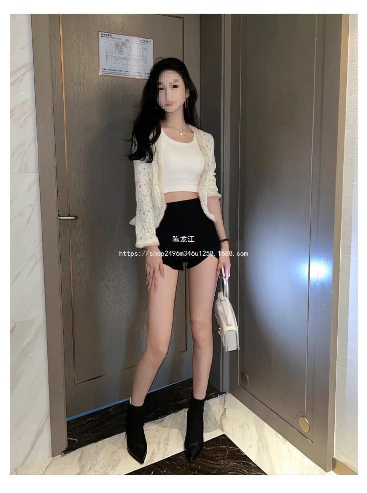 Pantalones cortos ajustados negros de otoño para mujer, de cintura alta, ajustados, irregulares, elásticos, talla 20, talla 23