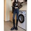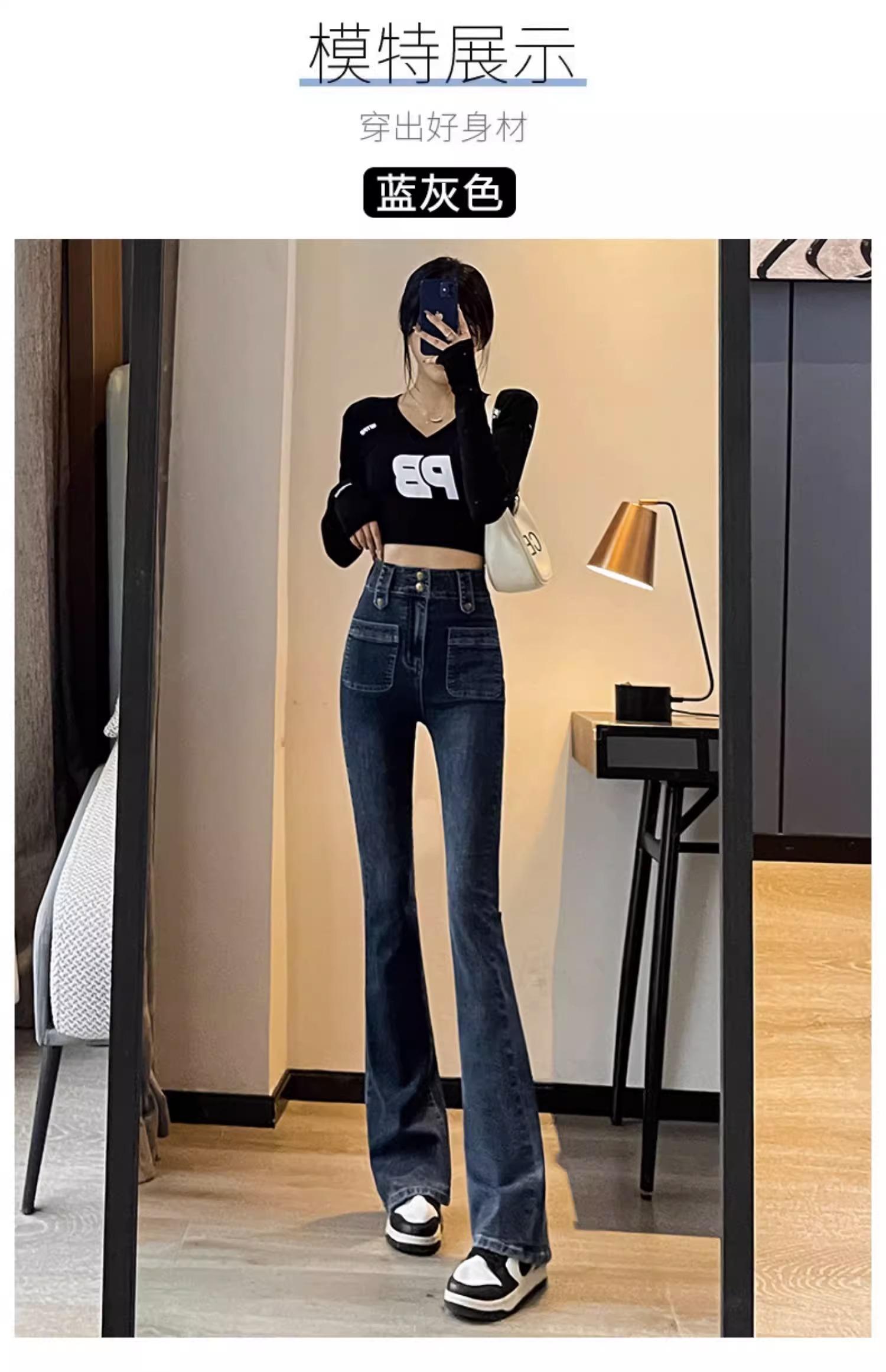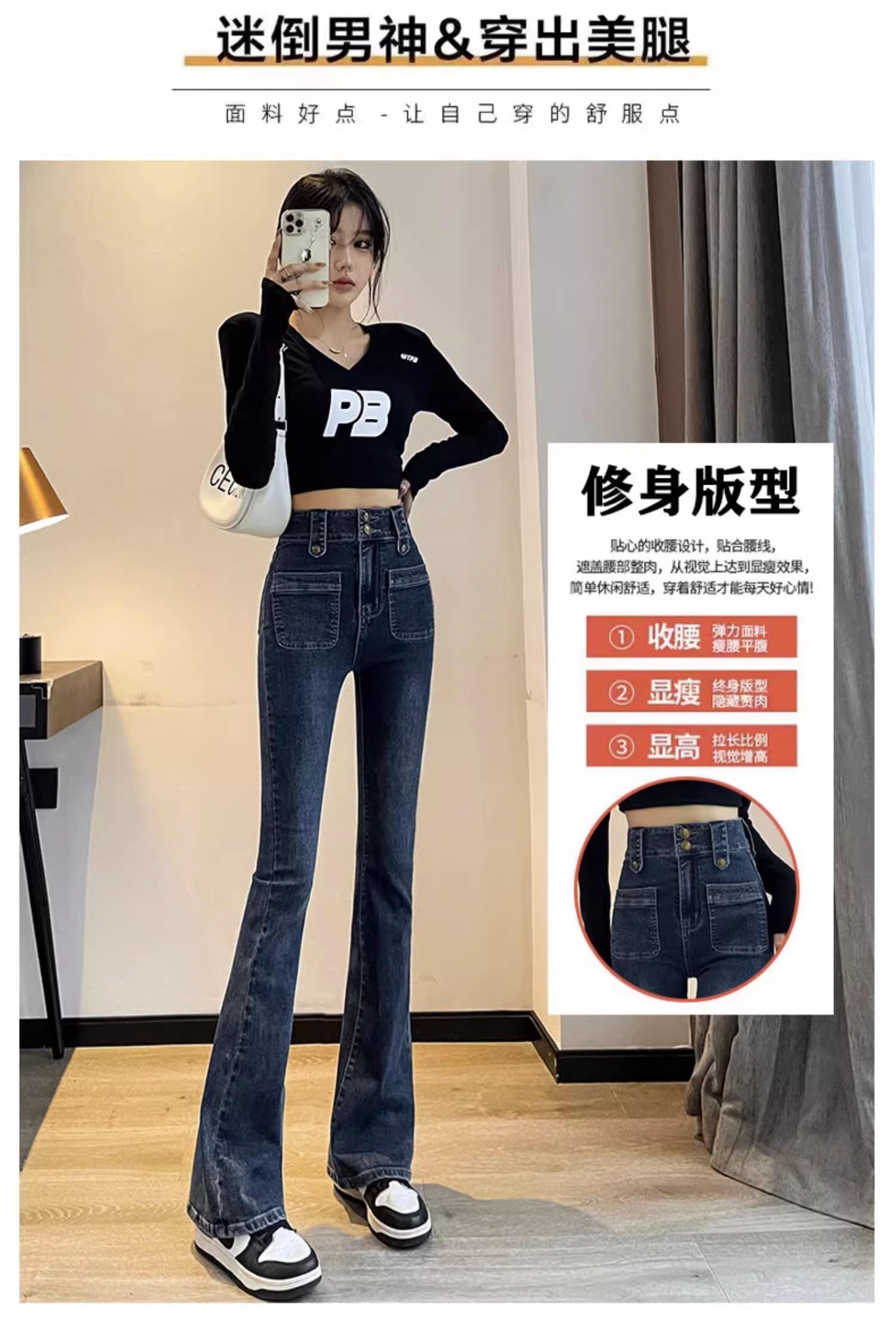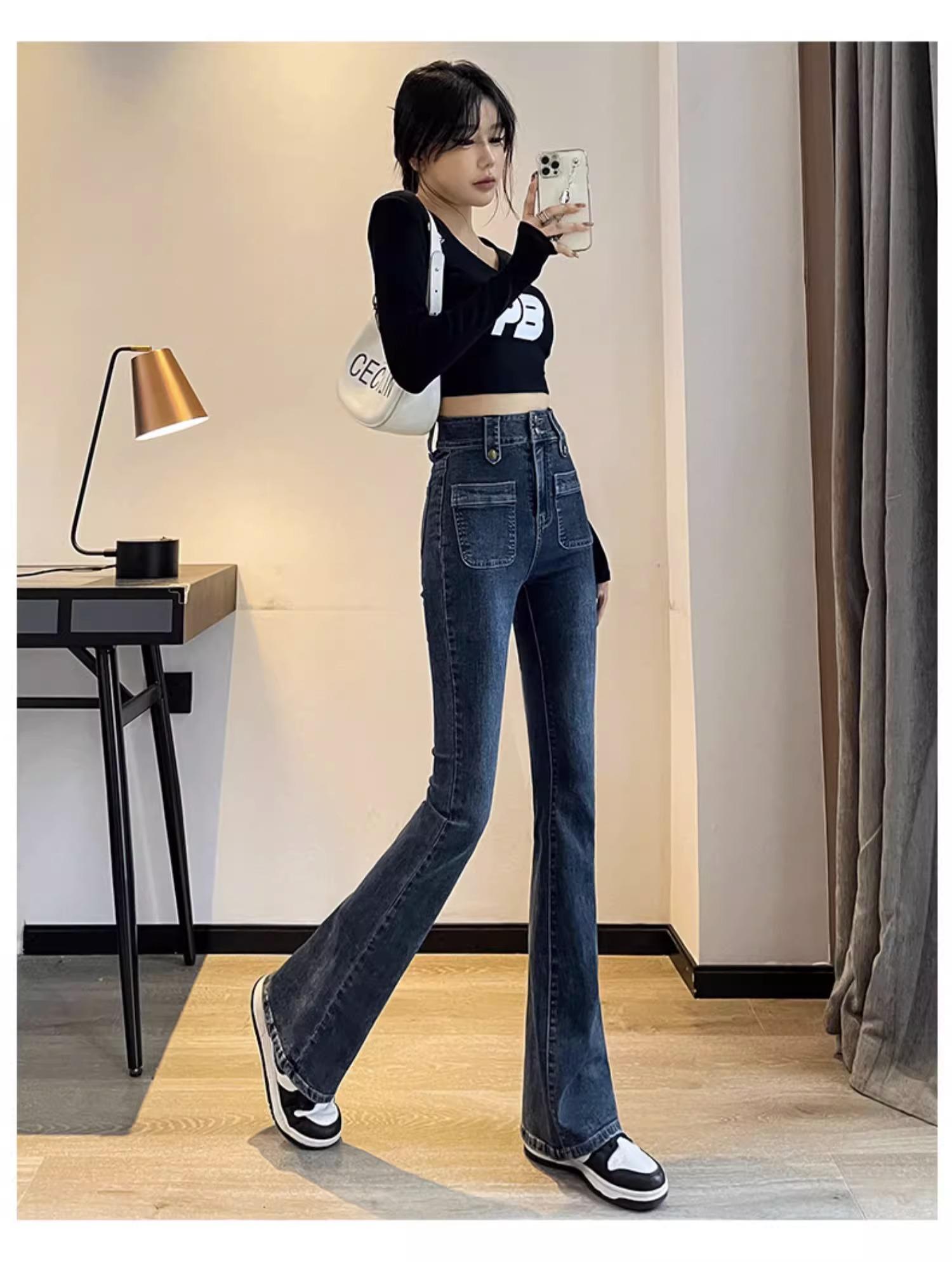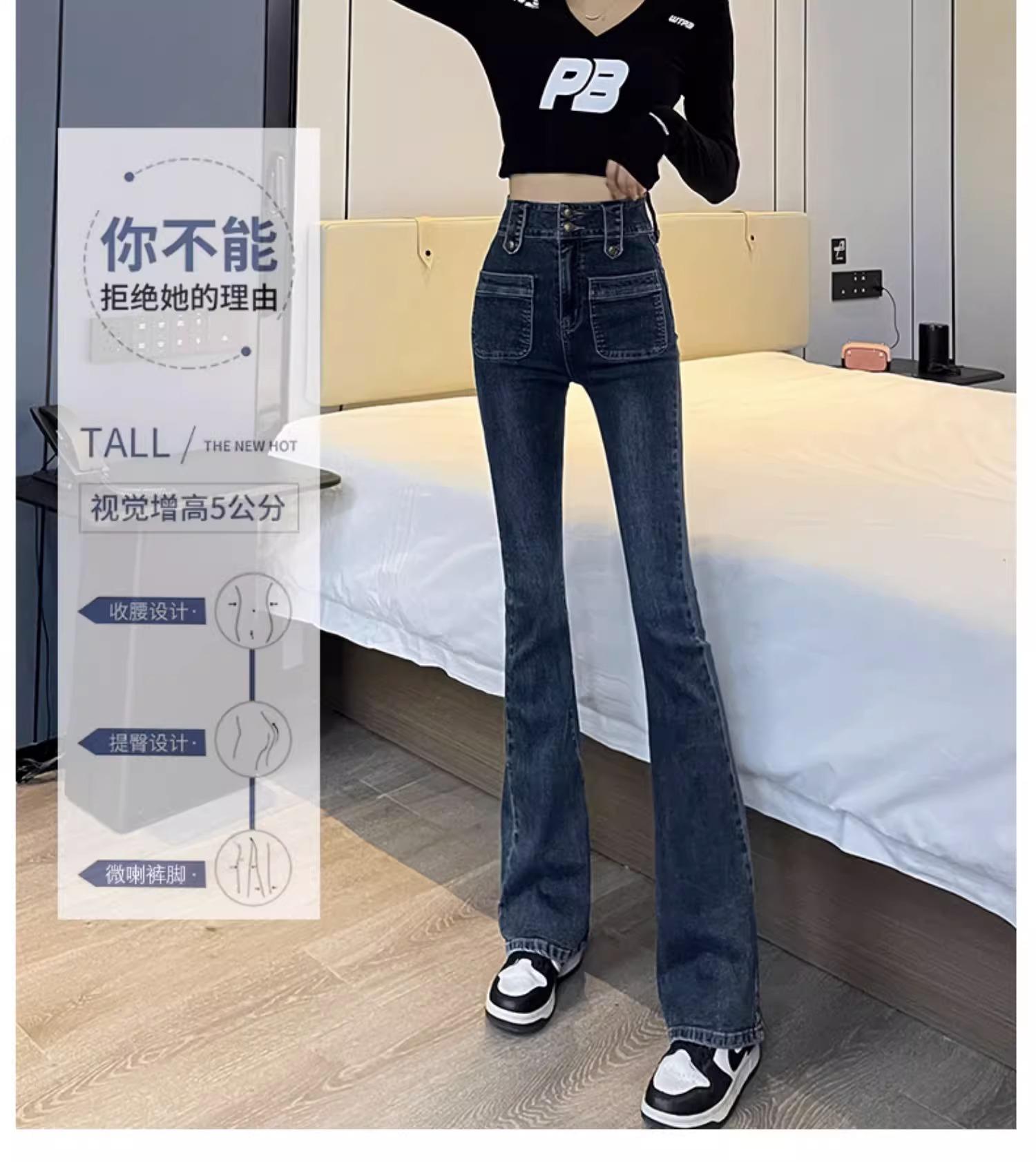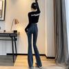 Pantalones vaqueros ajustados para mujer, estilo americano, de cintura alta, con diseño de otoño, con sensación de herradura acampanada, de estilo Daddy.