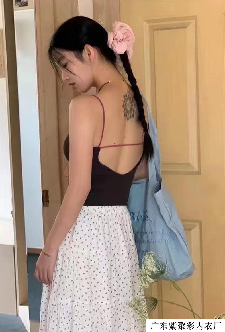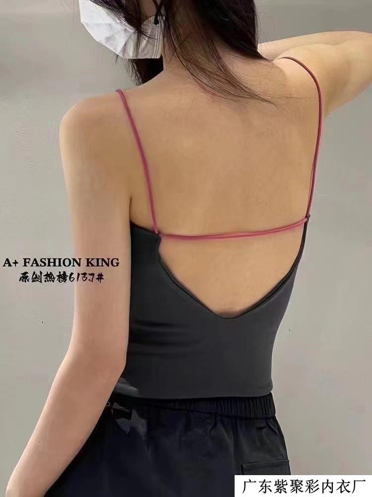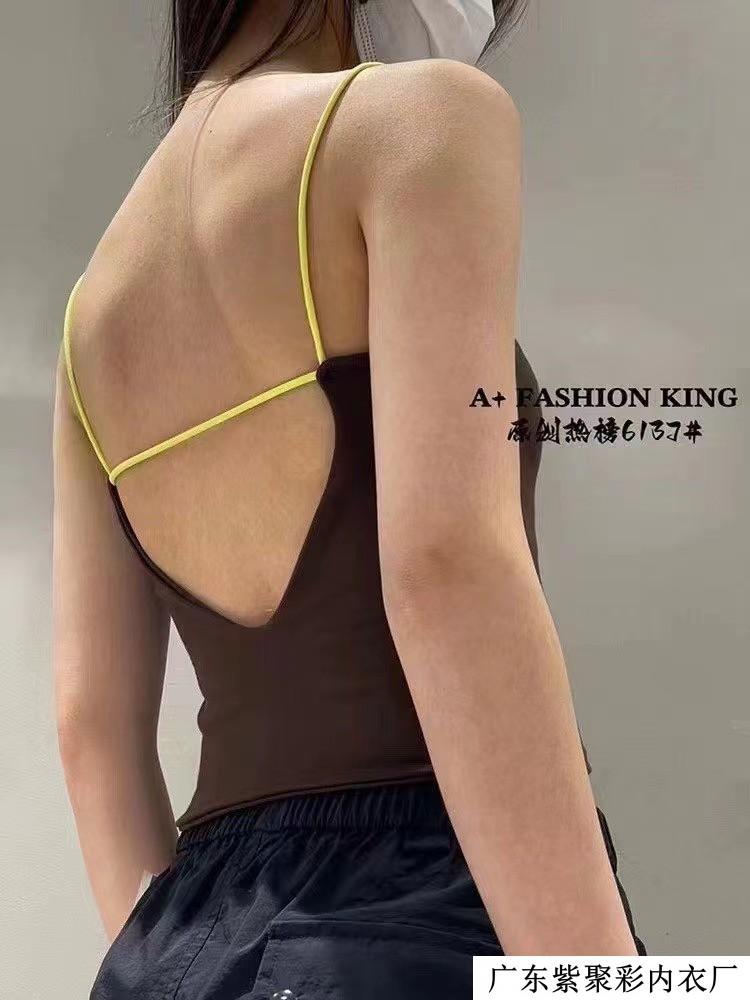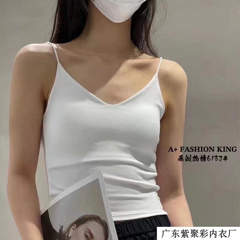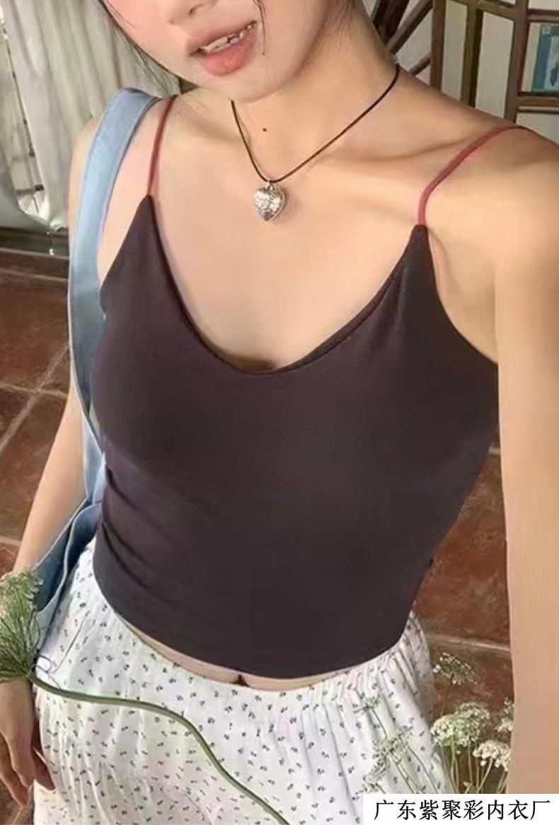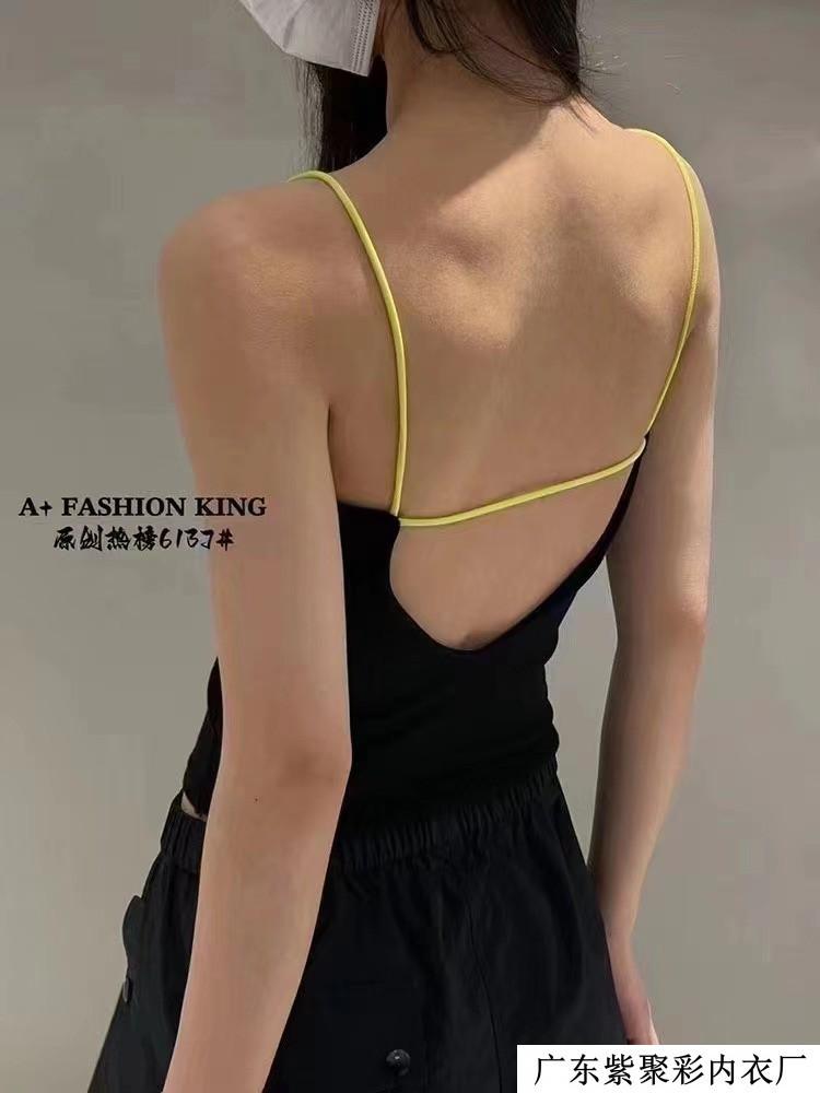 Chaleco de verano nuevo con escote en V, sexy, de algodón puro, de una pieza, con tirantes en la espalda y almohadilla para el pecho, con colores contrastantes