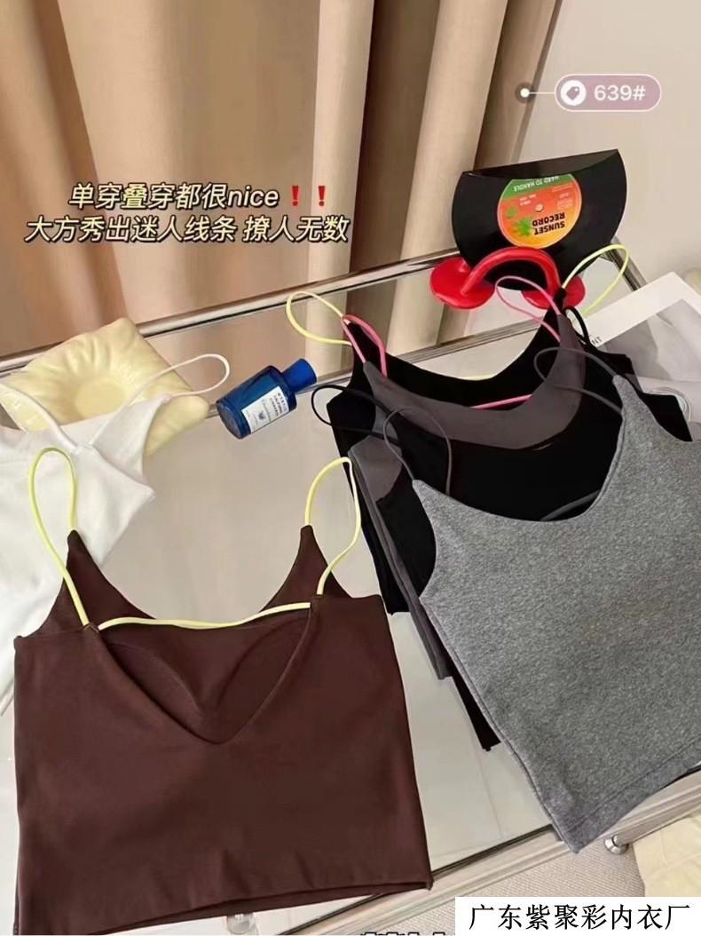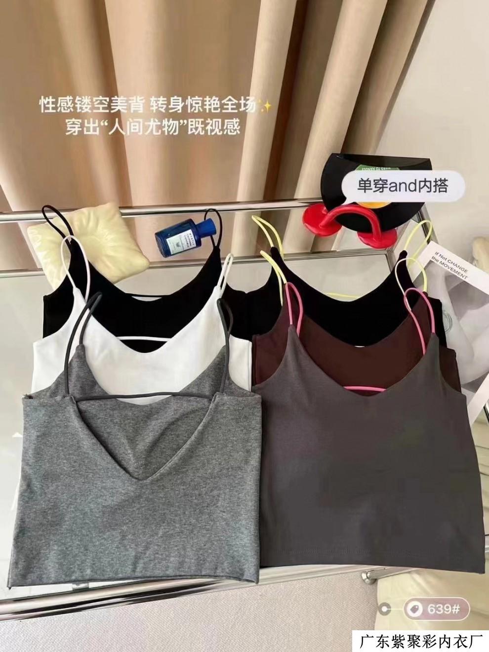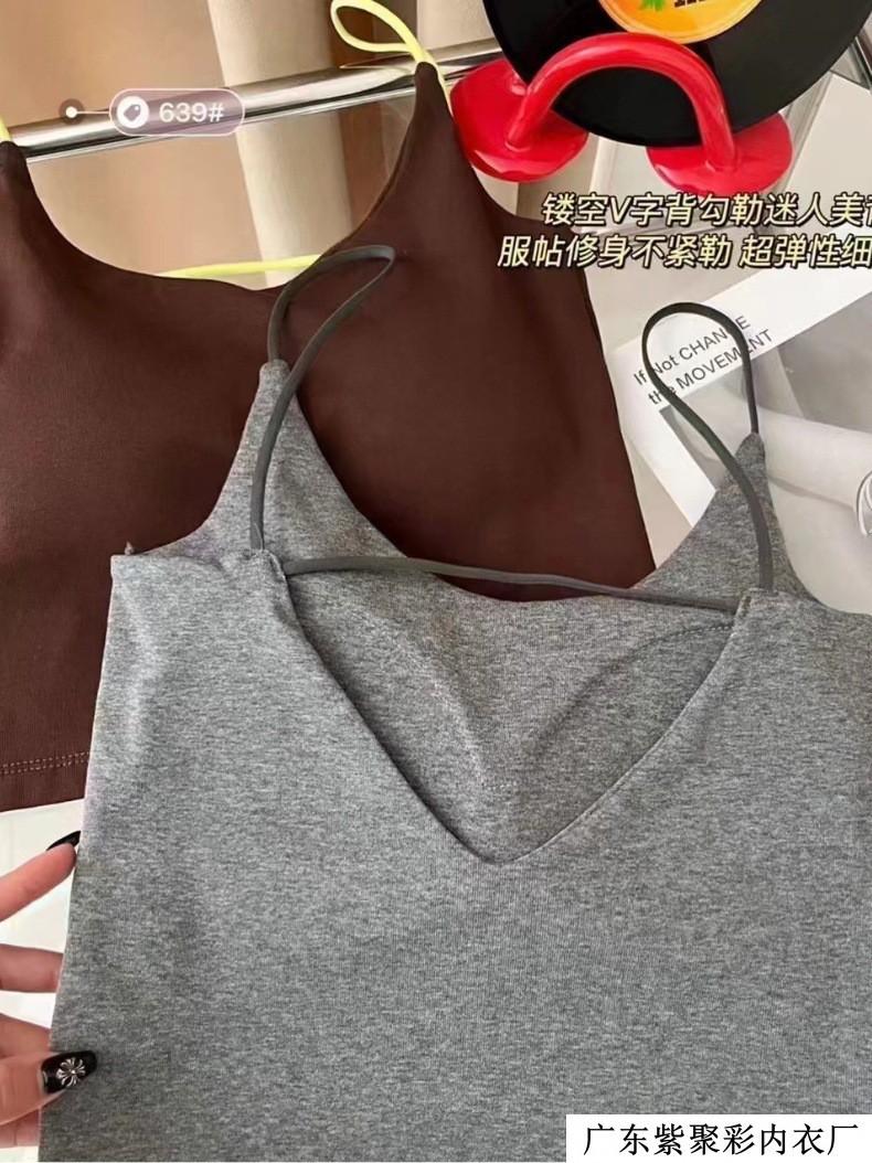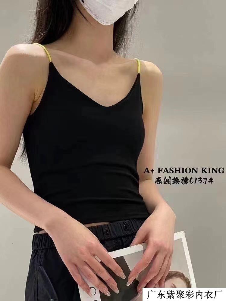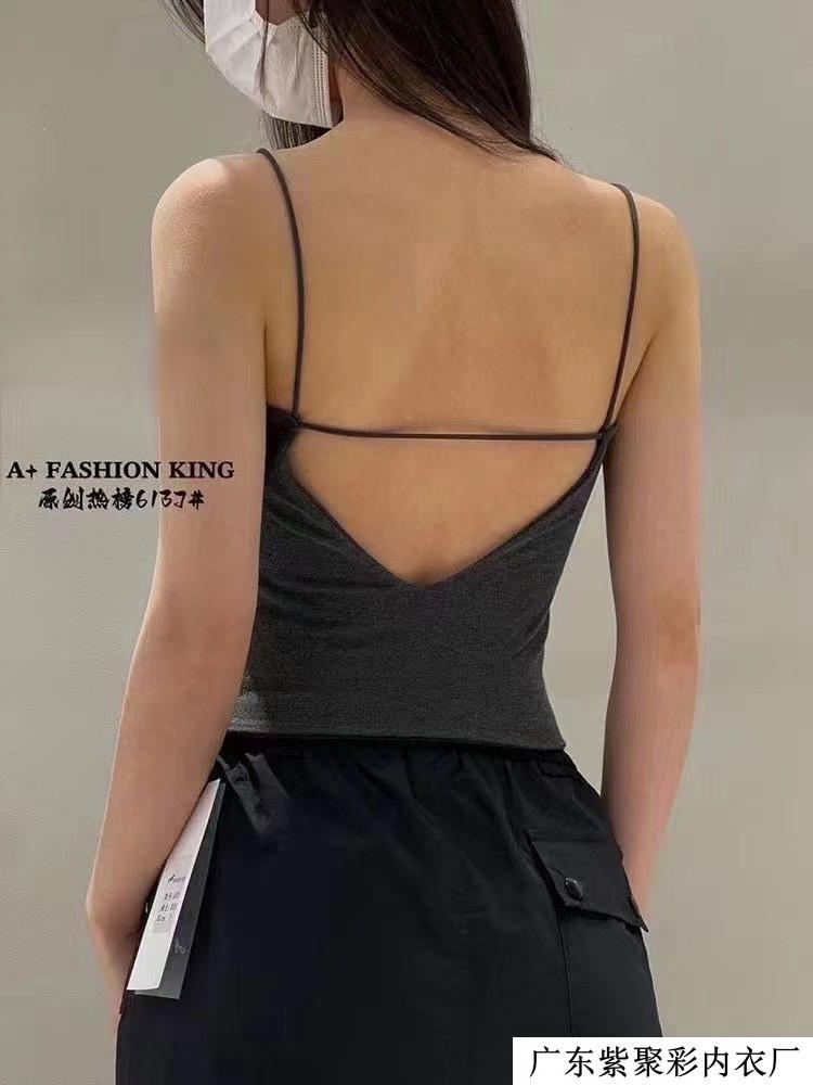 Chaleco de verano nuevo con escote en V, sexy, de algodón puro, de una pieza, con tirantes en la espalda y almohadilla para el pecho, con colores contrastantes