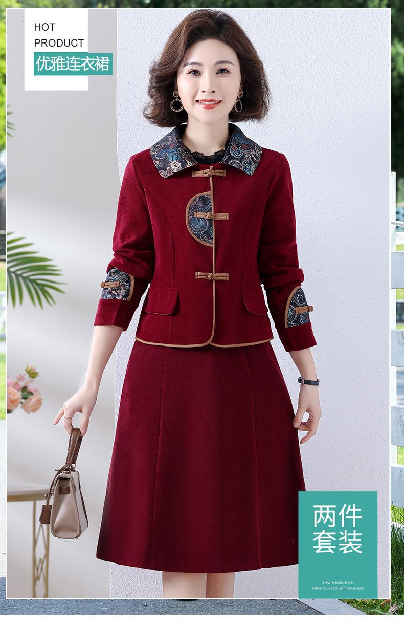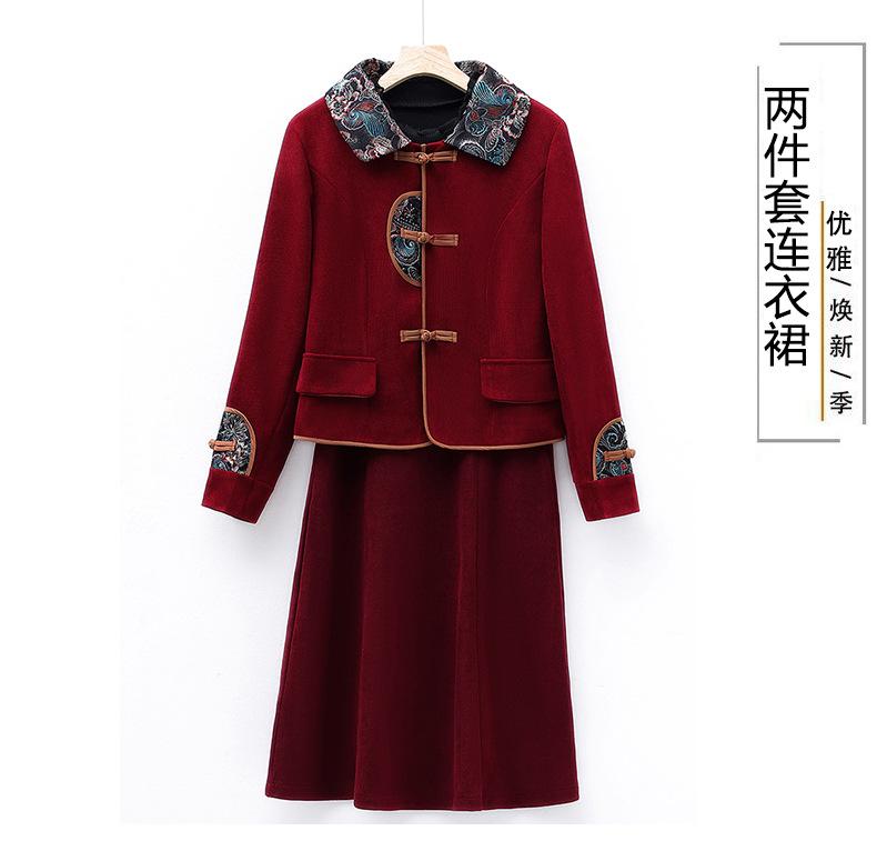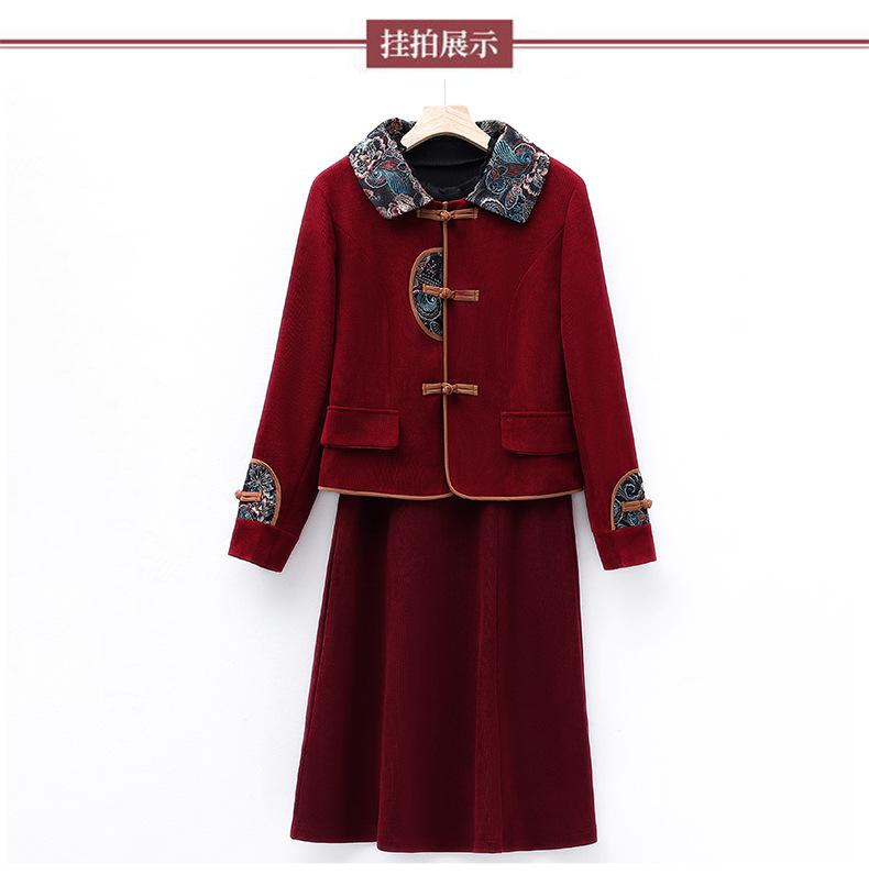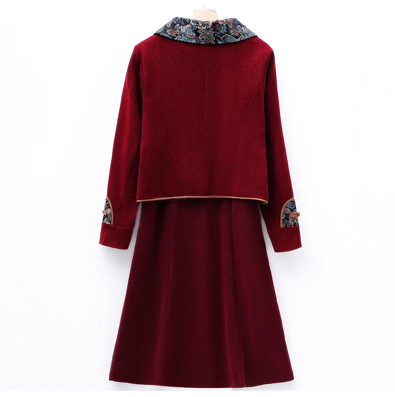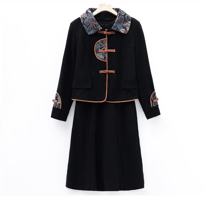 Chaqueta de manga larga estilo chino retro, moda occidental, conjunto de vestido de primavera y otoño, estilo étnico, elegante conjunto de dos piezas para mujer