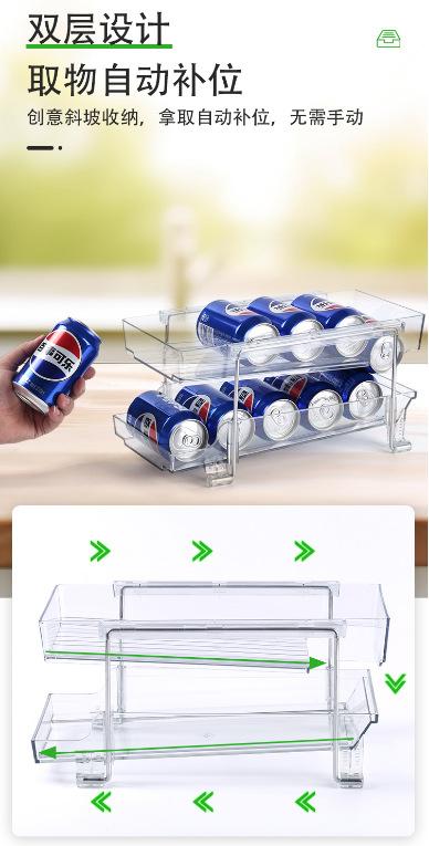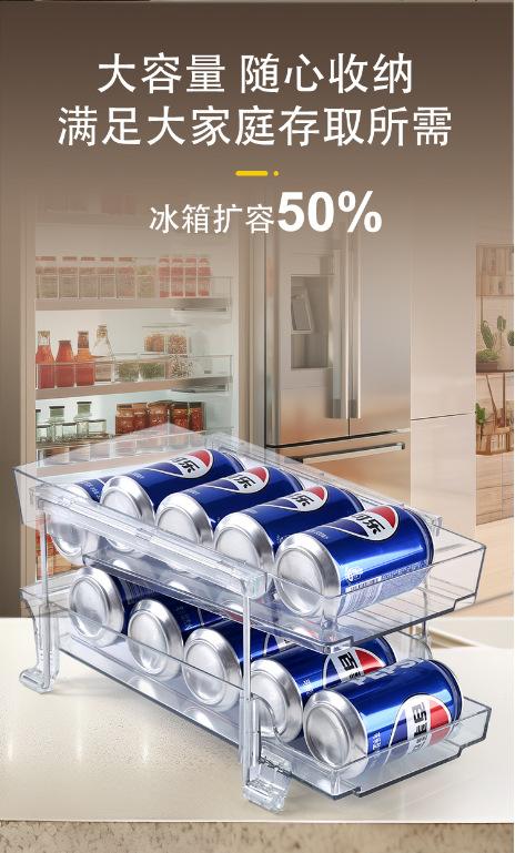 Caja de Almacenamiento para Refrigerador de Doble Capa Estante de Almacenamiento Caja de Almacenamiento Estante de Almacenamiento de Pie Cajón Estante Rodante para Bebidas Ahorro de Espacio