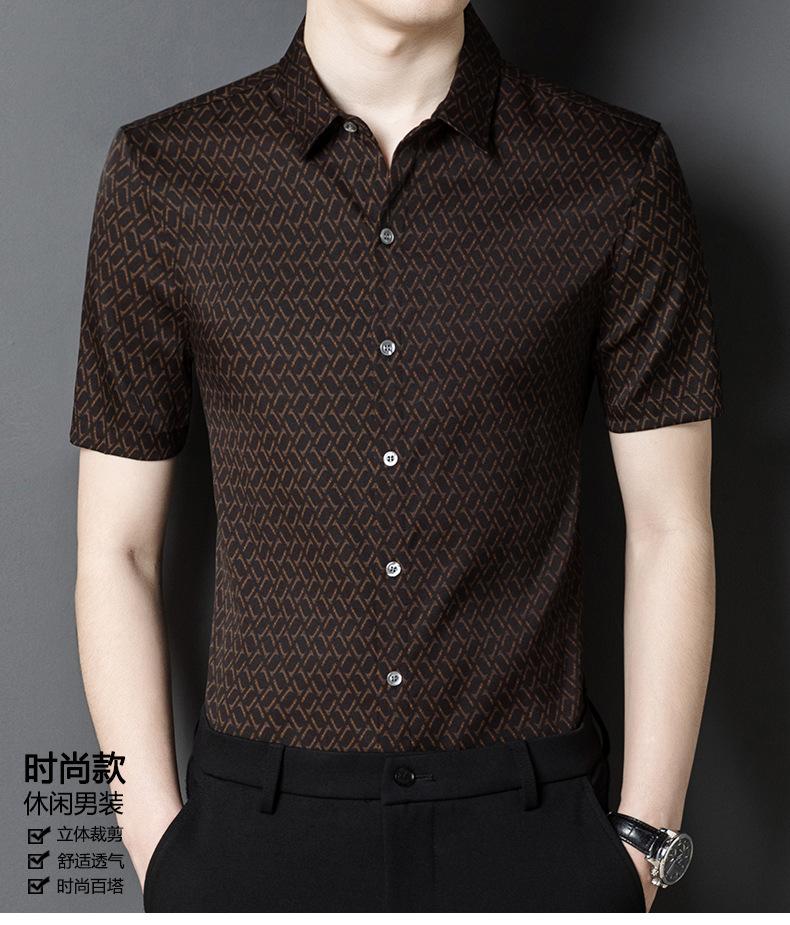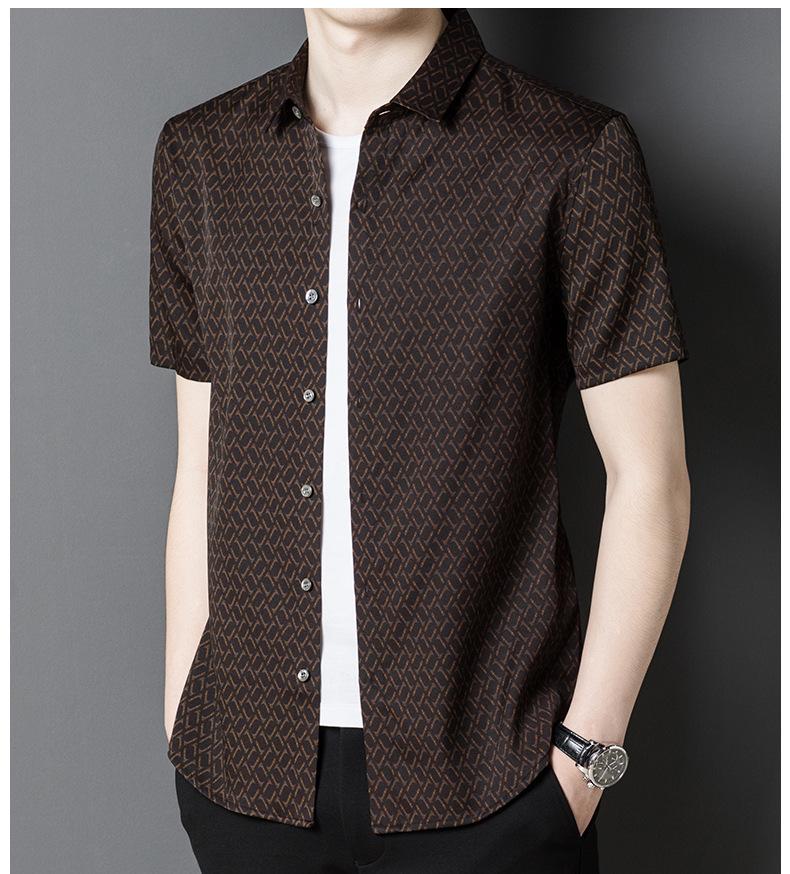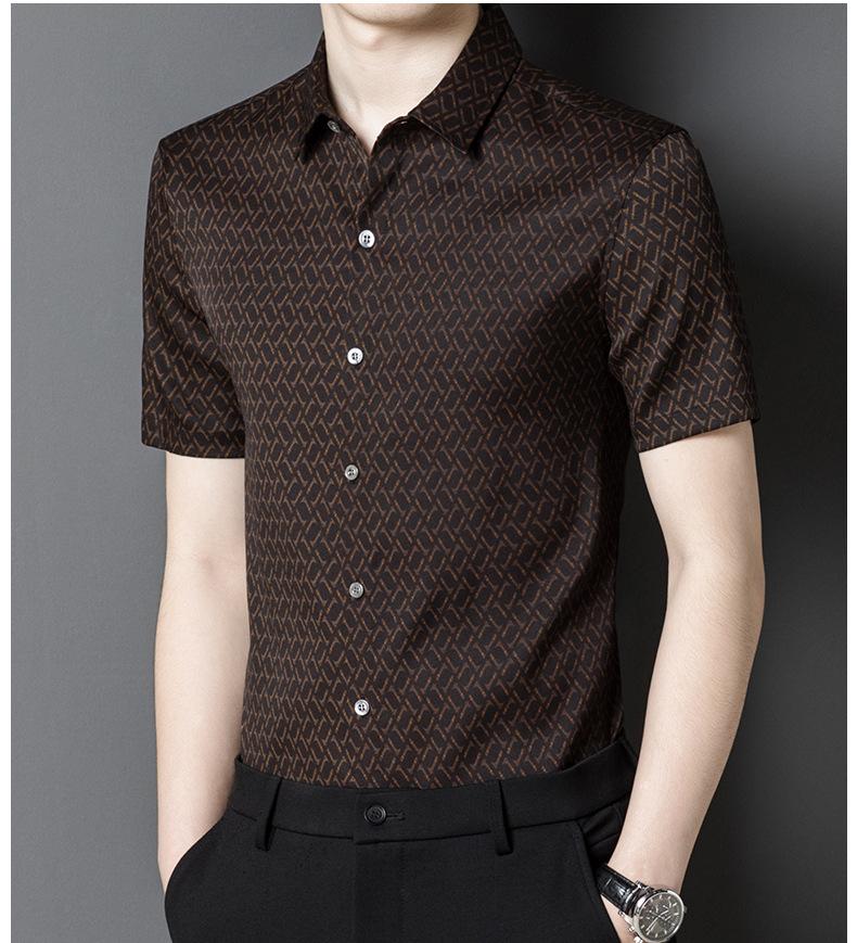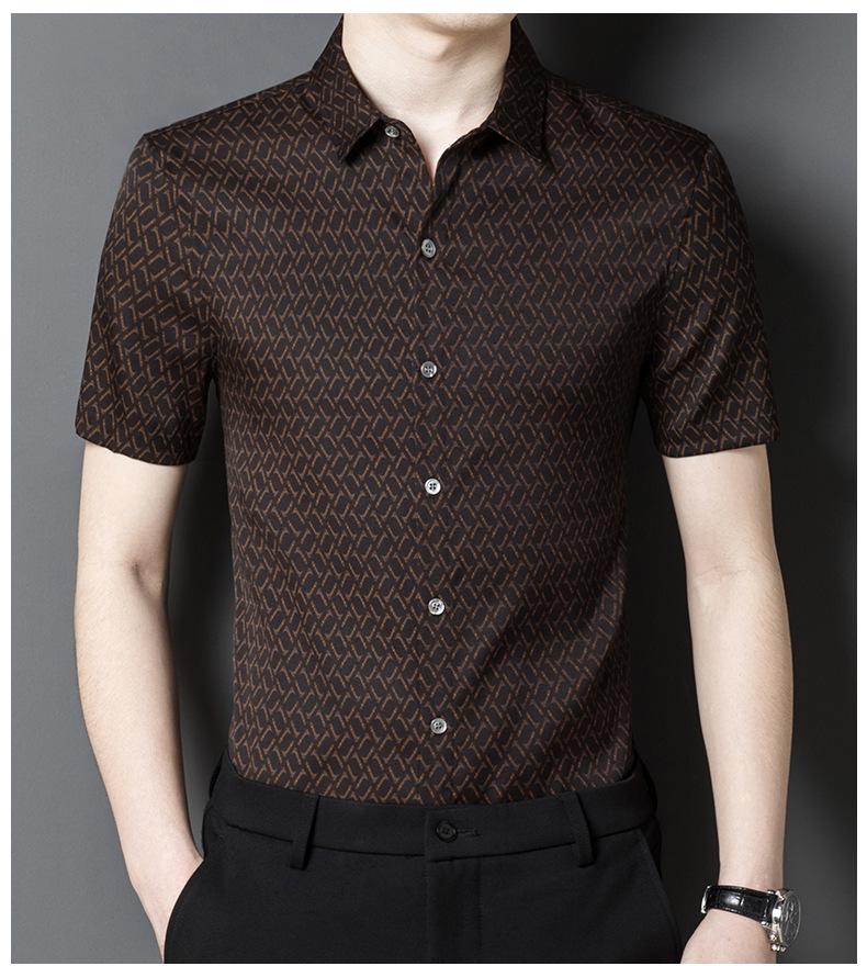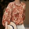 [Hilo Nube Roja] 92% Seda de Morera Verano Casual Camisa de Flores Seda Pesada Camisa de Satén de Seda para Jóvenes y Personas de Mediana Edad
