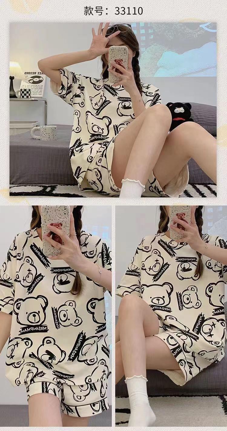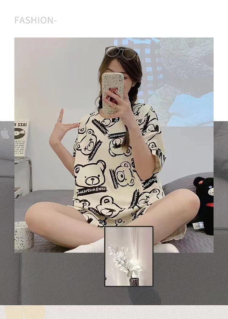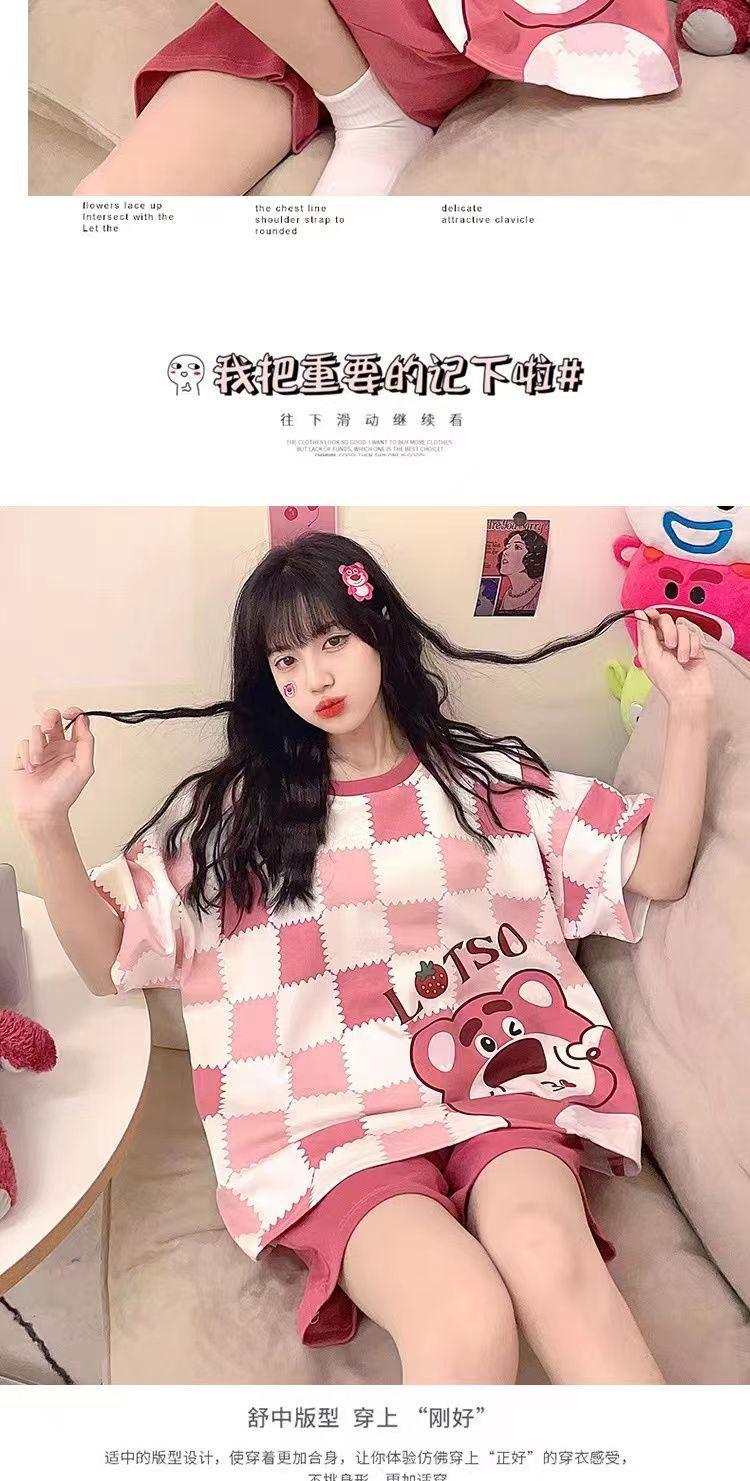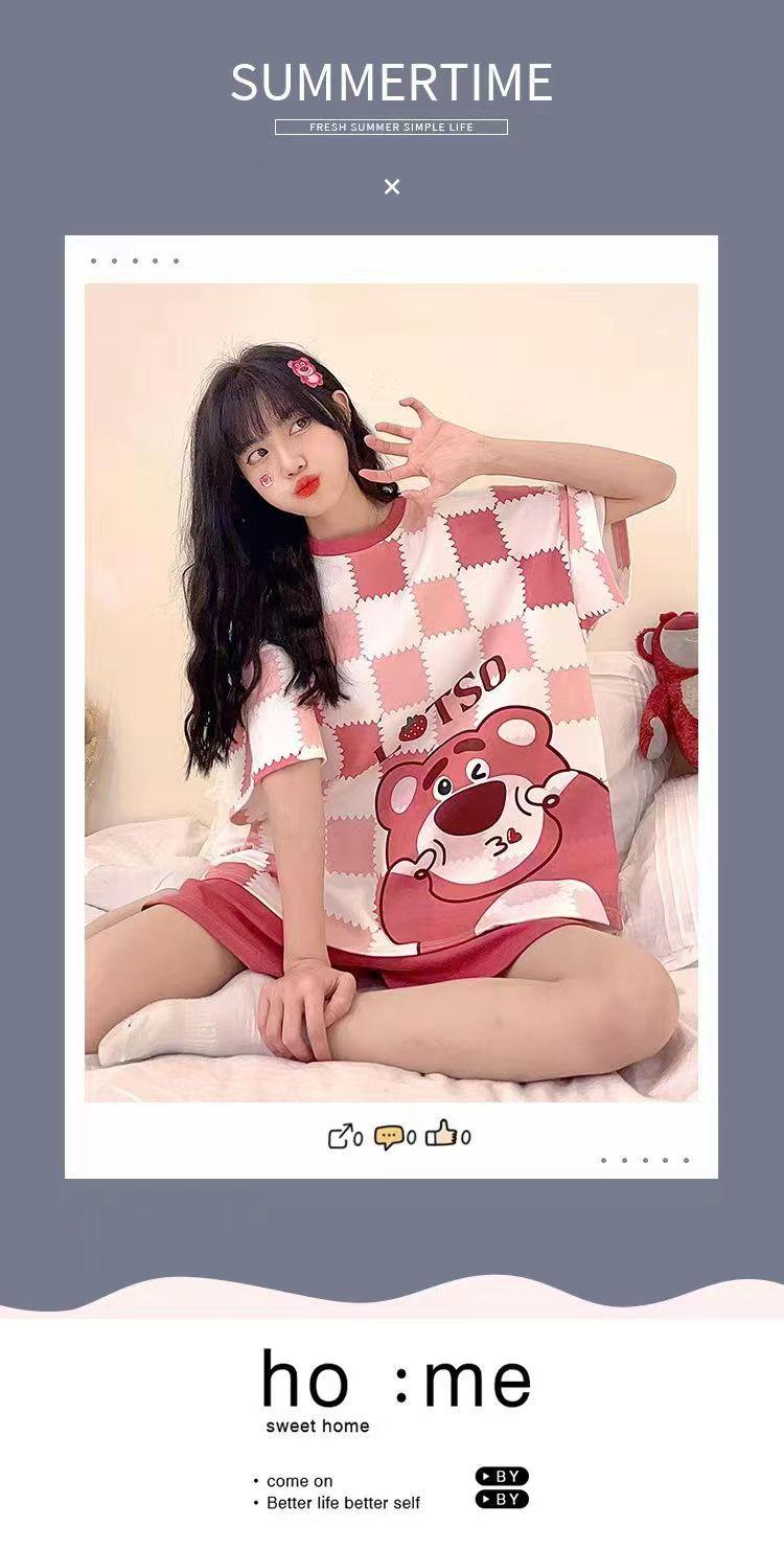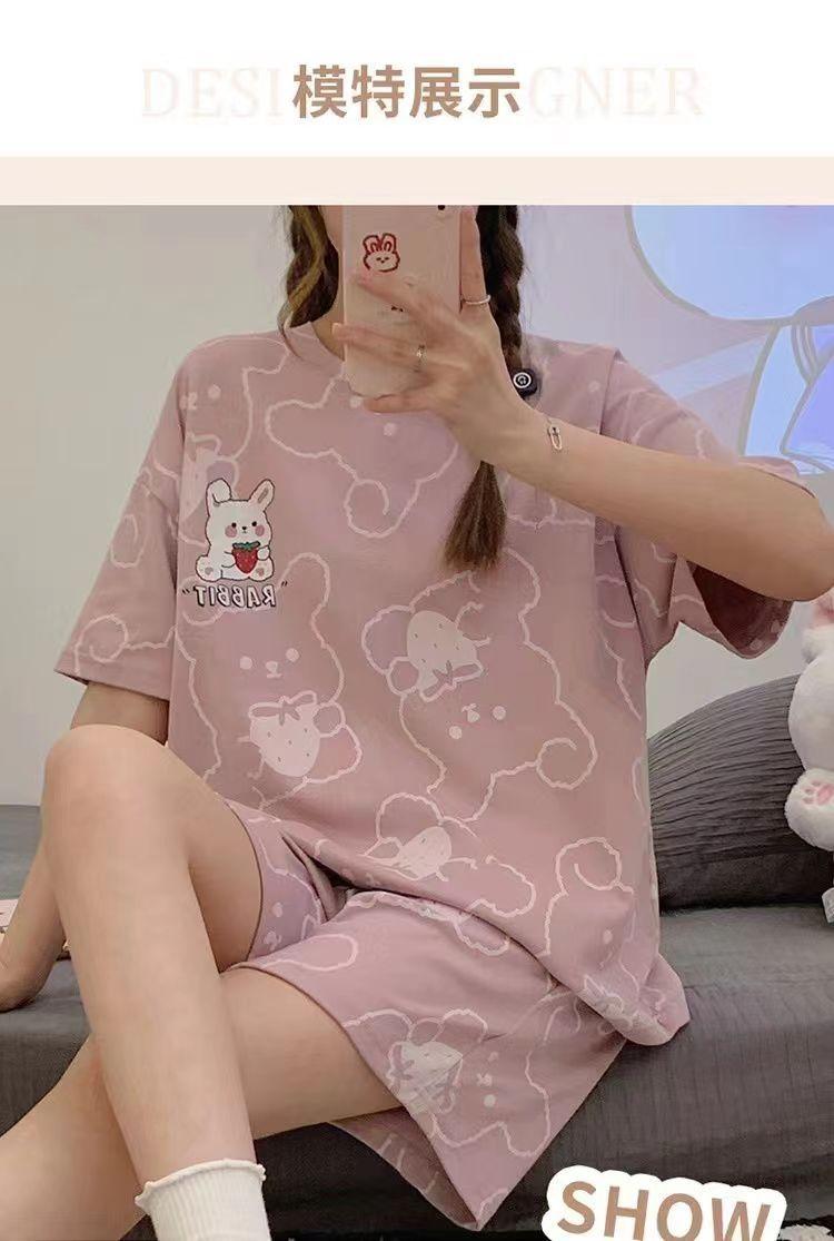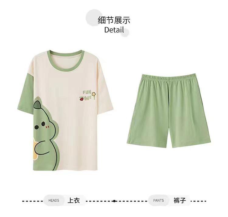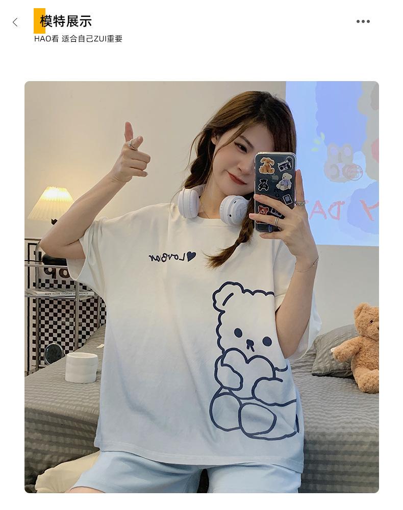 Pijamas de Estilo Nuevo para Mujer Verano Set de Pantalones Cortos de Manga Corta Estilo Coreano Estudiante Chica Gorda Dulce Lindo Dibujo Animado Ropa de Casa para Dama