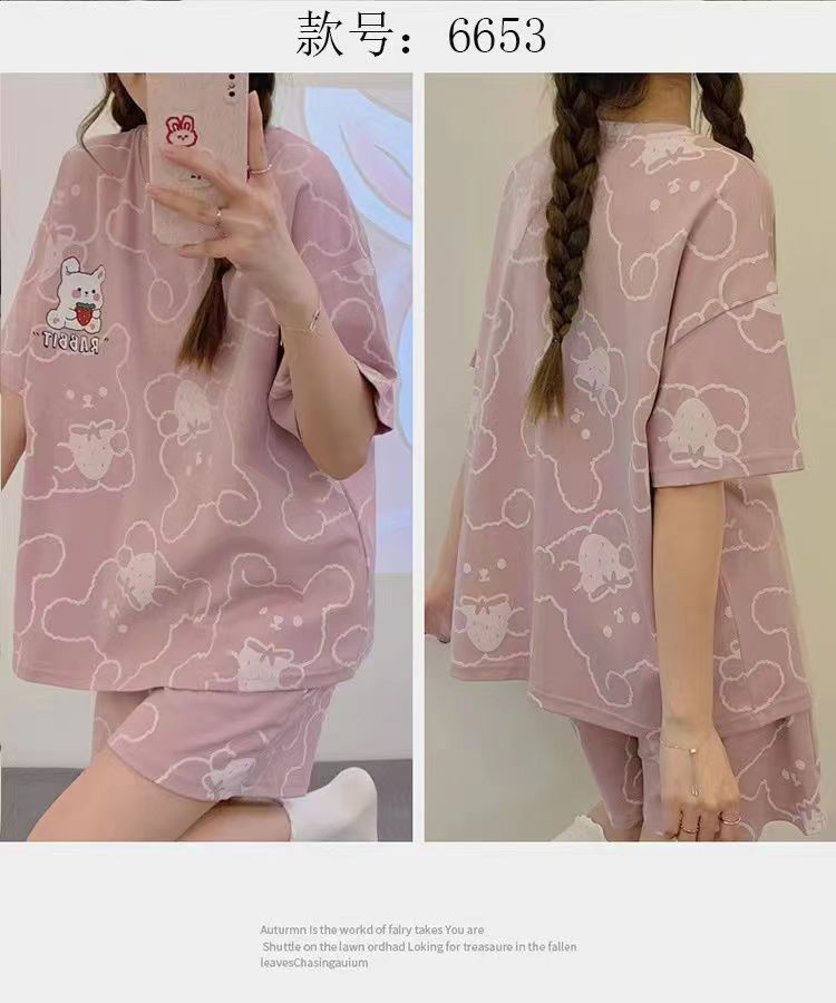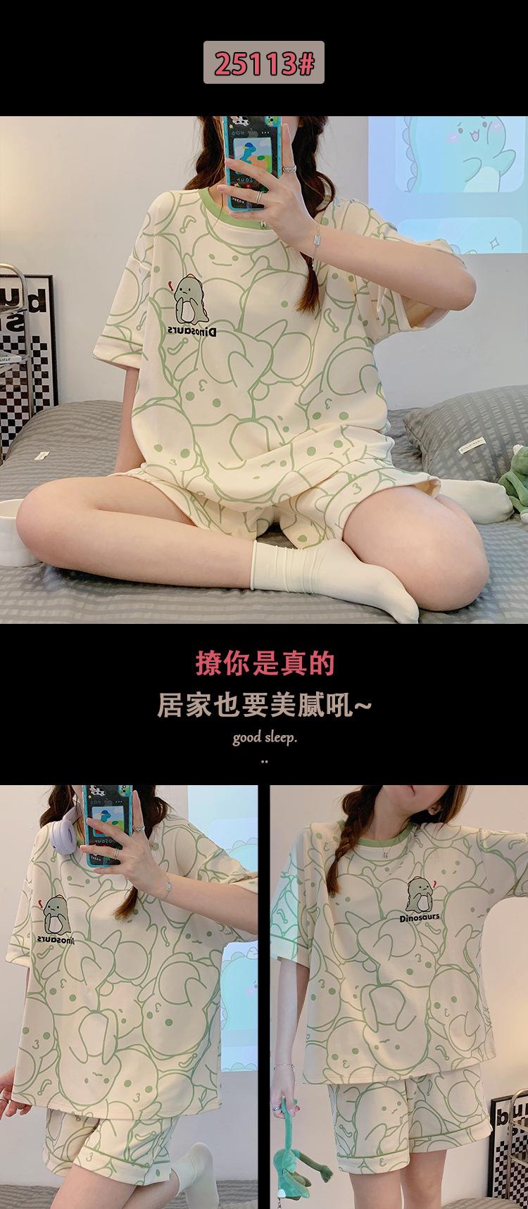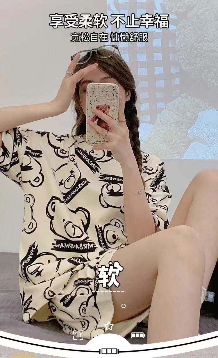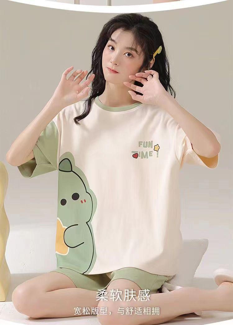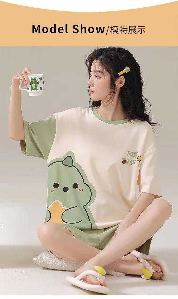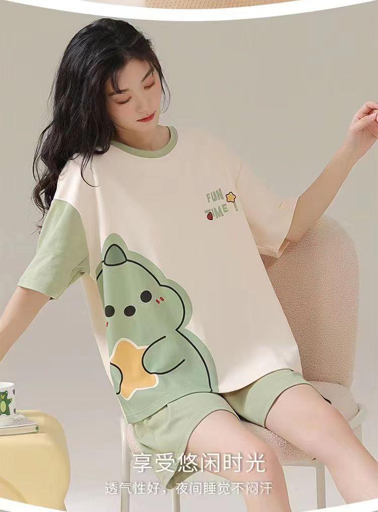 Pijamas de Estilo Nuevo para Mujer Verano Set de Pantalones Cortos de Manga Corta Estilo Coreano Estudiante Chica Gorda Dulce Lindo Dibujo Animado Ropa de Casa para Dama