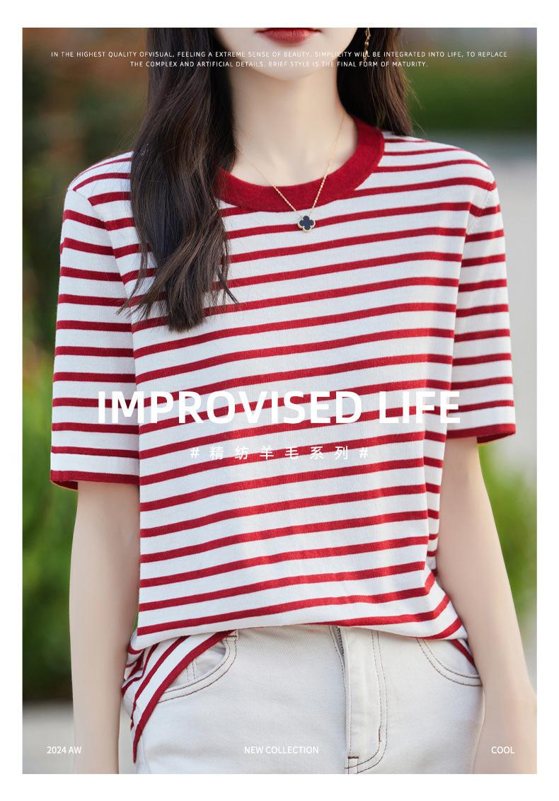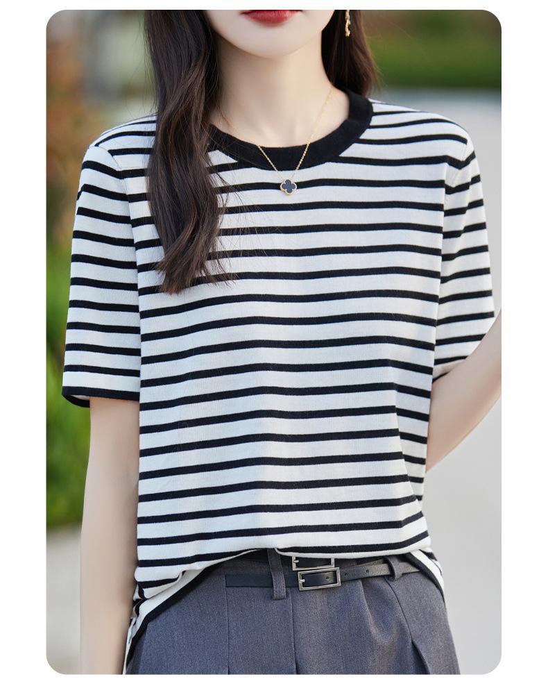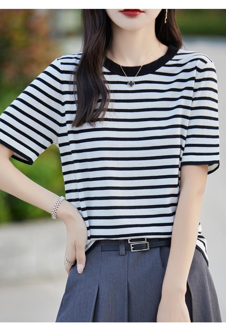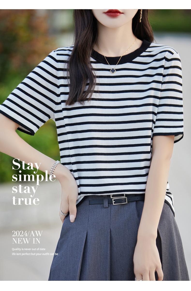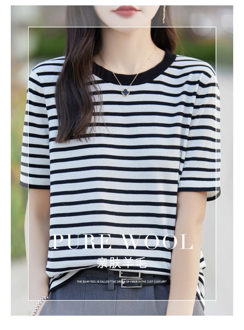 | Camisa básica de mujer, ropa interior, primavera 2024, nuevo suéter fino a rayas blancas y negras, top de manga larga súper elegante | ¥42 |