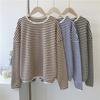 | Suéter de punto de color contrastante a rayas para mujer, mangas largas, cuello redondo, pulóver, corte entallado, suéter de lana sintética, prenda interior fina, top cálido | ¥45 |