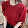 | Suéter de lana merino de nuevo estilo para otoño e invierno, suéter holgado de cuello redondo de manga larga de punto corto para mujer, chaqueta superior | ¥49 |