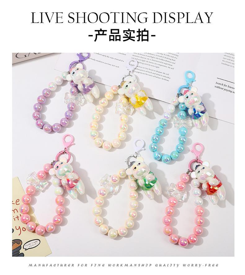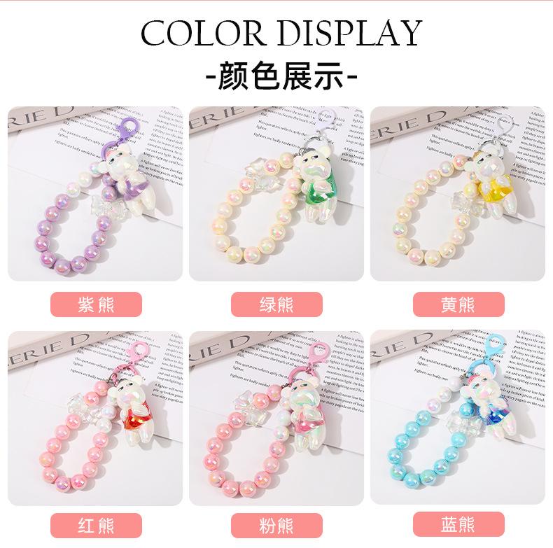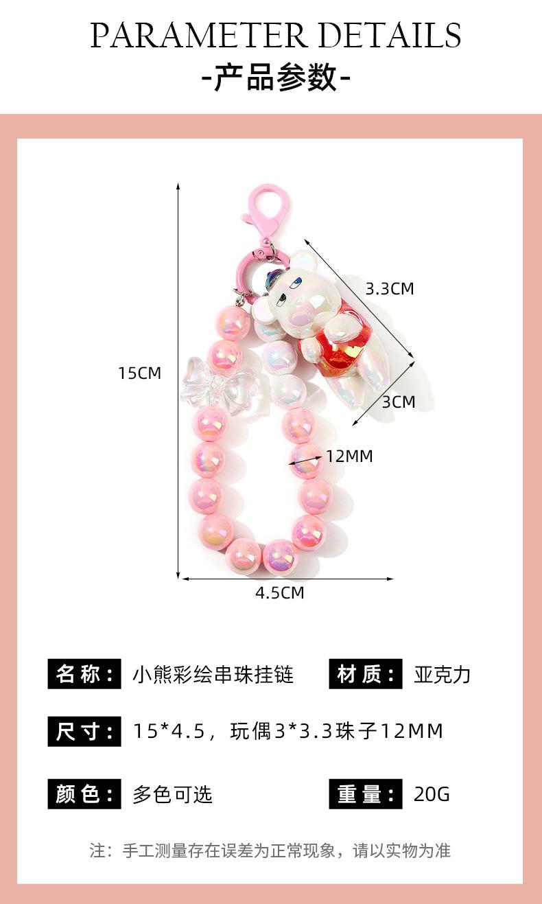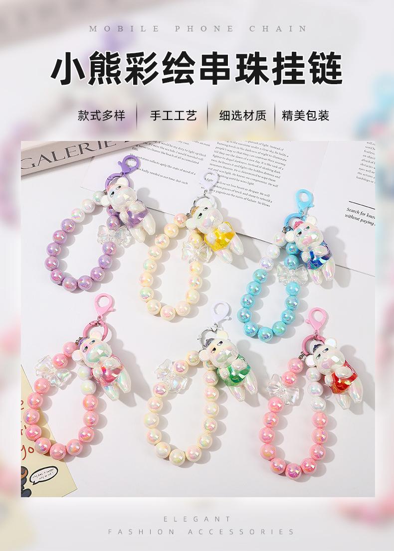 Cadena para teléfono móvil con cuentas de oso pintadas, dulce llavero para bolso de niña de color caramelo, accesorios colgantes, disponible al por mayor