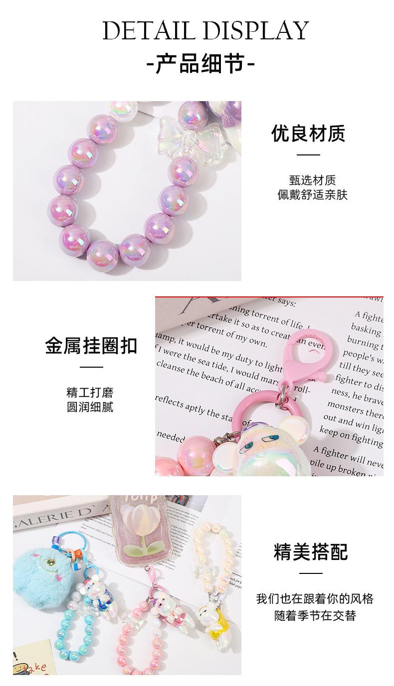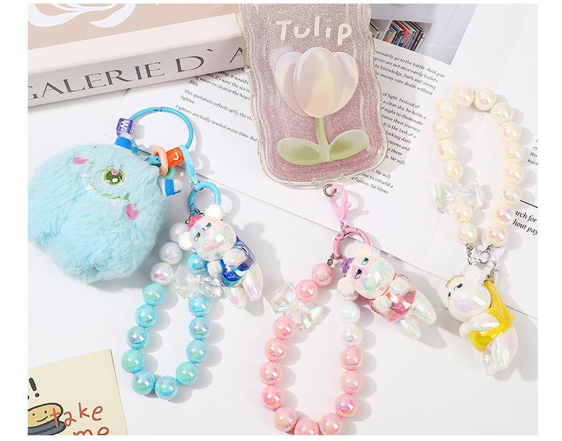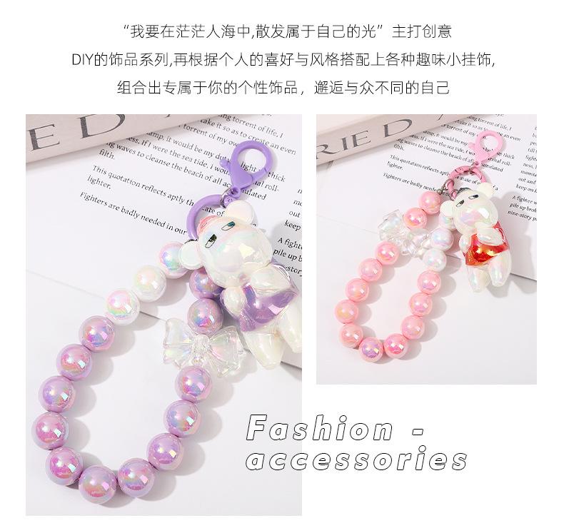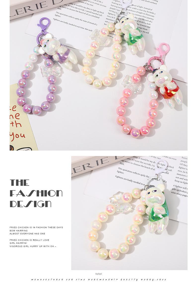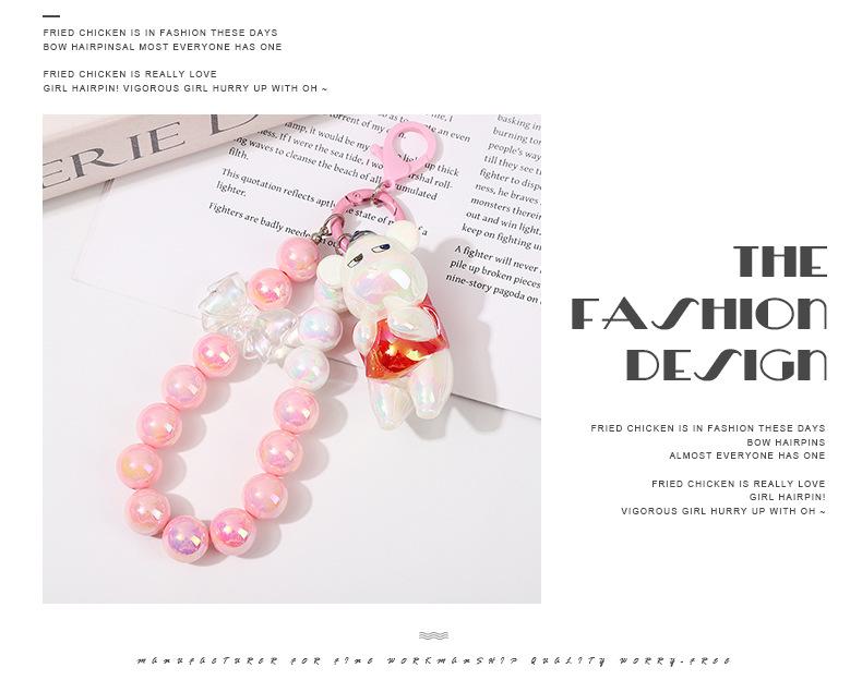 Cadena para teléfono móvil con cuentas de oso pintadas, dulce llavero para bolso de niña de color caramelo, accesorios colgantes, disponible al por mayor