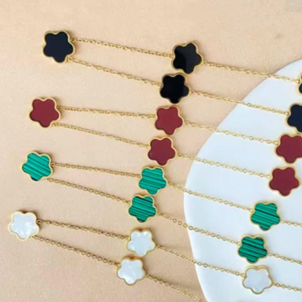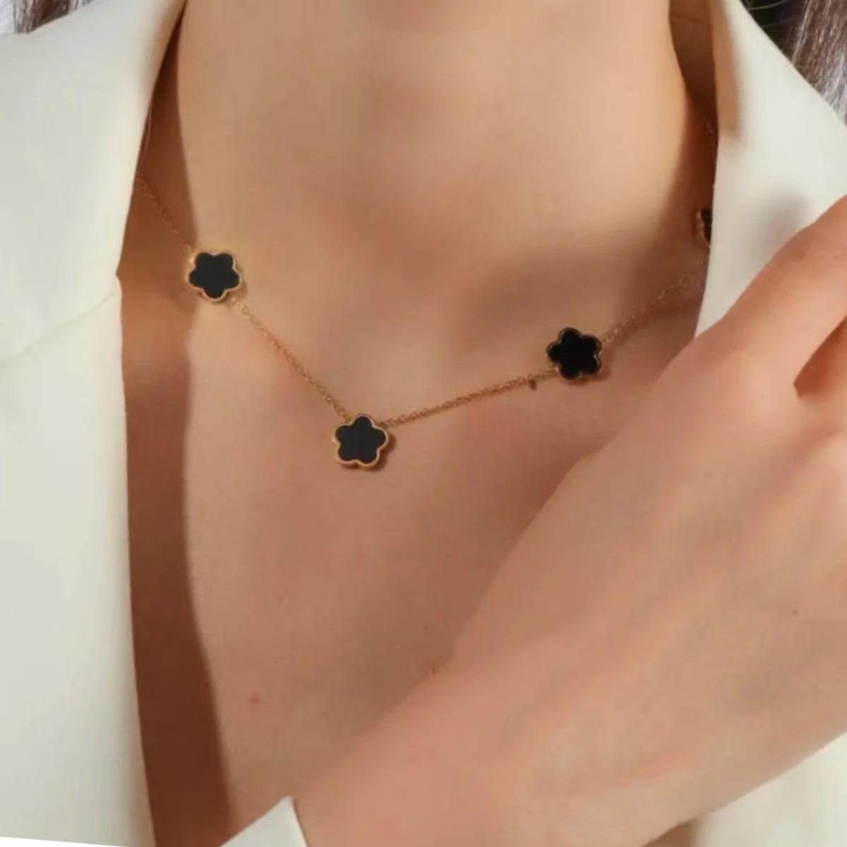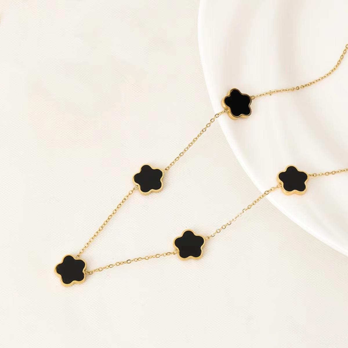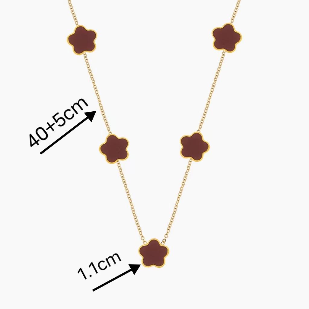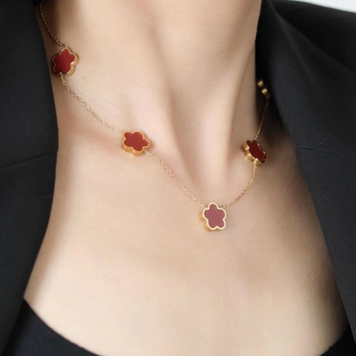 Collar de acero de titanio con flor de trébol de cinco hojas, colgante de ciruela de nicho para mujer, cadena de clavícula, temperamento de moda europea y americana, cuello de flor multicolor
