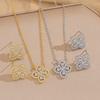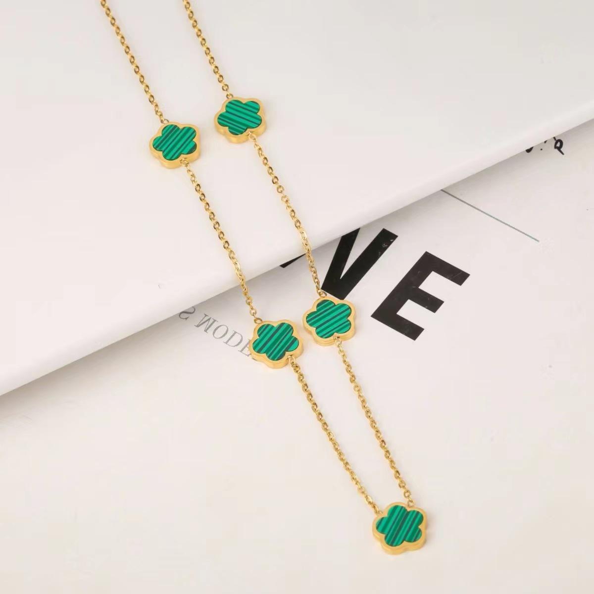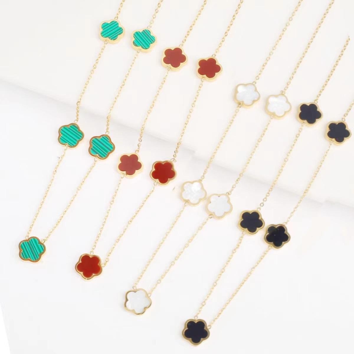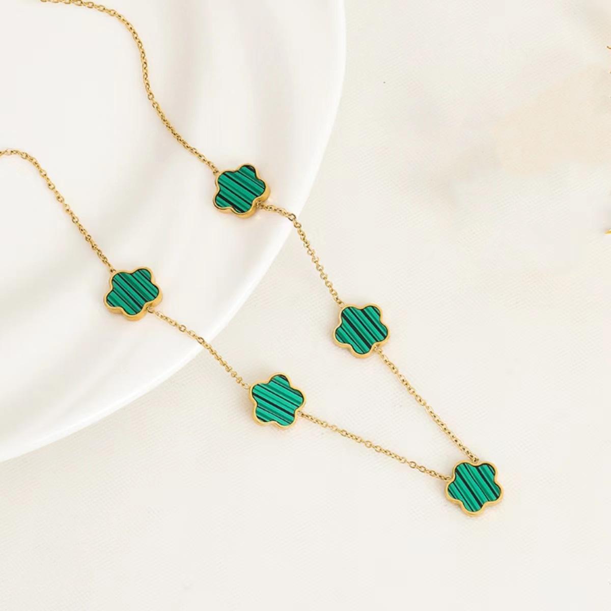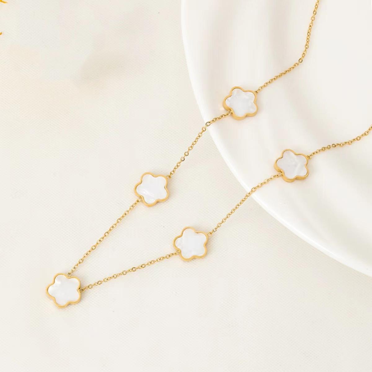 Collar de acero de titanio con flor de trébol de cinco hojas, colgante de ciruela de nicho para mujer, cadena de clavícula, temperamento de moda europea y americana, cuello de flor multicolor