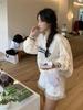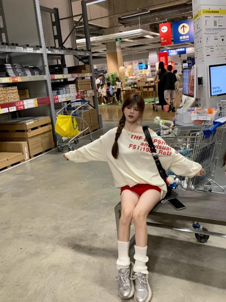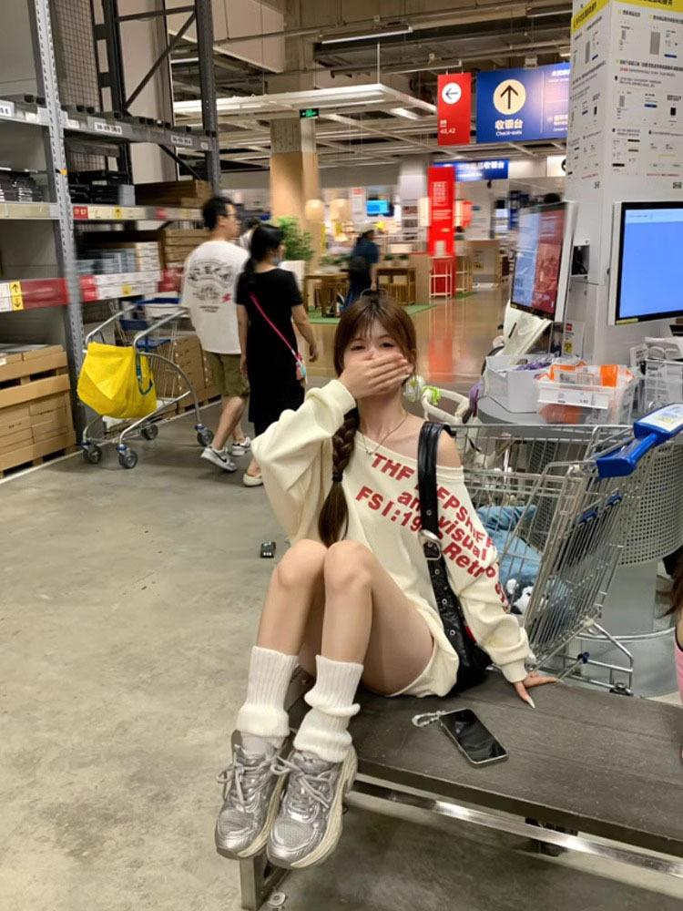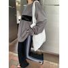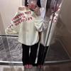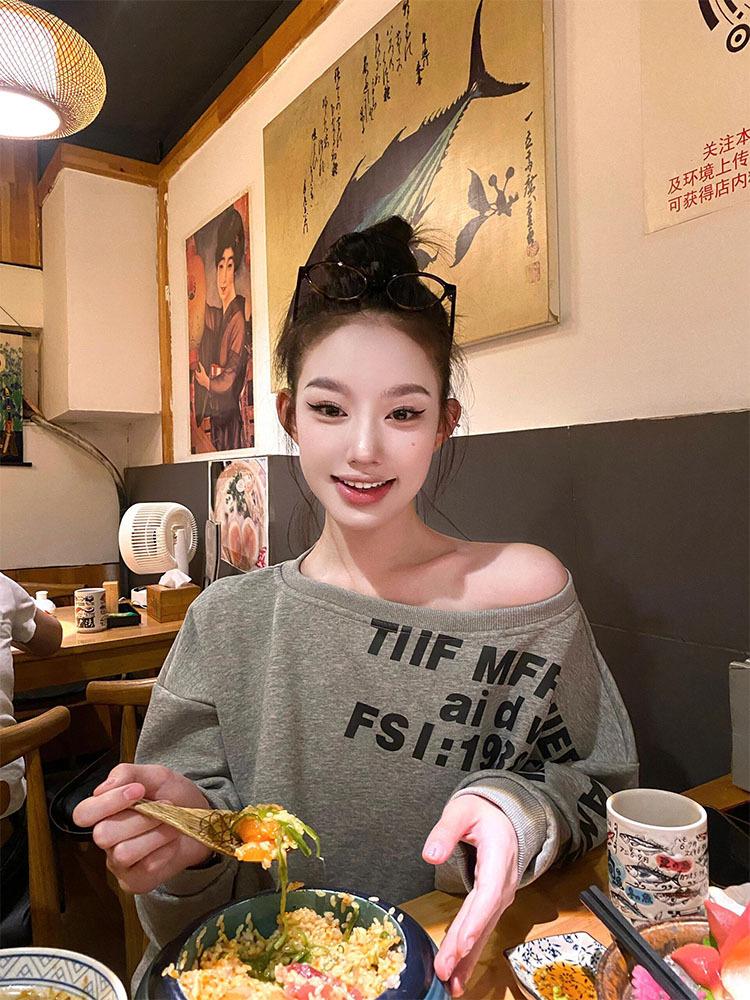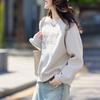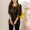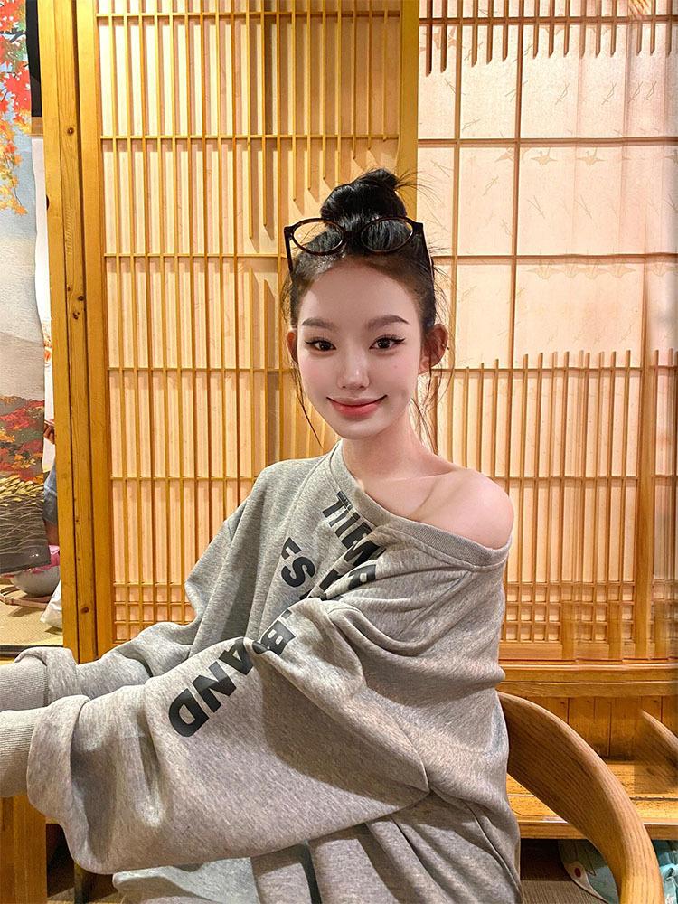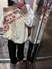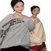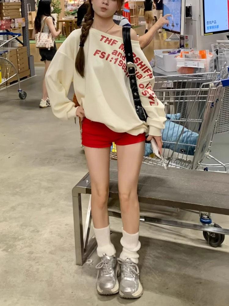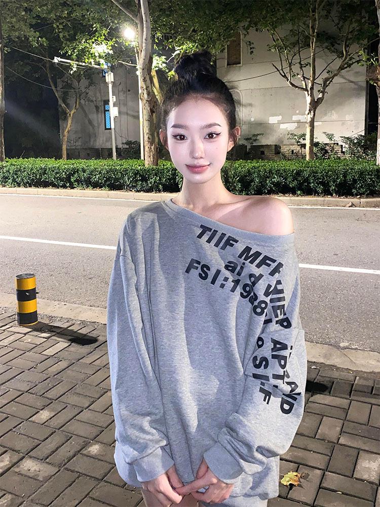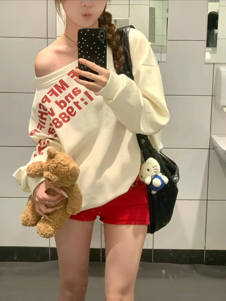 Sudadera con estampado de letras, cuello inclinado, hombros descubiertos, para mujer, primavera, otoño e invierno, estilo americano, estilo retro, holgada, de manga larga