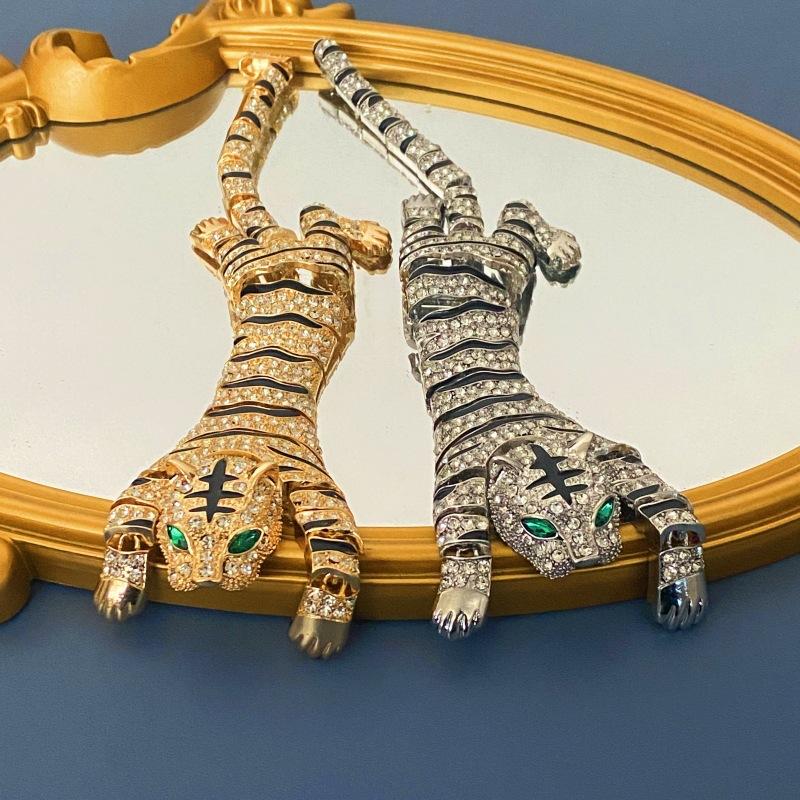 Joyería vintage Zhonggu industria pesada broche animal lujo con incrustaciones de diamantes hecho a mano goteo de aceite animal moda broche de tigre