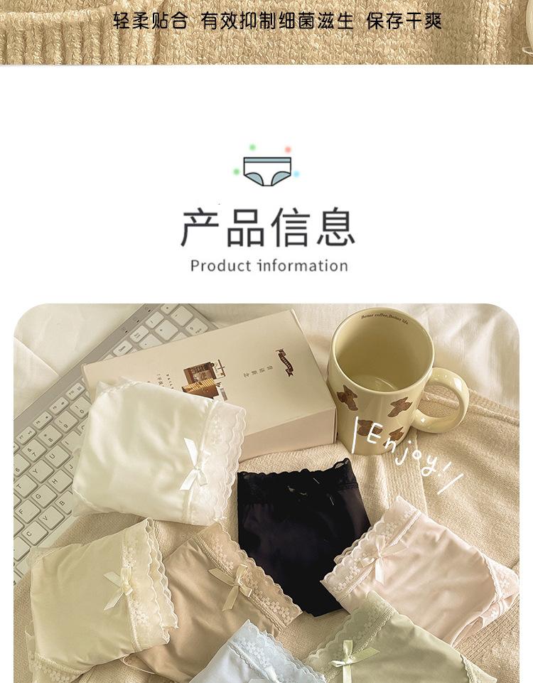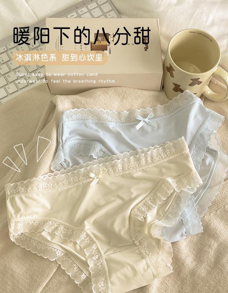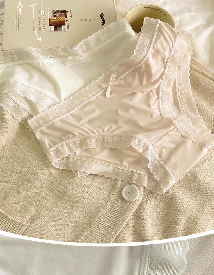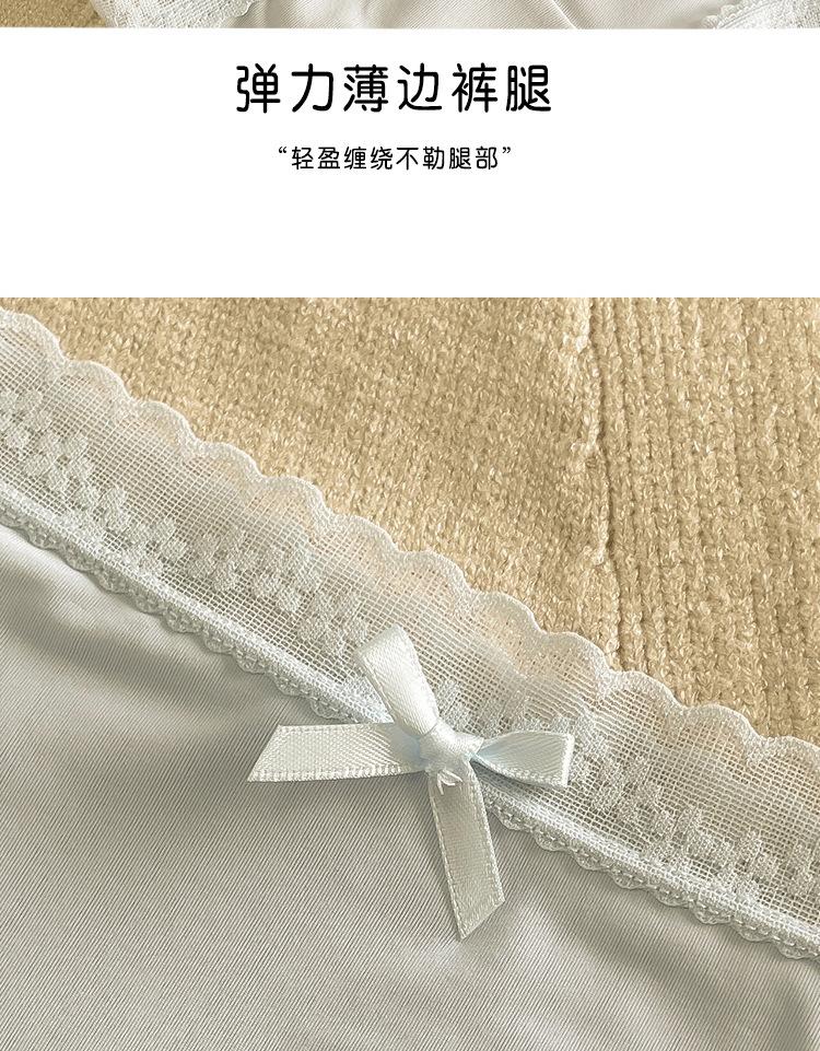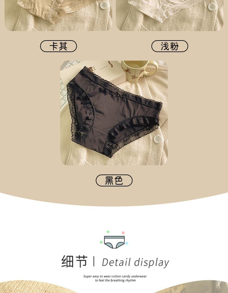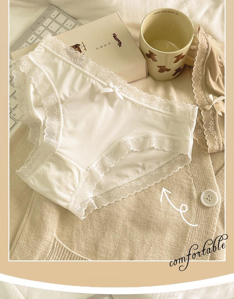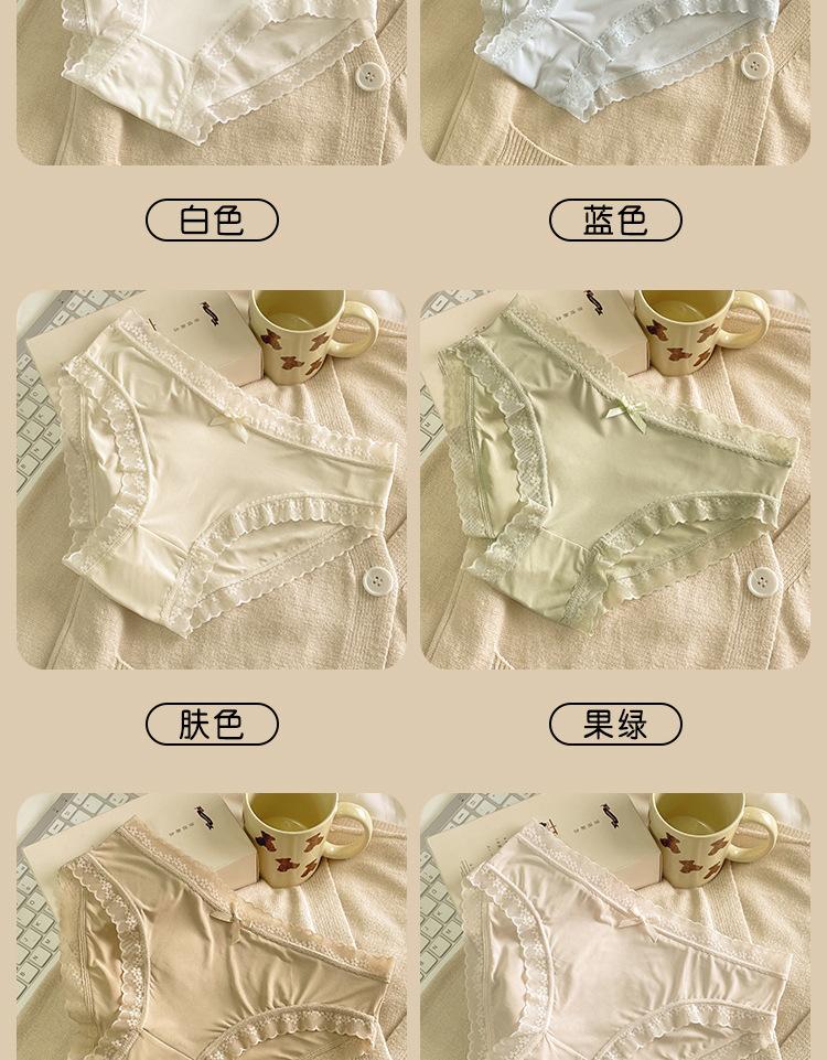 Mascarilla de Seda de Hielo de Verano Ropa Interior para Niña Color Sólido Cintura Media Sin Costuras de Secado Rápido Encaje Shorts Triángulo para Mujer Transpirable Cintura Media