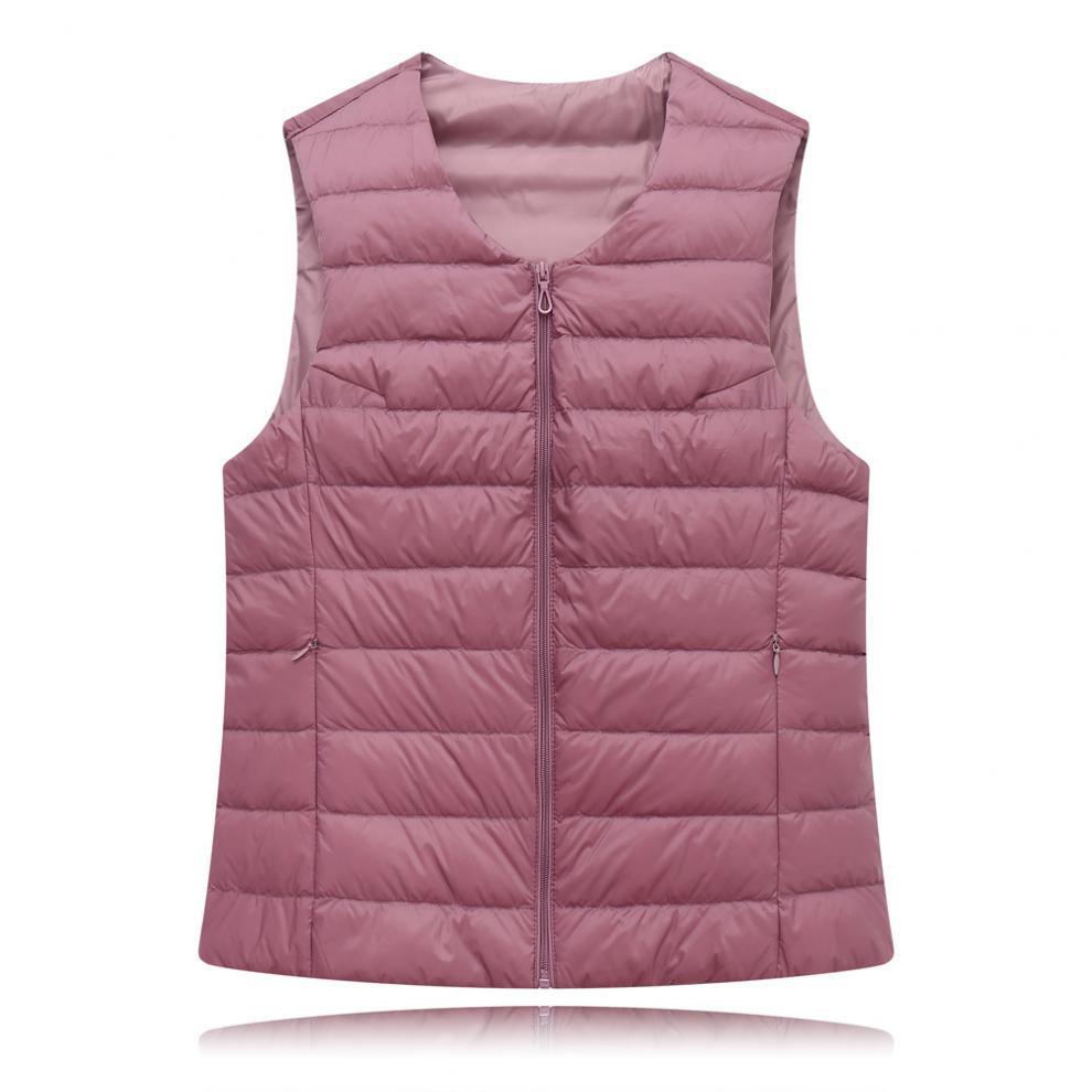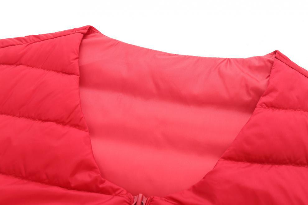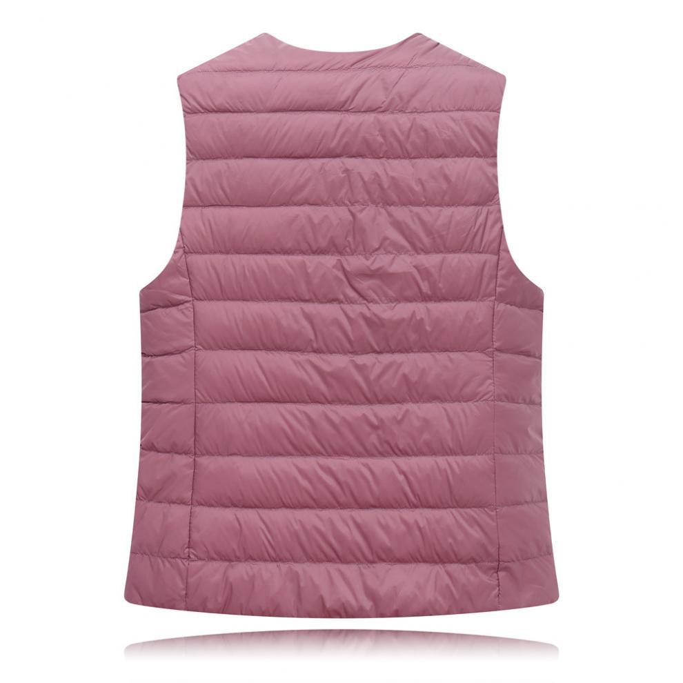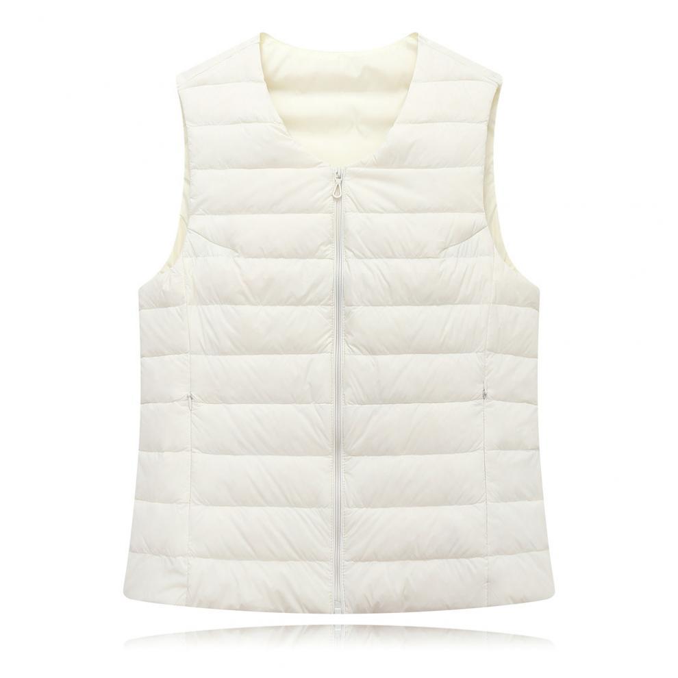 Chaleco interior cálido de plumón de pato ligero para otoño e invierno, chaqueta corta ligera sin cuello de talla grande para mujer, sin plumón.