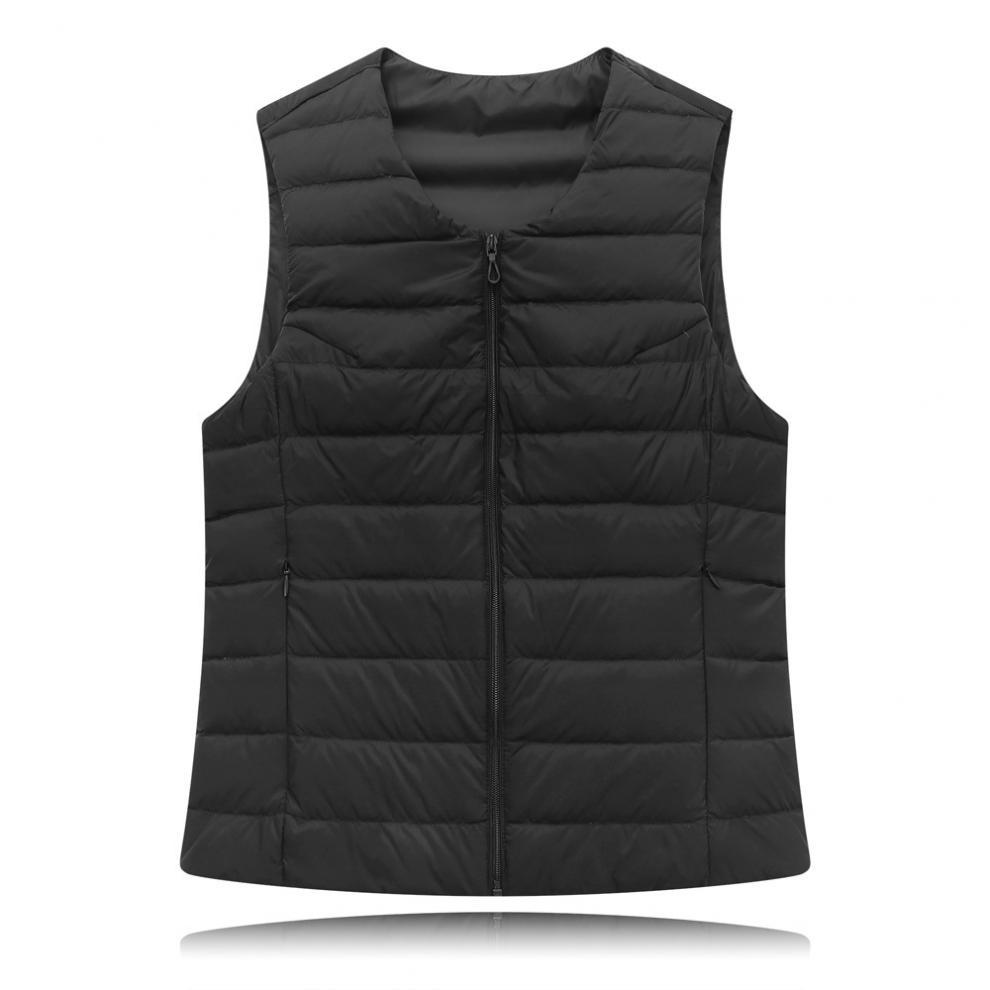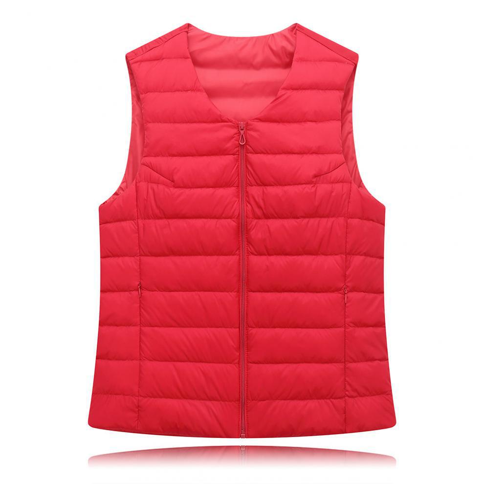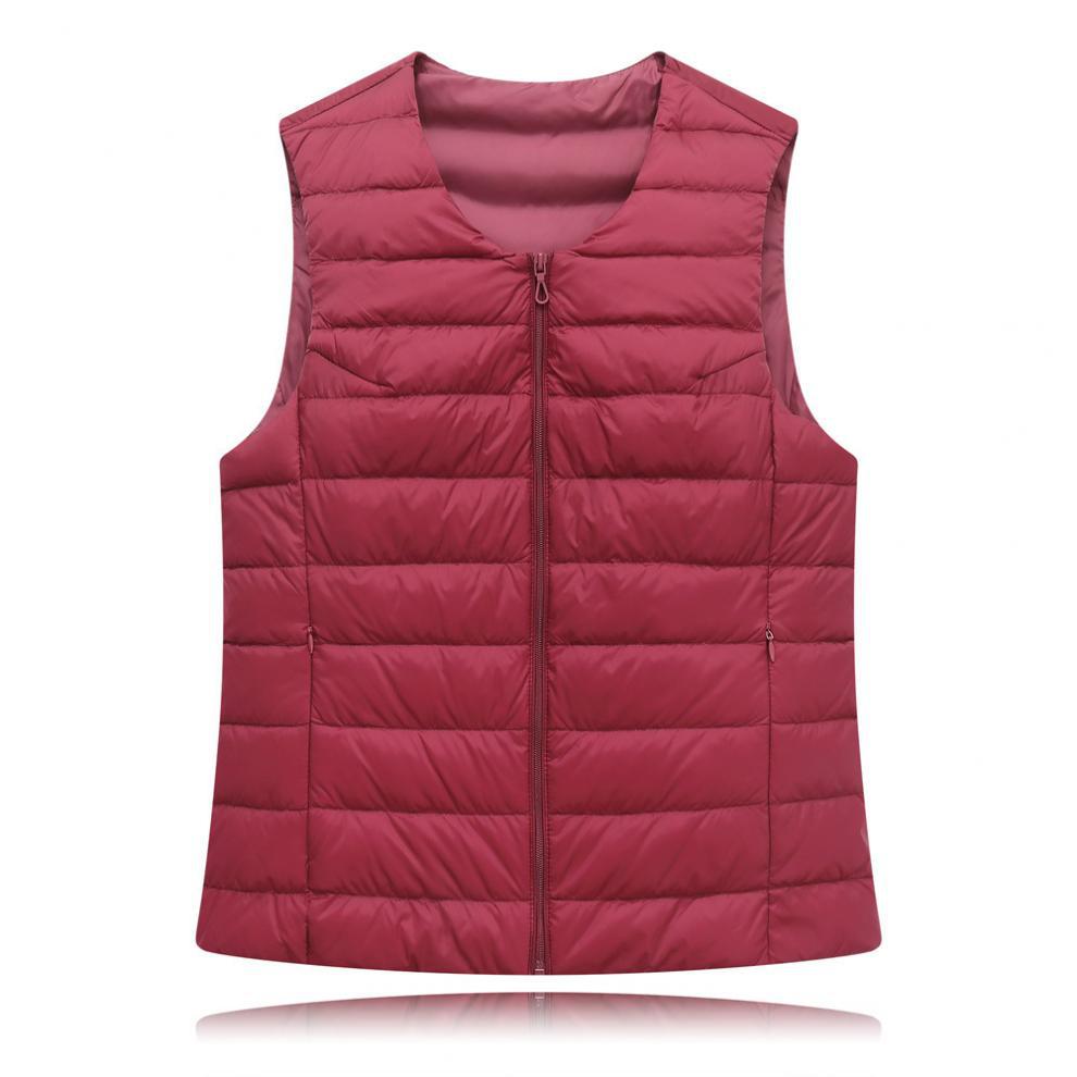 Chaleco interior cálido de plumón de pato ligero para otoño e invierno, chaqueta corta ligera sin cuello de talla grande para mujer, sin plumón.