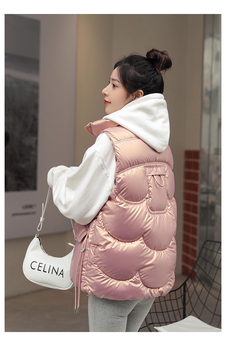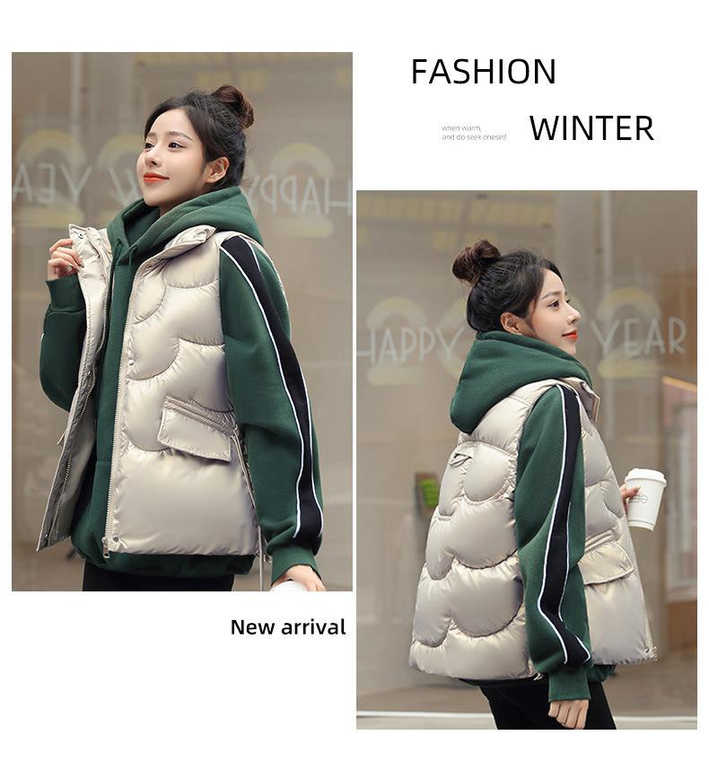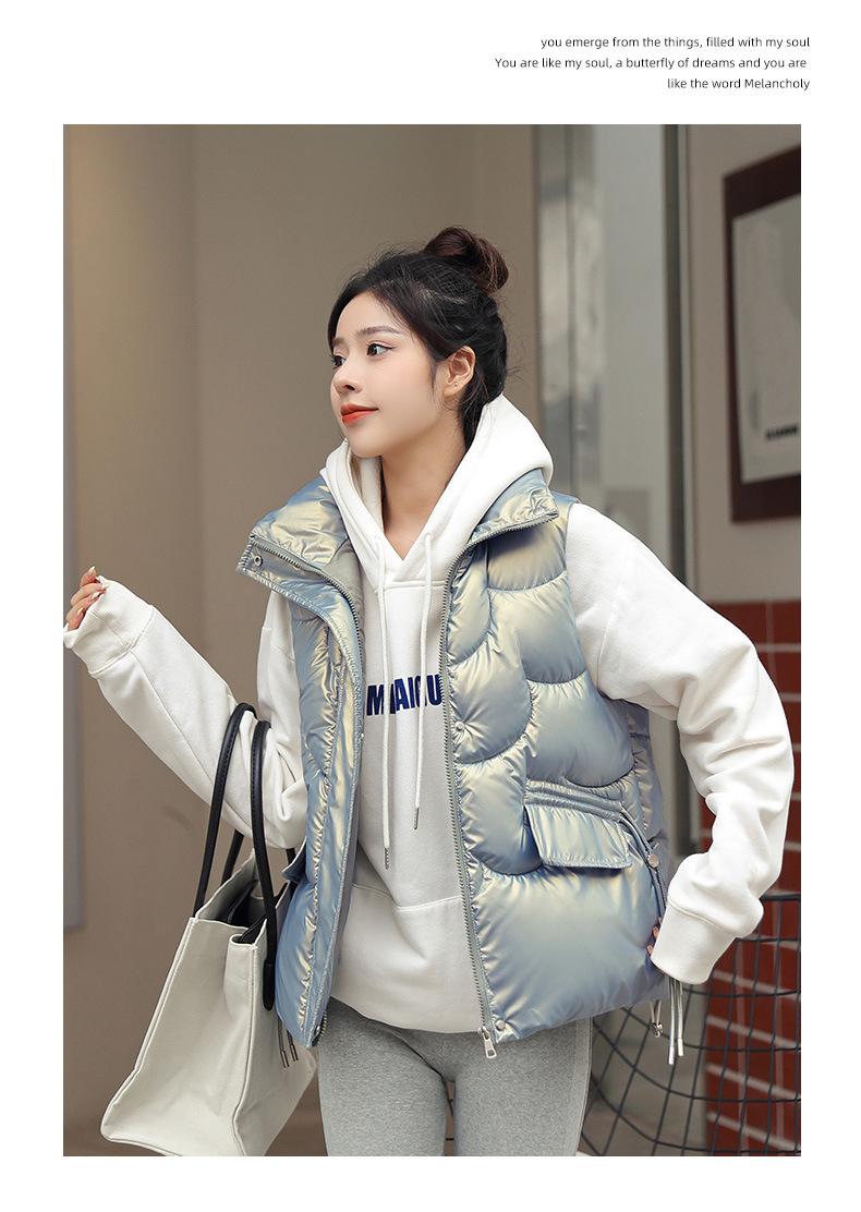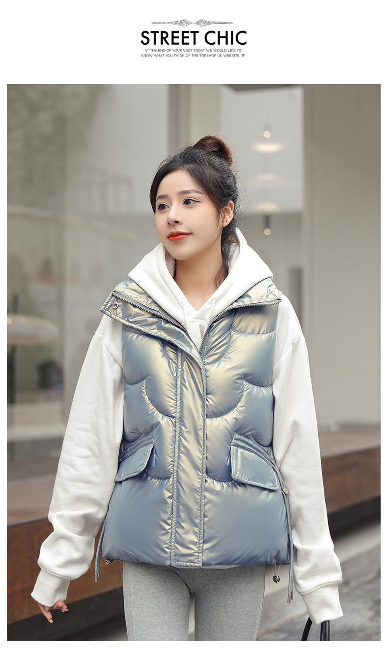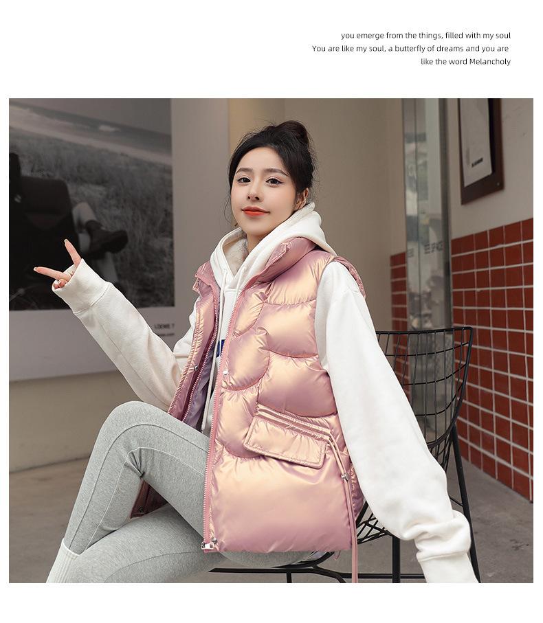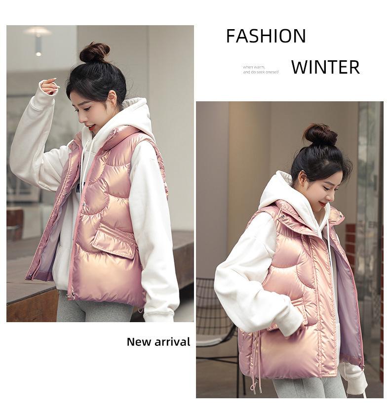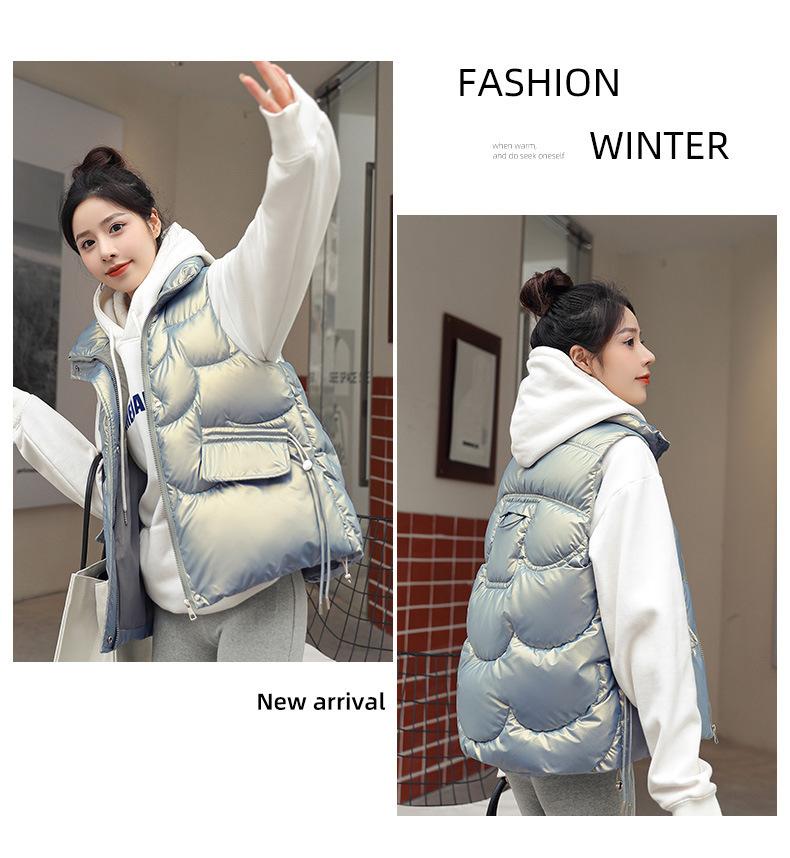 Chaleco acolchado de algodón brillante para mujer, suelto, otoño e invierno 2024, nuevo, combinable, lavable, corto y cálido.