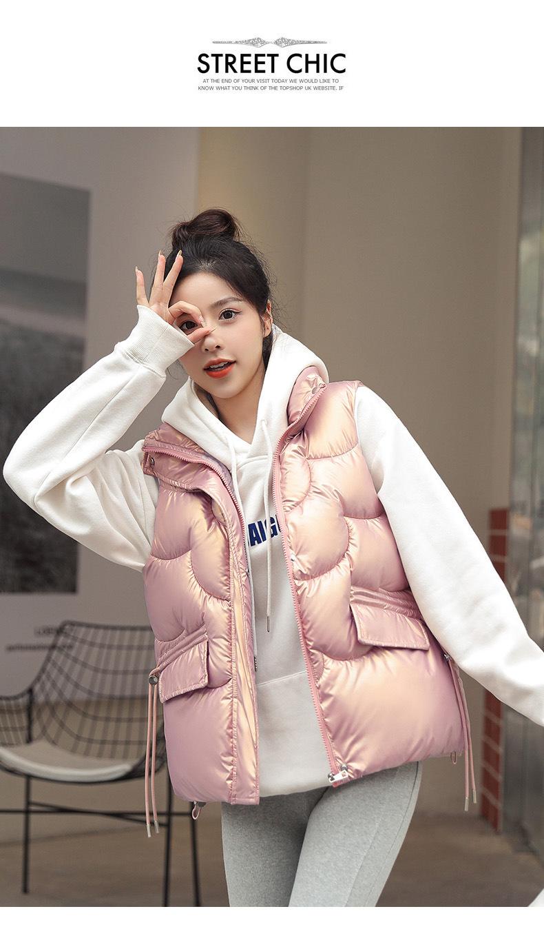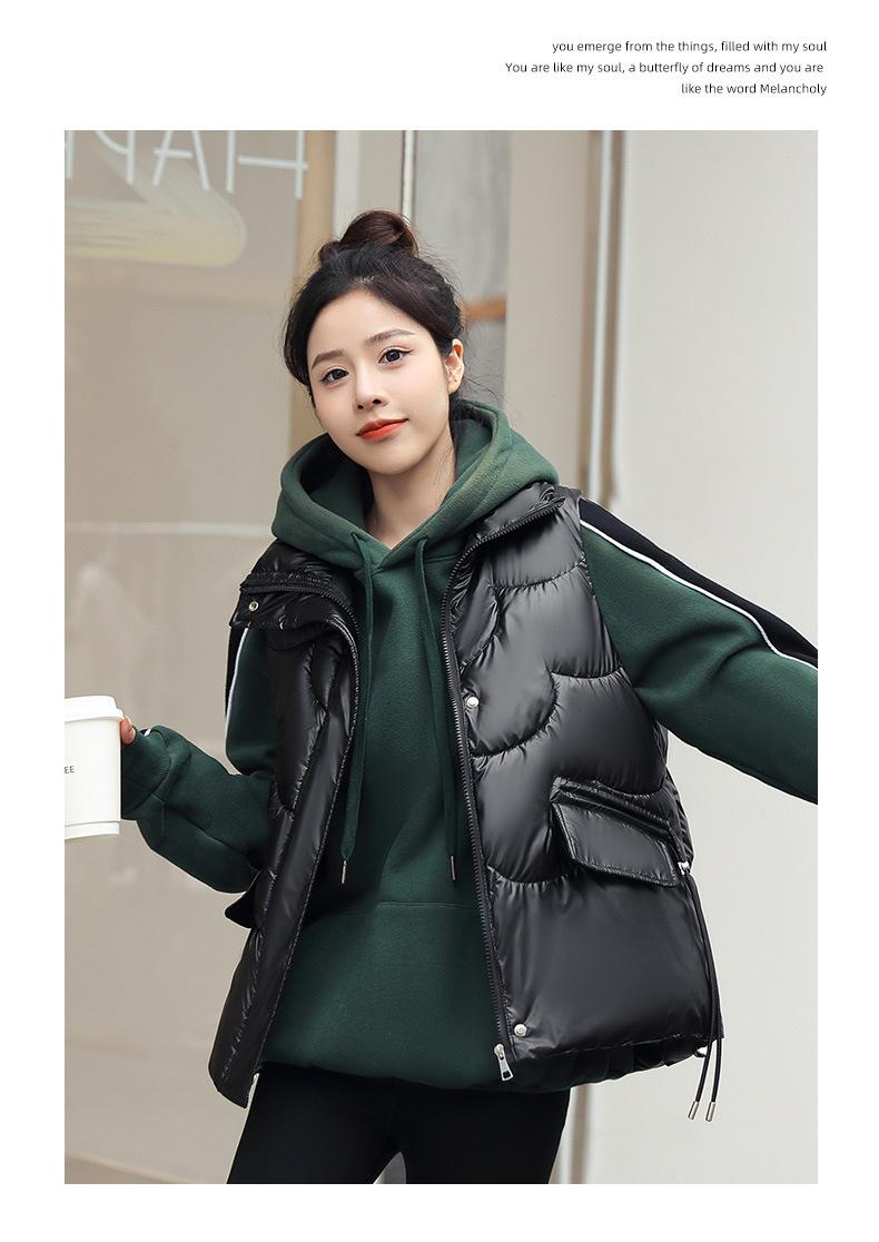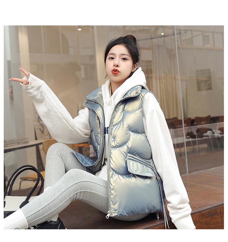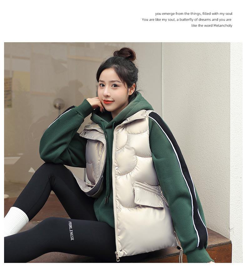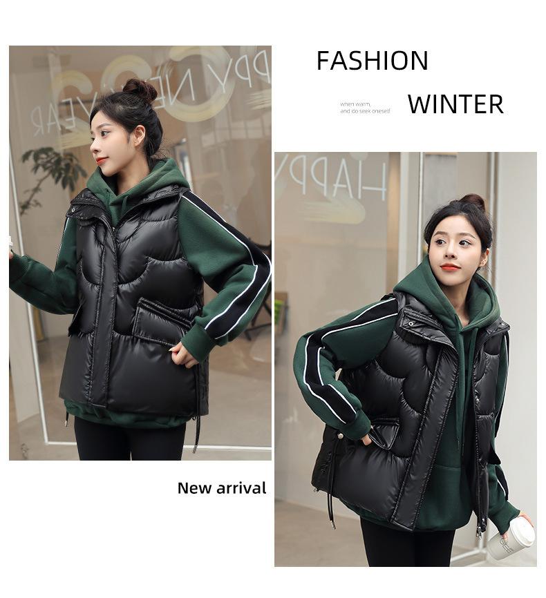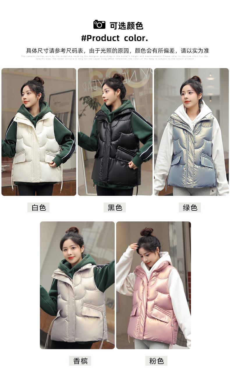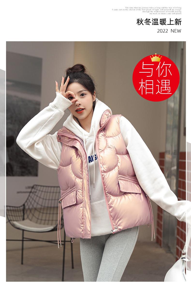 Chaleco acolchado de algodón brillante para mujer, suelto, otoño e invierno 2024, nuevo, combinable, lavable, corto y cálido.
