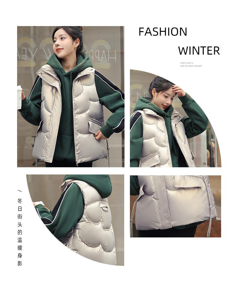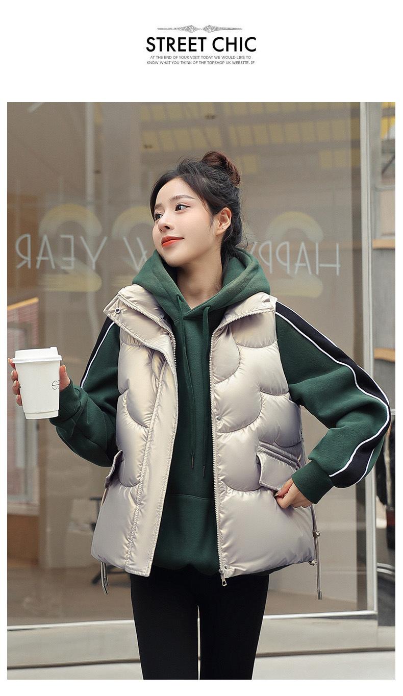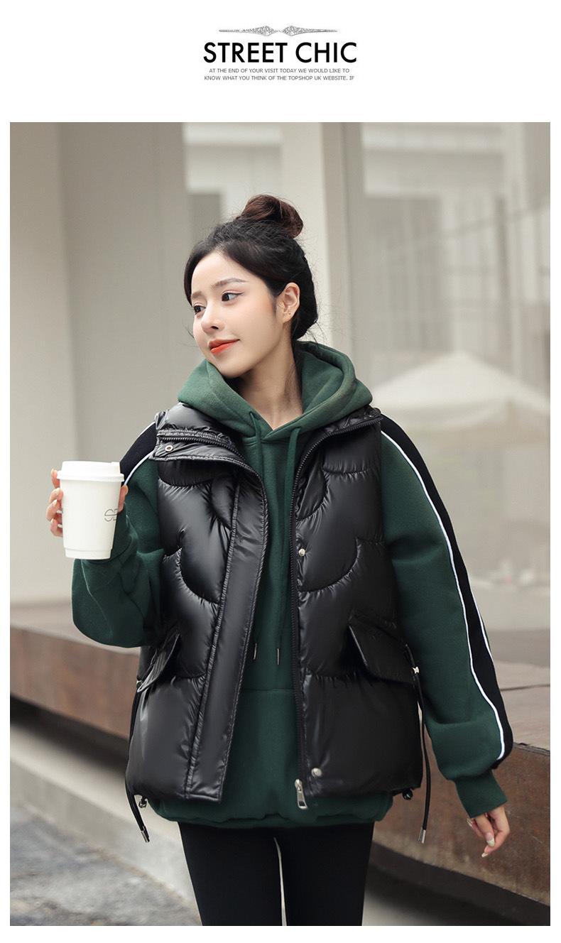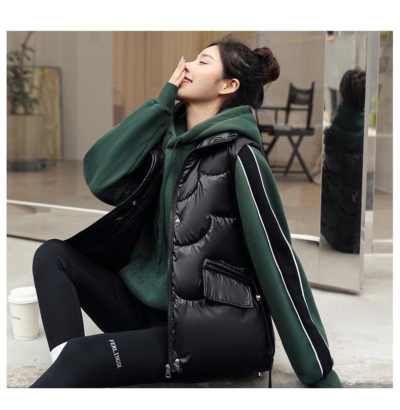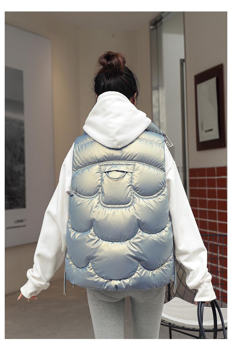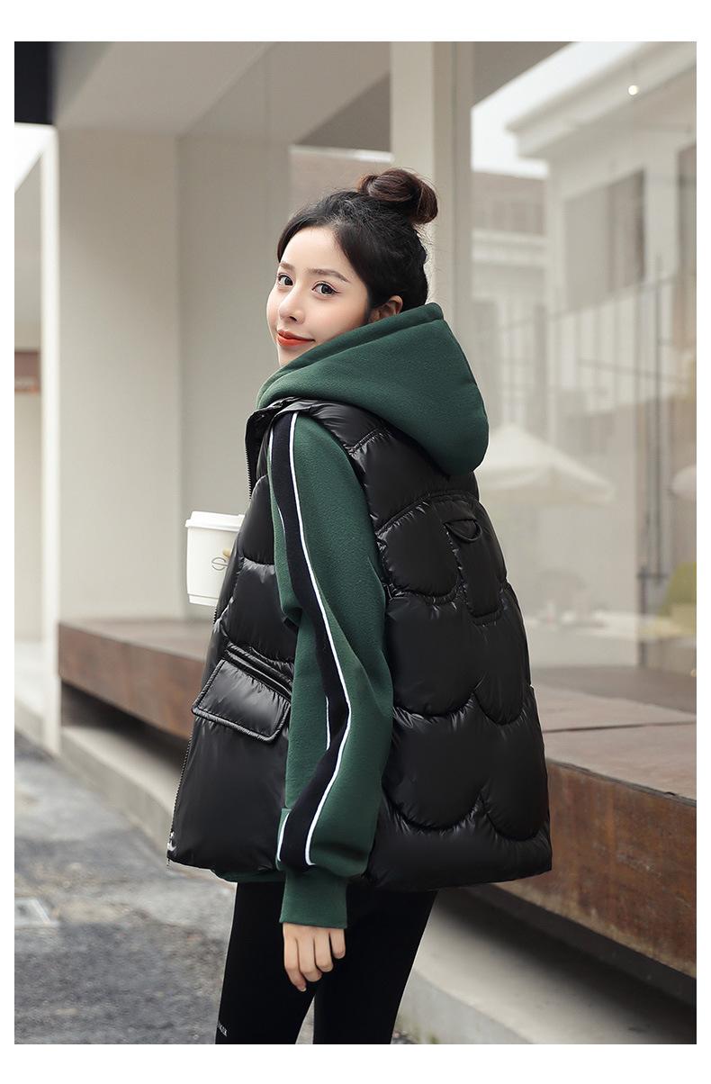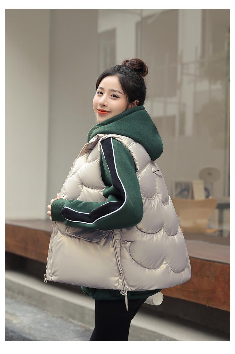 Chaleco acolchado de algodón brillante para mujer, suelto, otoño e invierno 2024, nuevo, combinable, lavable, corto y cálido.