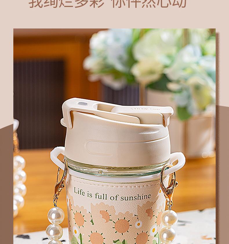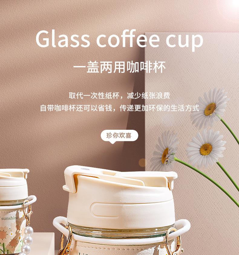 Taza de vidrio de alto valor taza para sorber taza de perlas portátil taza portátil para beber doble venta al por mayor taza de regalo de mano taza de café